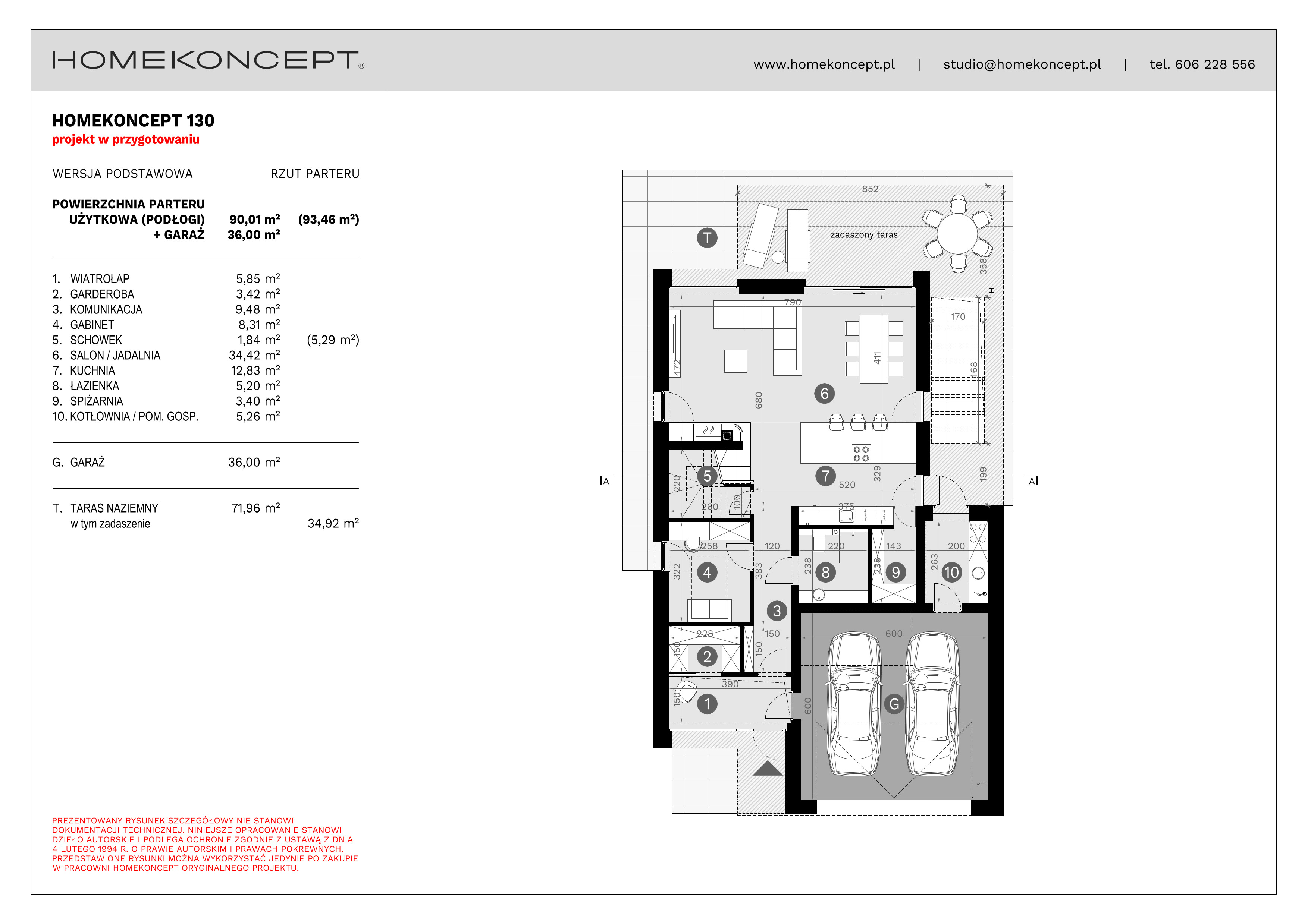 - elewacja: tynk silikonowy połączony z deską elewacyjną