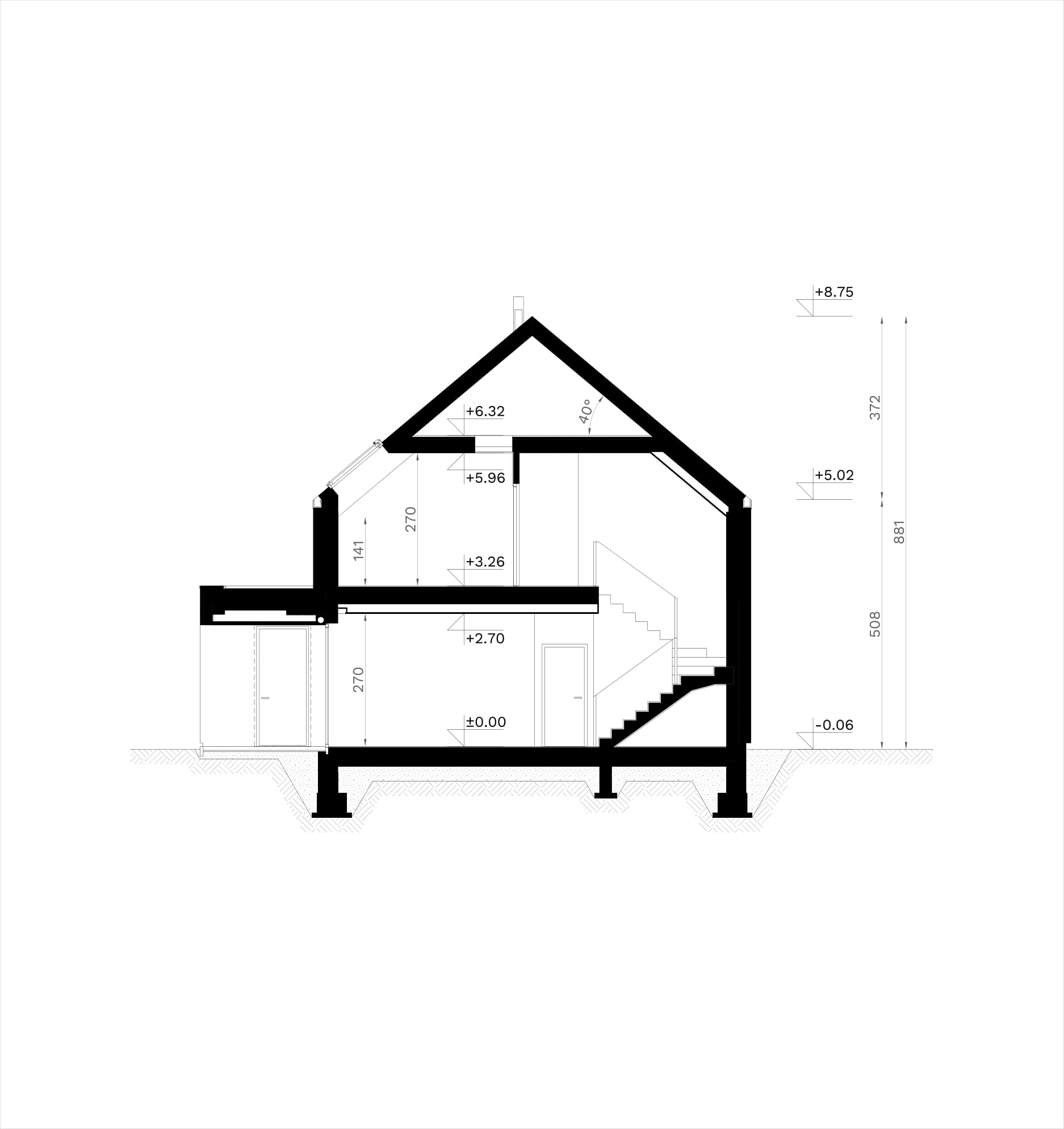 - dach dwuspadowy kryty dachówką ceramiczną lub cementową CREATON wraz z systemem fotowoltaicznym CREATON VARIO, stropodach pełny kryty membraną EPDM, okna dachowe FAKRO