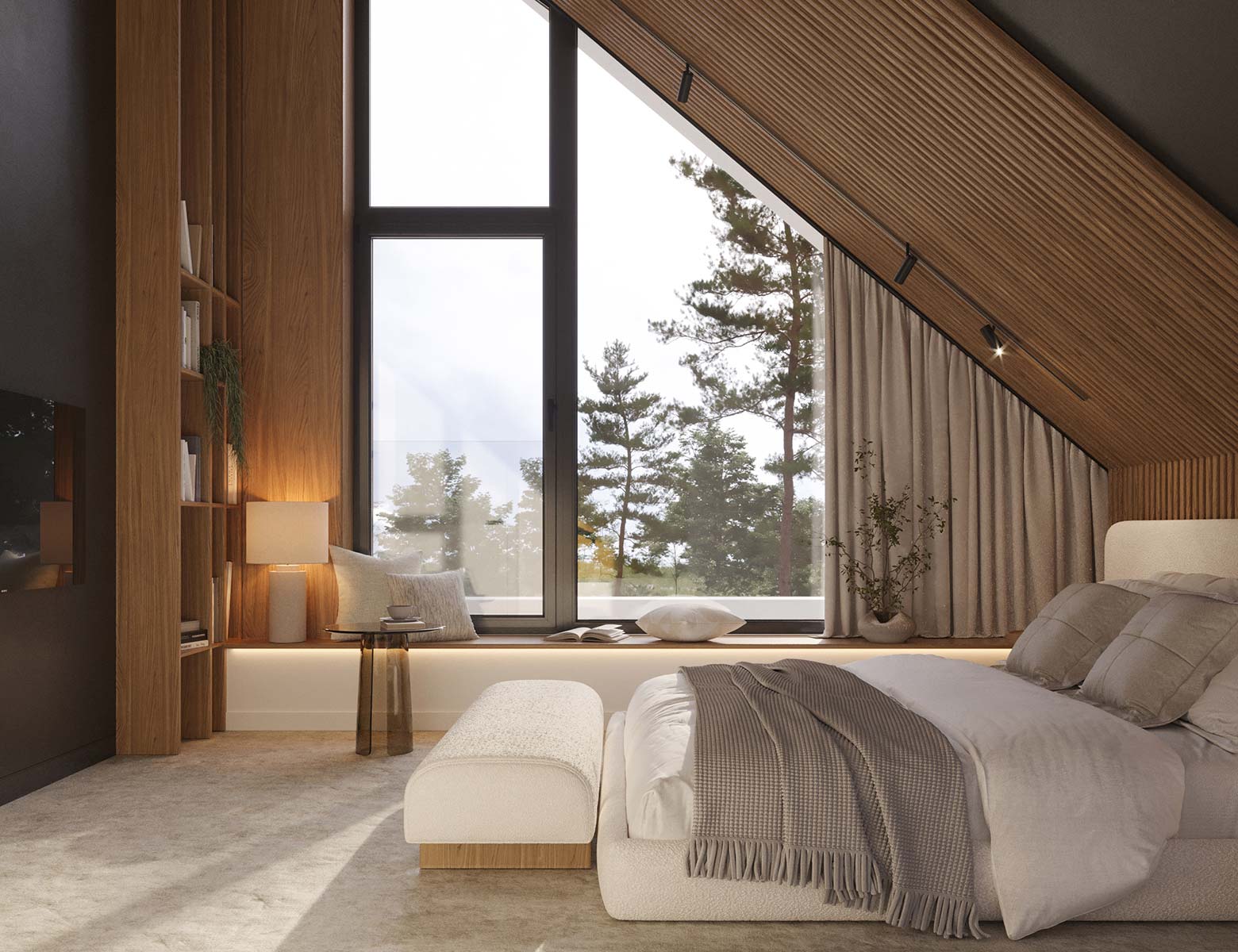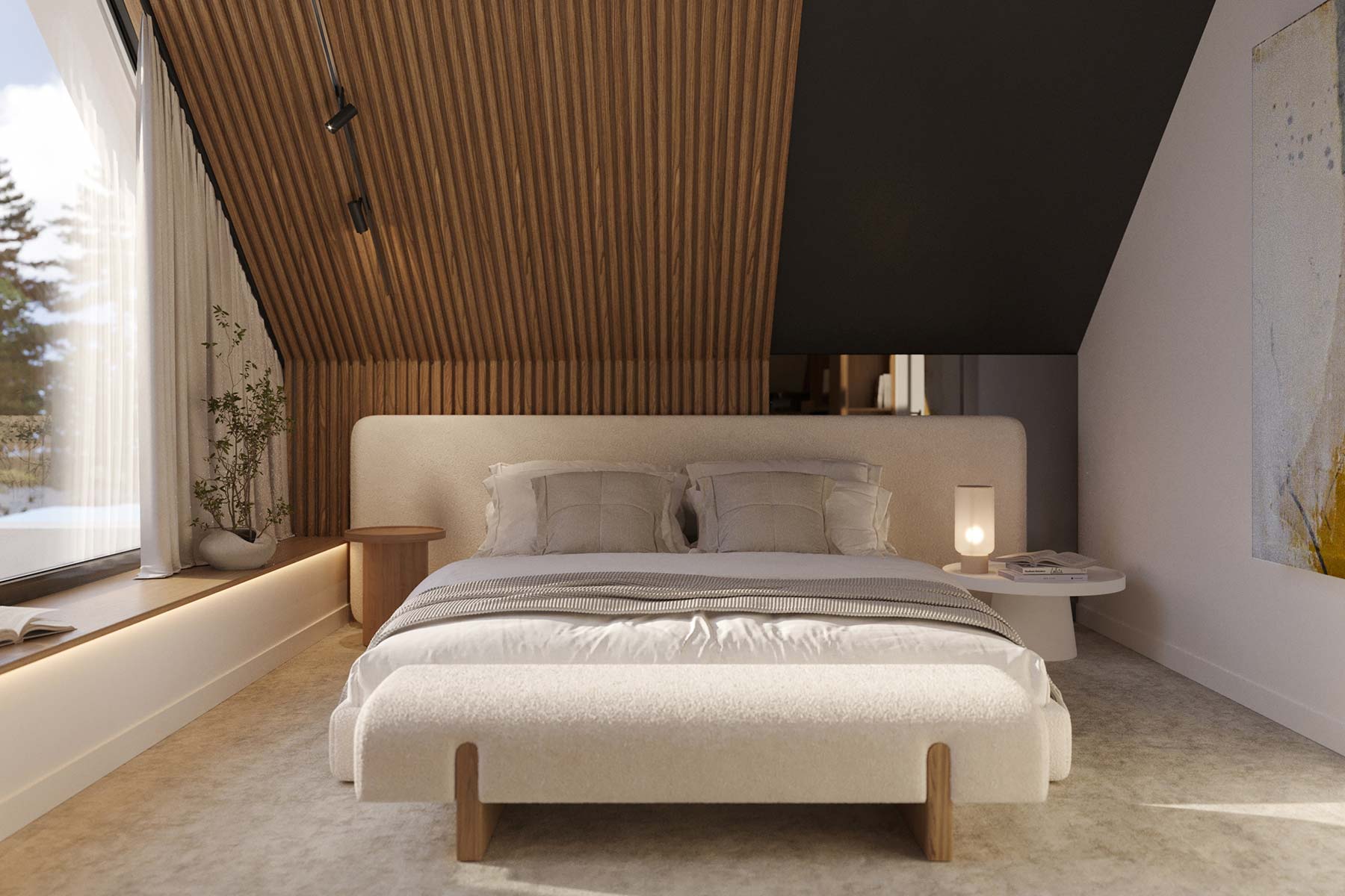 Komfortowa strefa nocna na poddaszu - trzy sypialnie, w tym jedna z przylegającą, przestronną garderobą, w której możesz nawet tańczyć ;), do tego osobna pralnia i duża łazienka z prysznicem oraz wanną z widokiem na gwiazdy.
