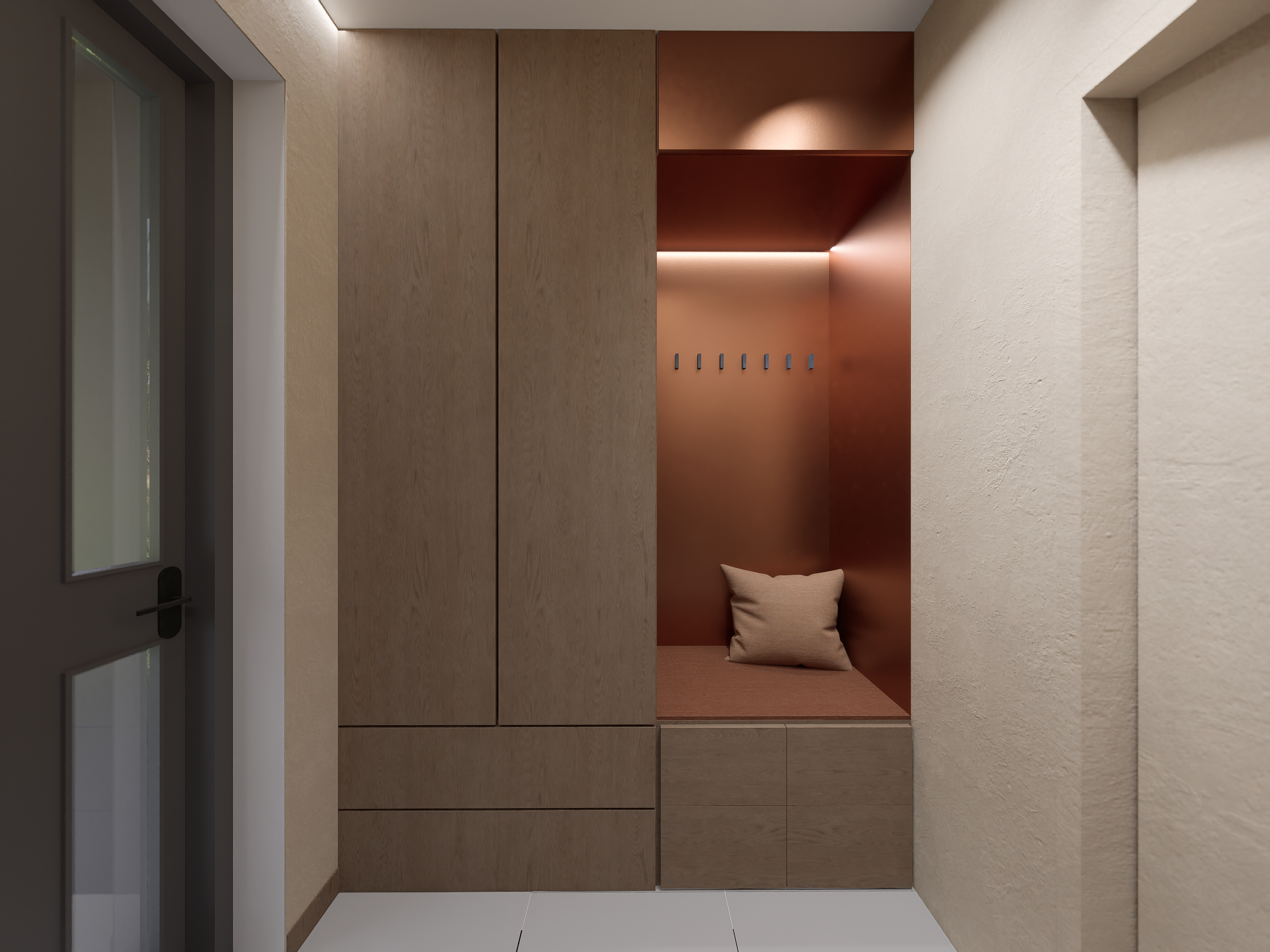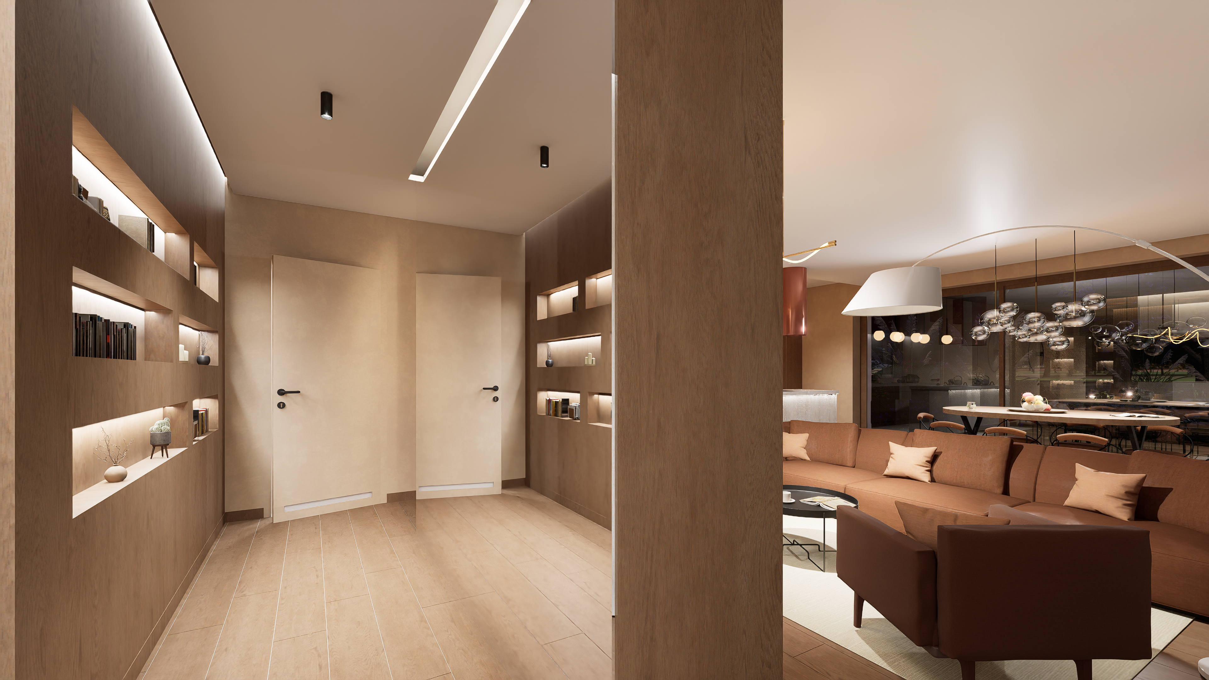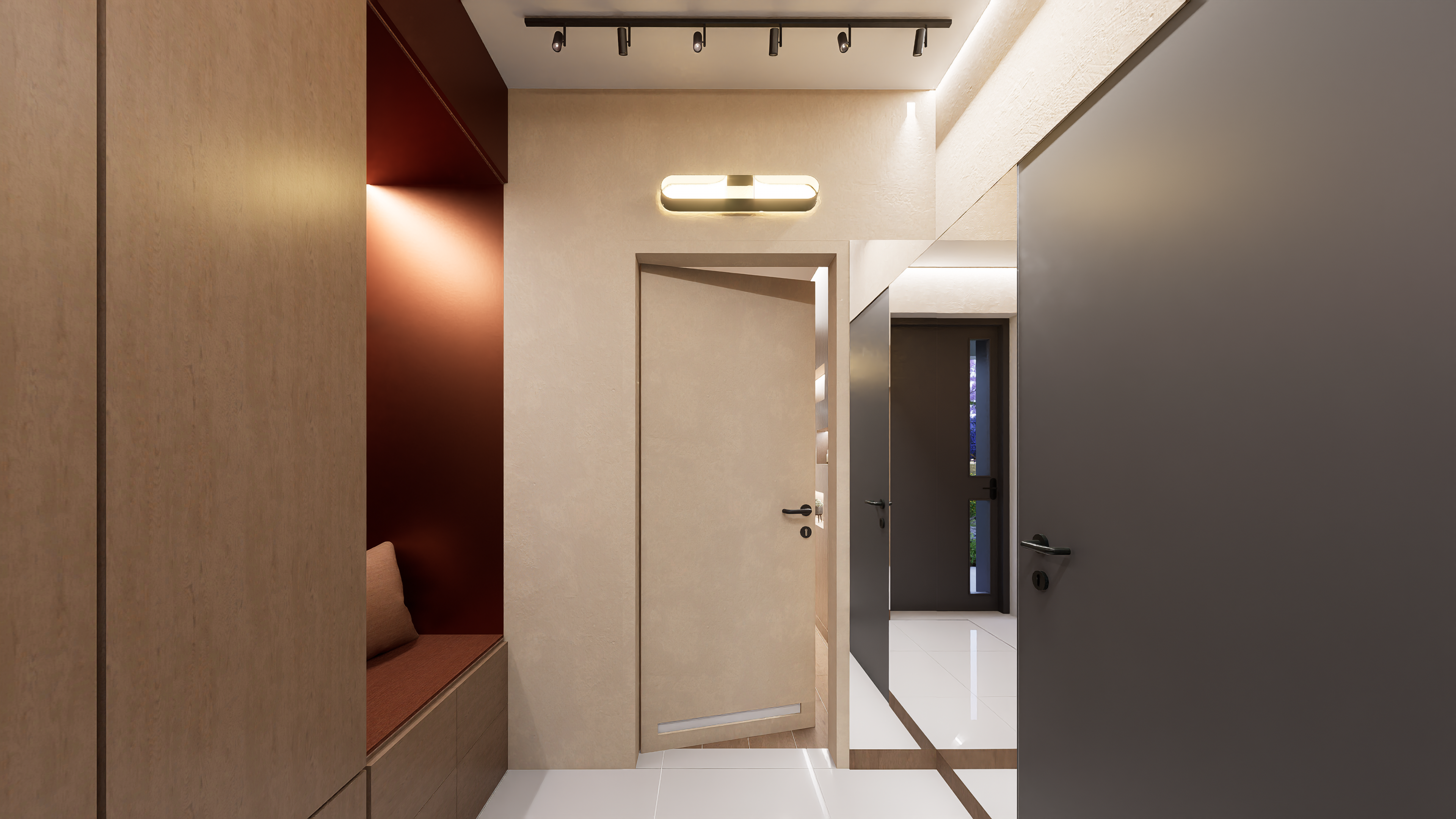 W części prywatnej znalazły się trzy komfortowe sypialnie, w tym główna z prywatną garderobą i łazienką. Dodatkowo projekt uwzględnia drugą, ogólnodostępną łazienkę, osobne WC oraz praktyczne pomieszczenia gospodarcze – w tym spiżarnię i kotłownię.