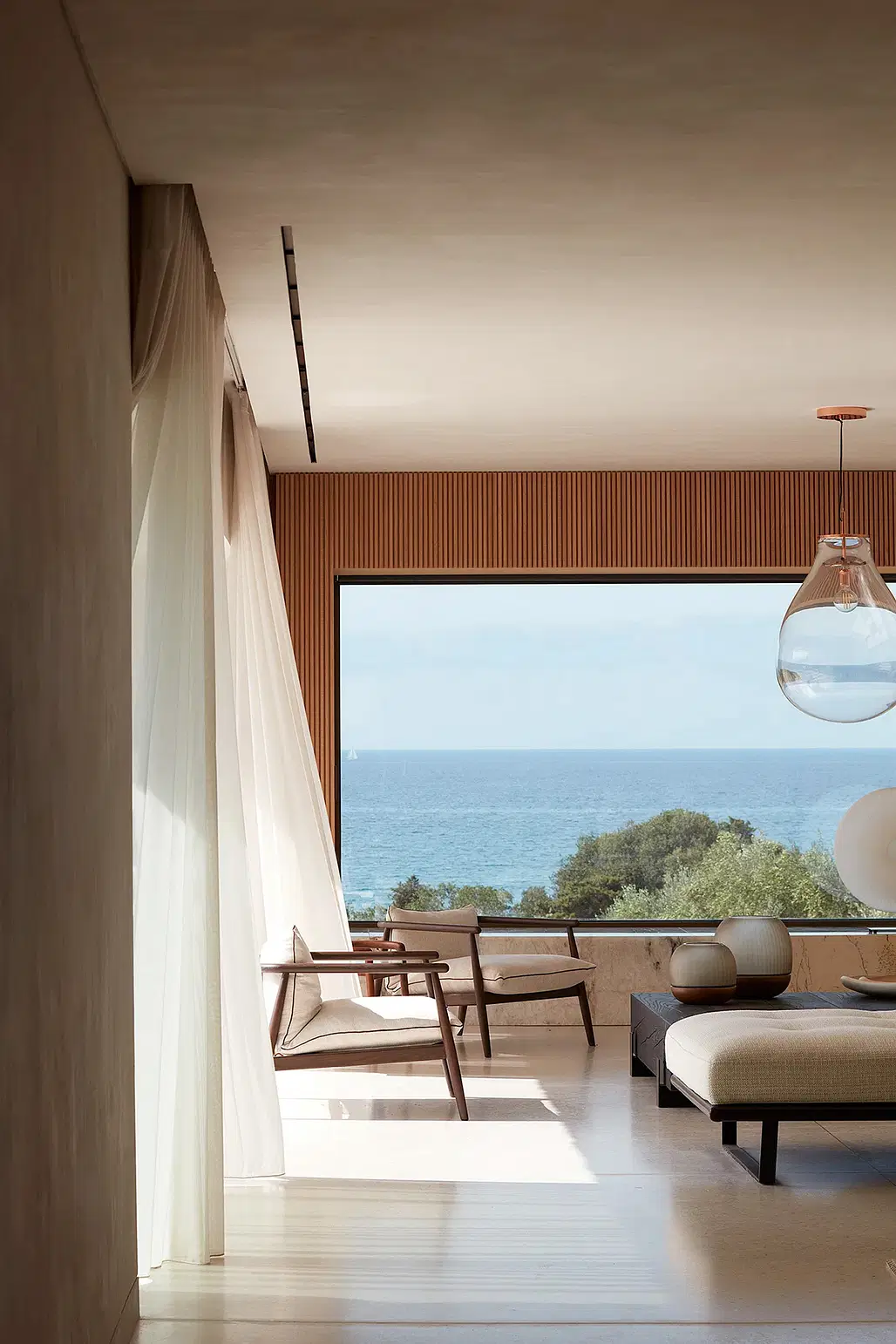 Villa Messenia to luksusowa willa położona w malowniczym krajobrazie Grecji, gdzie minimalistyczna architektura łączy się z naturą. Proste formy, duże przeszklenia i naturalne materiały, takie jak kamień i drewno, tworzą przestrzeń pełną światła i spokoju. Dom został zaprojektowany tak, aby maksymalnie wykorzystać panoramiczne widoki na Morze Śródziemne, zapewniając mieszkańcom bliskość natury i komfort na najwyższym poziomie.