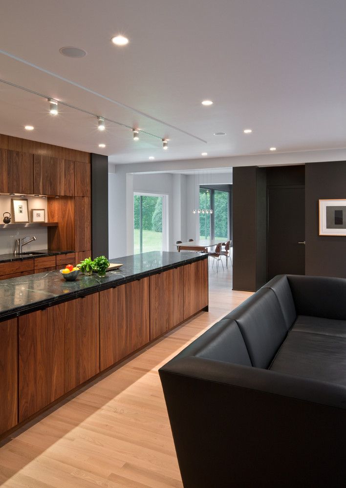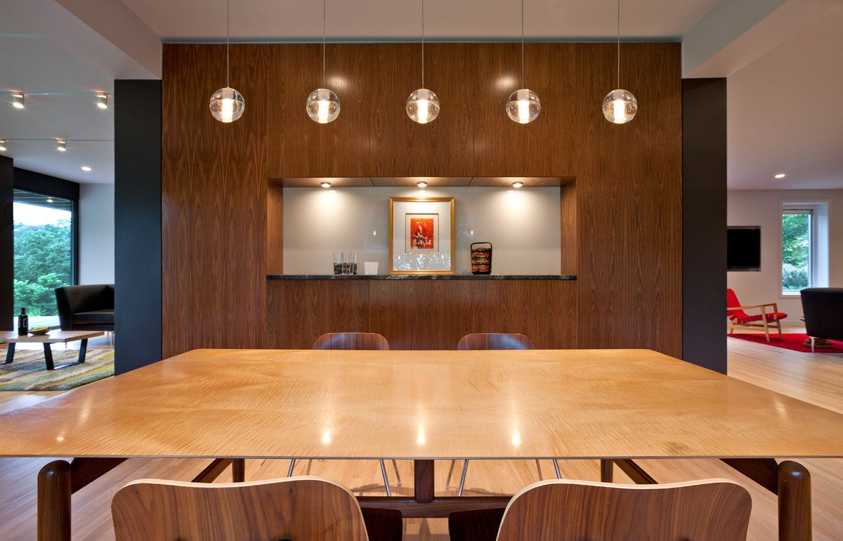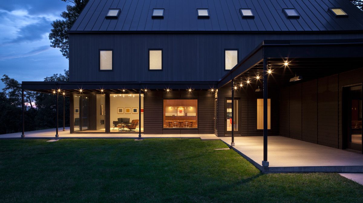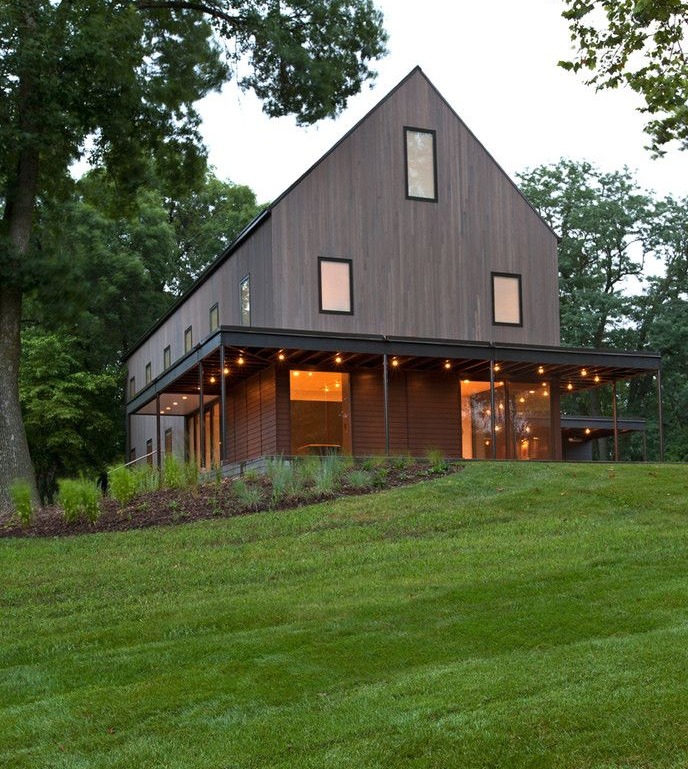 Dom usytuowany na dużej działce, otoczonej starymi drzewami, zyskał nowe życie dzięki przemyślanej renowacji, której głównym celem było połączenie wnętrza z otoczeniem i maksymalne wykorzystanie przestrzeni. Architekci zastosowali podniesienie formy szczytowej oraz zwiększenie nachylenia dachu, a także przesunięcie i wymianę okien, tworząc uporządkowany układ i prosty, niemal archetypowy kształt budynku. W efekcie powstała jasna i przestronna bryła, która harmonijnie wpisuje się w naturalne otoczenie, jednocześnie zachowując dużą funkcjonalność i lekkość formy charakterystyczną dla nowoczesna stodoła.