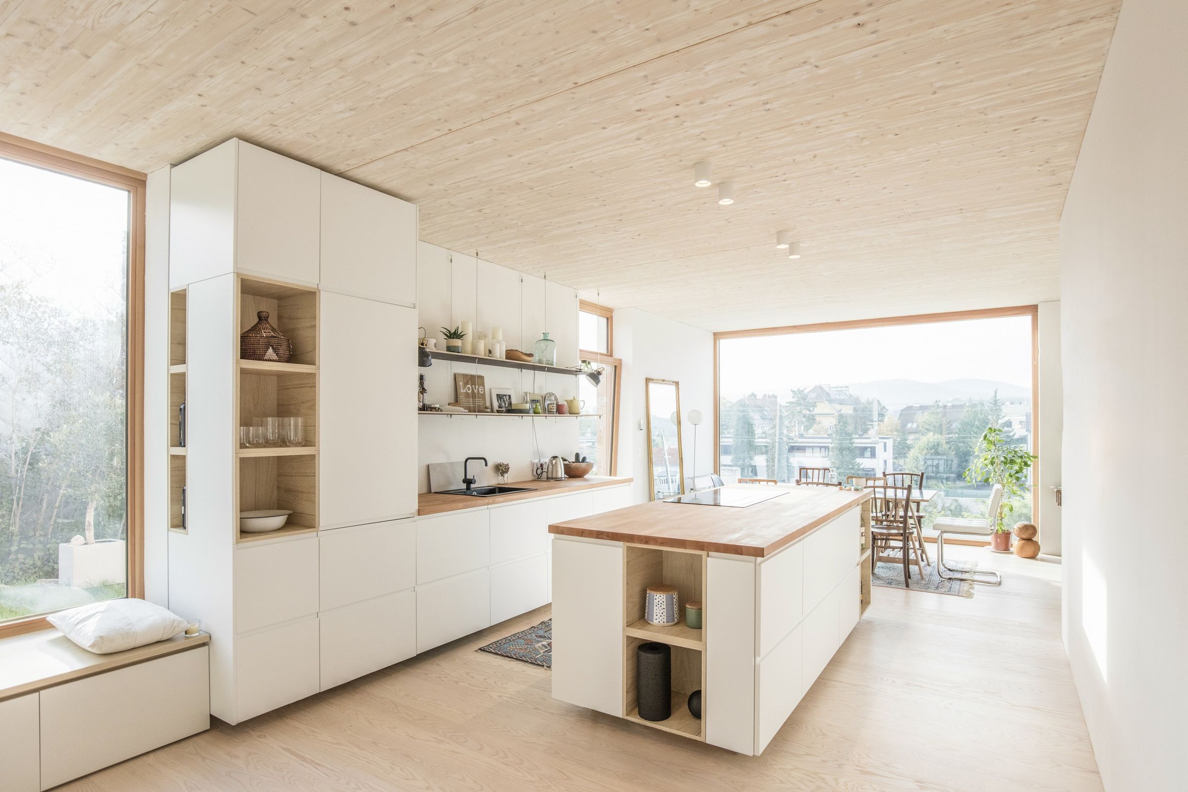 58 sekund. Tyle czasu zajęło austriackiemu „fabrycznemu” lasowi wyhodowanie drewna dla tego wyjątkowego domu w Wiedniu. Podczas tego procesu powstał tlen, który wystarczy dla jednej osoby do oddychania przez około sto lat. To doskonała ilustracja zrównoważonego procesu, który jest niezbędny dla naszej przyszłości. Projekt budynku wyróżnia się koncepcją low-tech, czyli świadomą rezygnacją z drogiej i skomplikowanej technologii na rzecz prostych zasad działania.