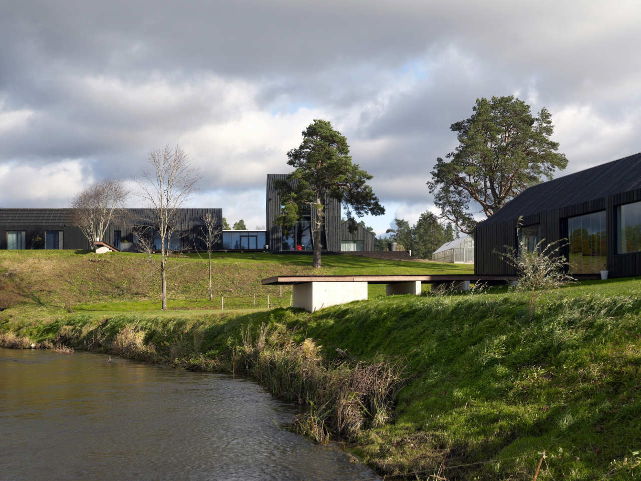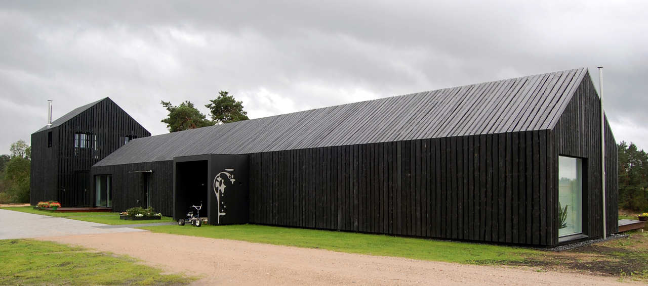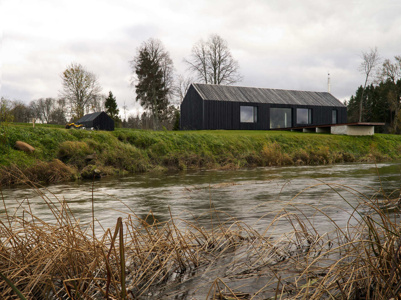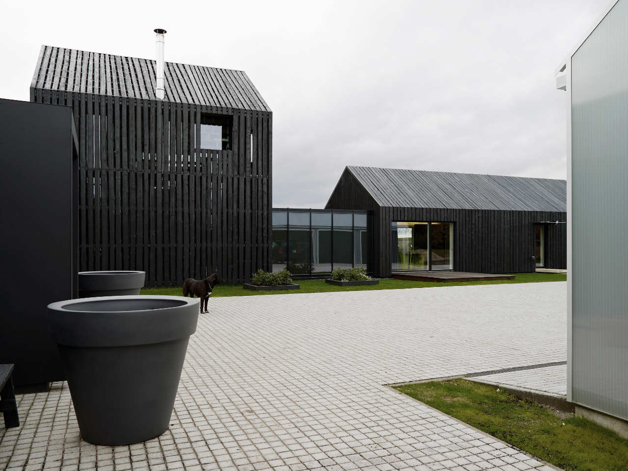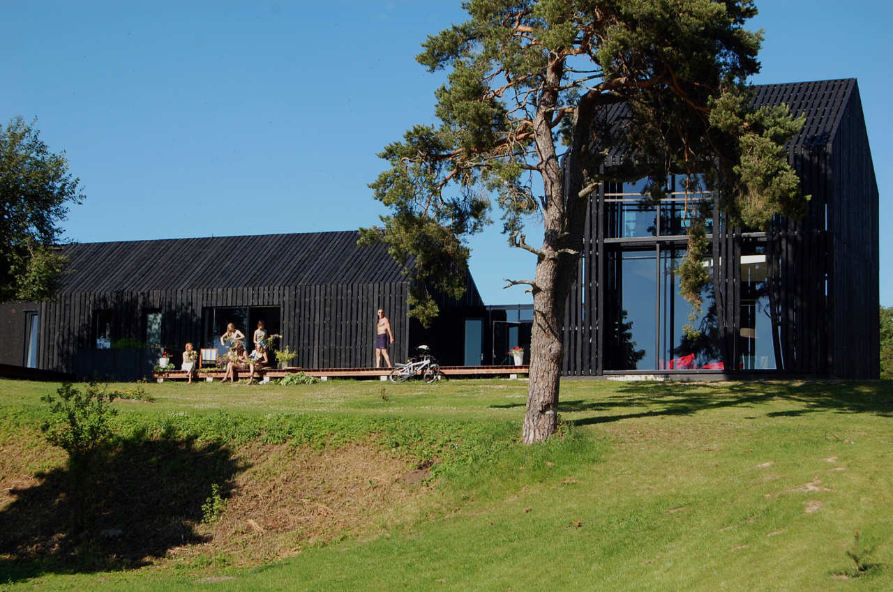 Początkowo planowany jako dom letniskowy, 8 BLACKS przekształcił się w kompleks mieszkalny dla aktywnej rodziny, harmonijnie łączący tradycję z nowoczesnością. Złożony z ośmiu budynków pokrytych czarnymi deskami, projekt czerpie inspiracje z archetypowych przekrojów budynków regionu Kurlandii, jednocześnie zapewniając komfort współczesnego życia.