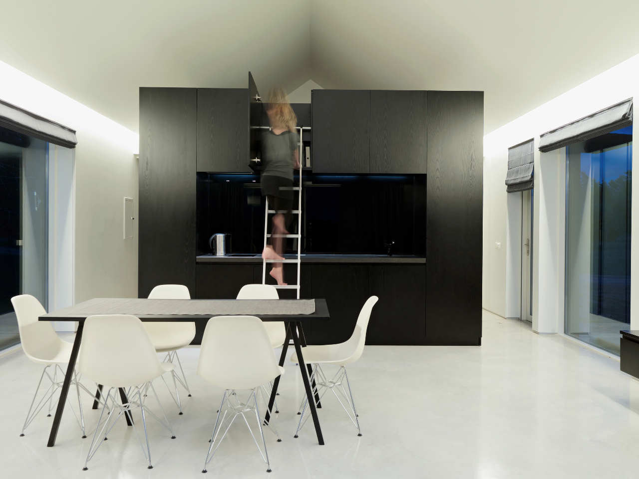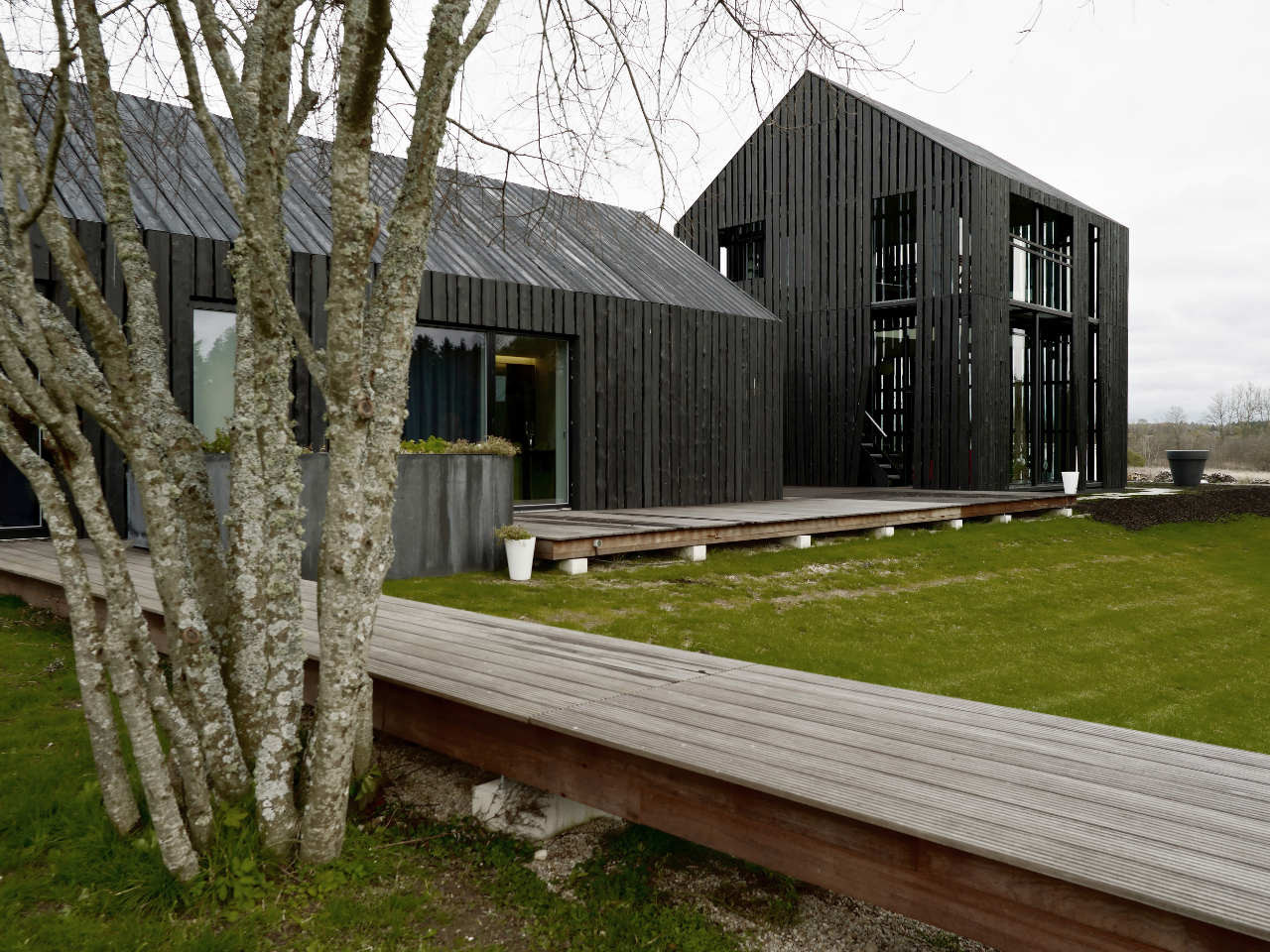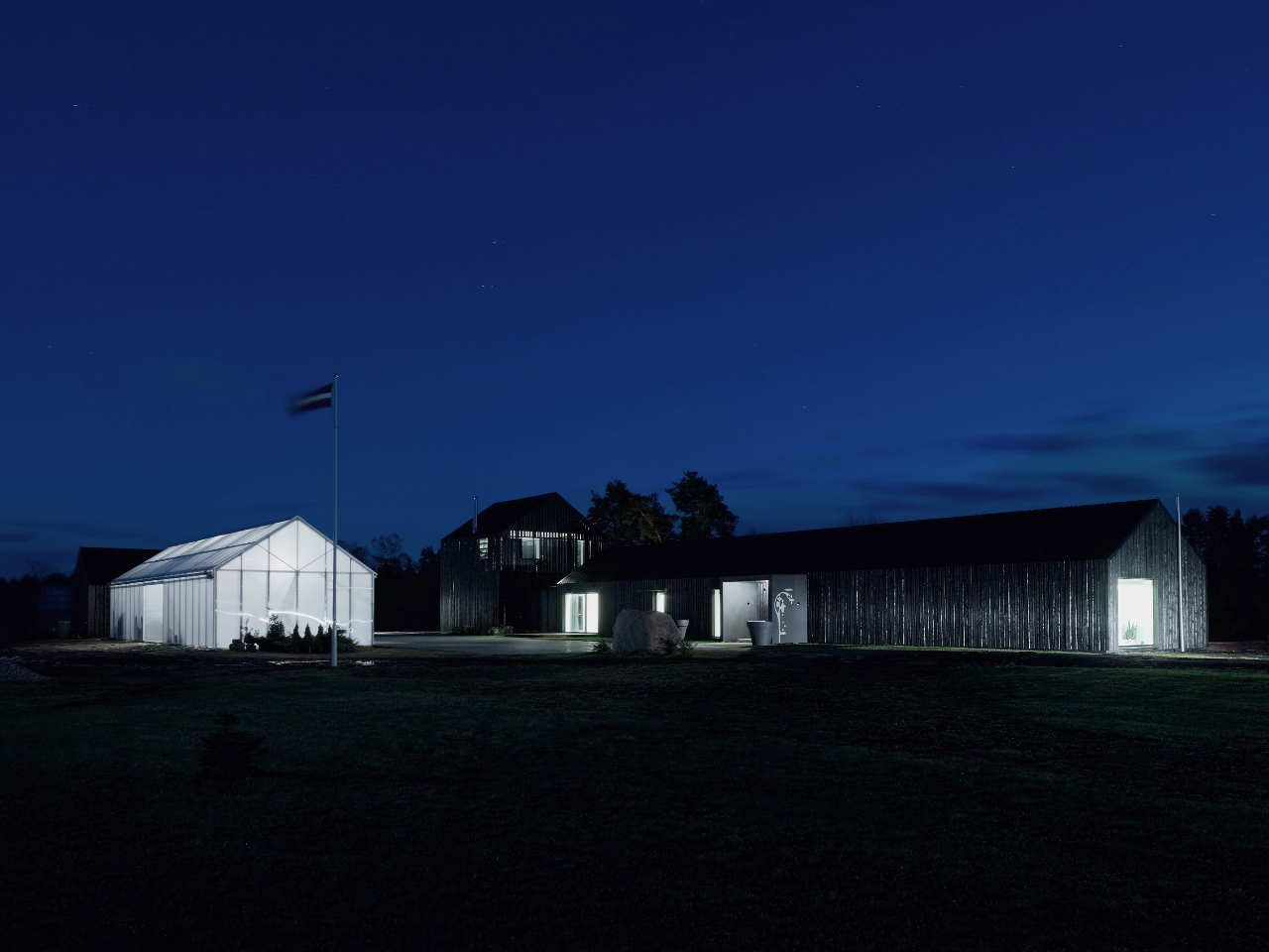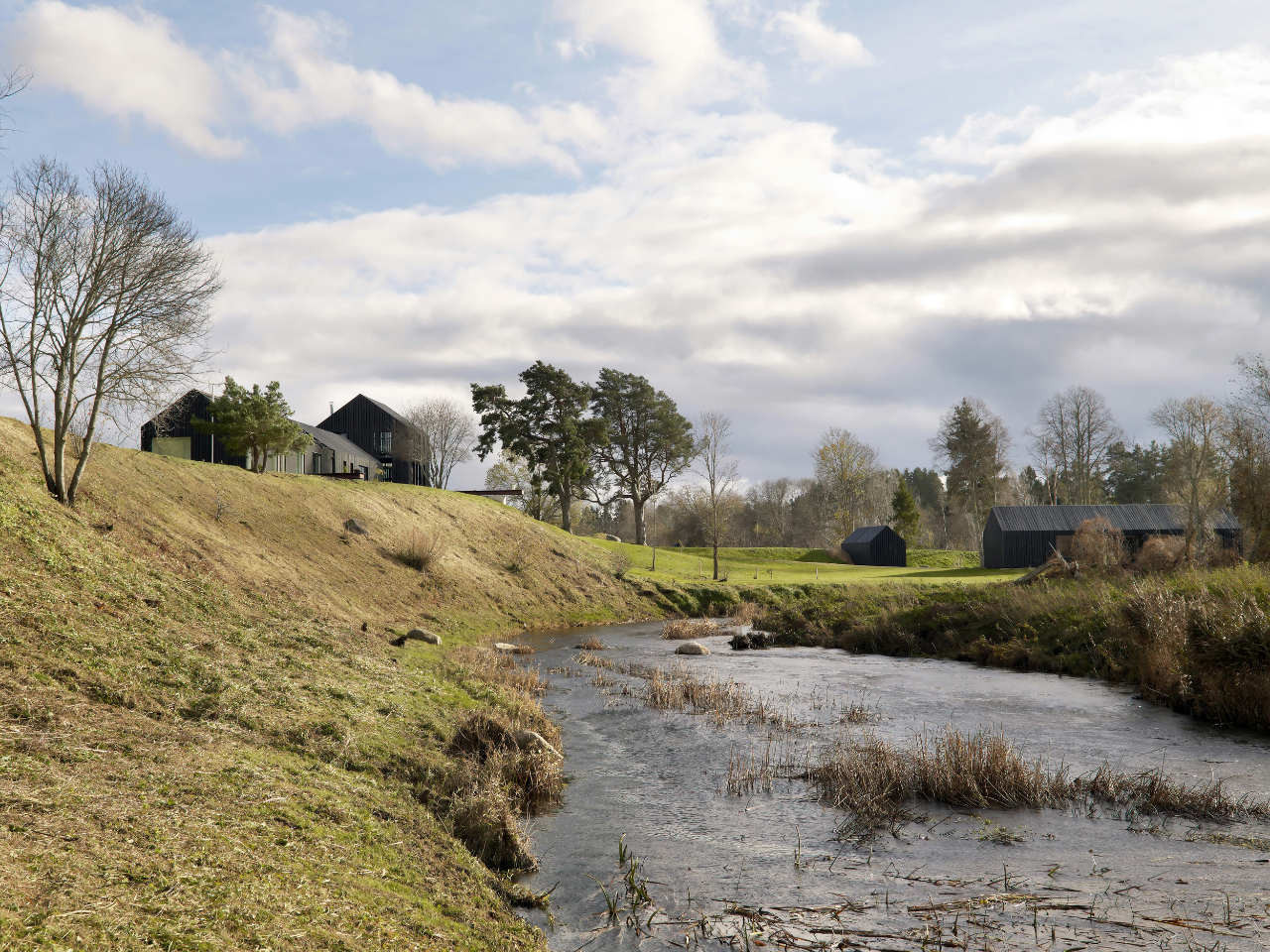 Początkowo planowany jako dom letniskowy, 8 BLACKS przekształcił się w kompleks mieszkalny dla aktywnej rodziny, harmonijnie łączący tradycję z nowoczesnością. Złożony z ośmiu budynków pokrytych czarnymi deskami, projekt czerpie inspiracje z archetypowych przekrojów budynków regionu Kurlandii, jednocześnie zapewniając komfort współczesnego życia.
