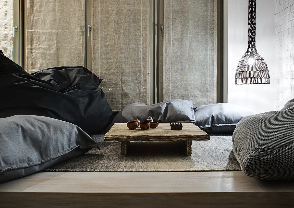 Strefy prywatne zachwycają różnorodnością detali i spójnością stylistyczną. Sypialnie łączą minimalistyczne łóżka z wyrazistymi tekstyliami, nastrojowym oświetleniem i subtelnymi dekoracjami, takimi jak malowana cegła czy lampy z ceramicznymi sowami. Mała wnęka relaksacyjna z hamakiem staje się domową oazą spokoju, a dwie łazienki – jedna jasna, organiczna, druga ciemniejsza i bardziej surowa – dopełniają całość projektu. To inspirujący dom dla miłośników nowoczesnych wnętrz, minimalizmu i naturalnych rozwiązań w architekturze.