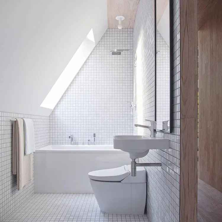 Na powierzchni około 74 m² mieści się kuchnia, jadalnia, salon, łazienka oraz dwie sypialnie, zaprojektowane w duchu minimalizmu. Z części dziennej na taras prowadzą przesuwne szklane drzwi, które płynnie łączą wnętrze z zewnętrzem. W łazience, nad wanną, umieszczono świetlik, przez który można obserwować niebo i chmury unoszące się nad drzewami. A-Frame Retreat to przykład, jak nowoczesna stodoła może łączyć prostotę, wygodę i architektoniczną elegancję w jednym – tworząc przestrzeń idealną dla miłośników natury i ciszy.