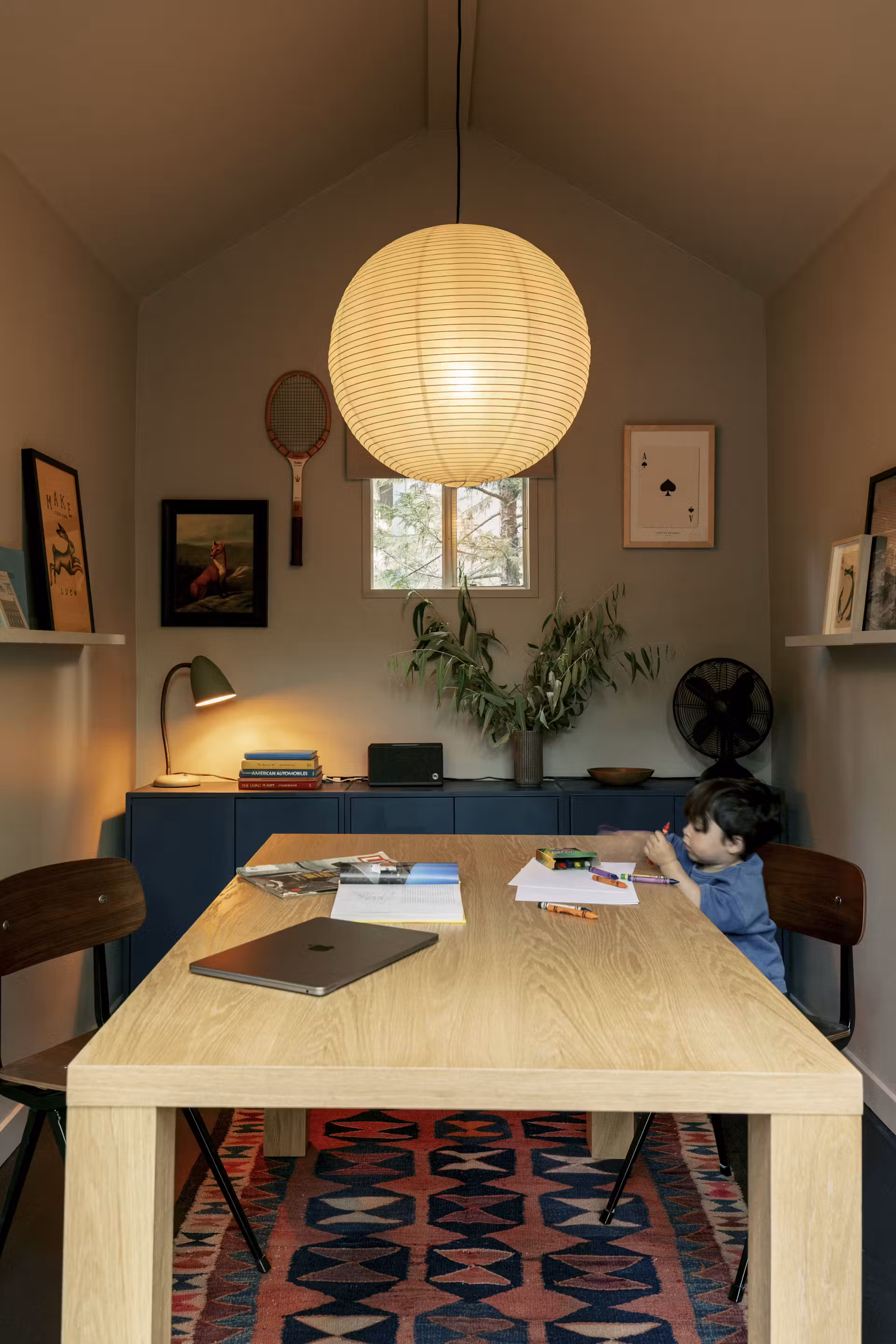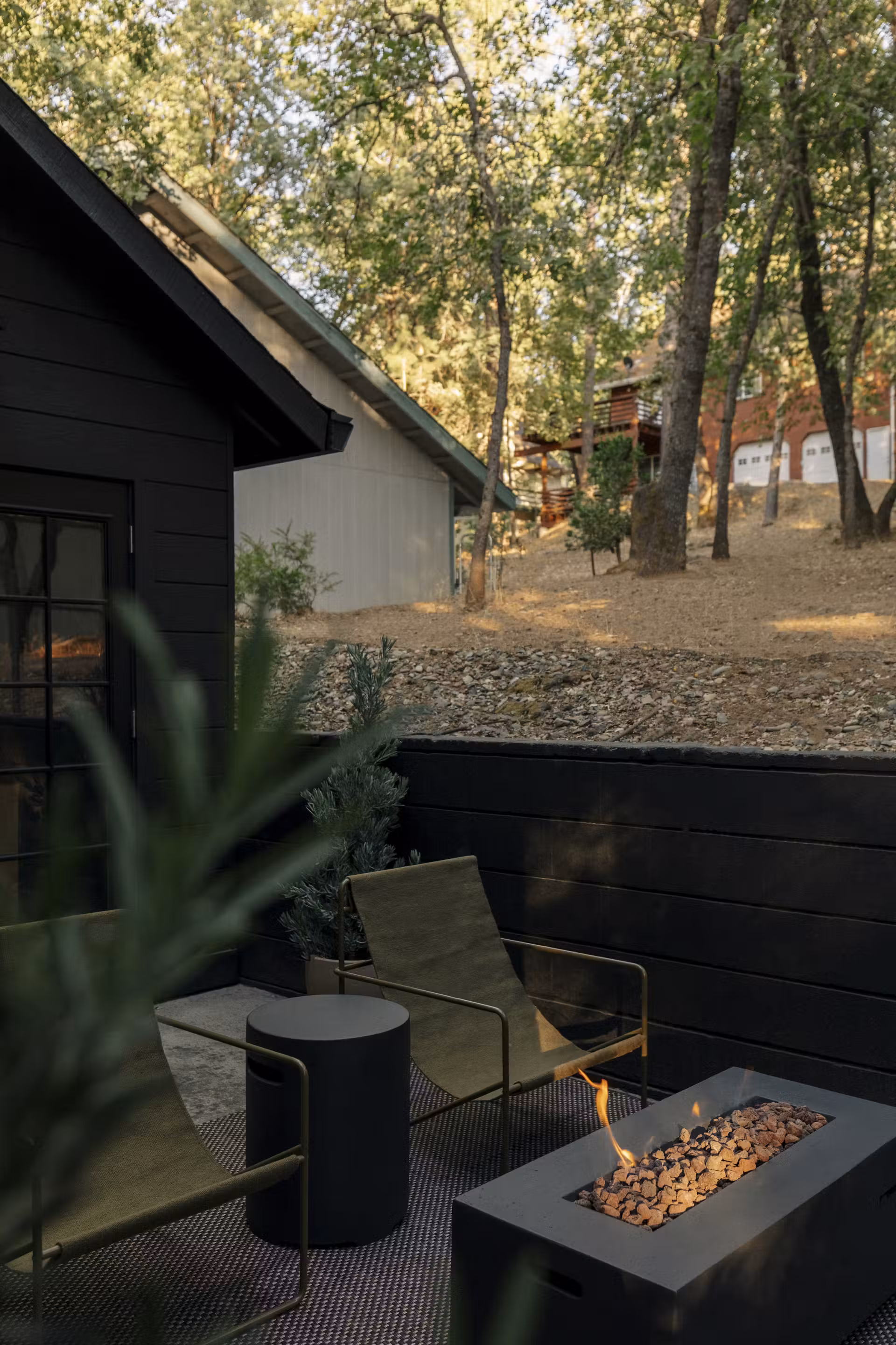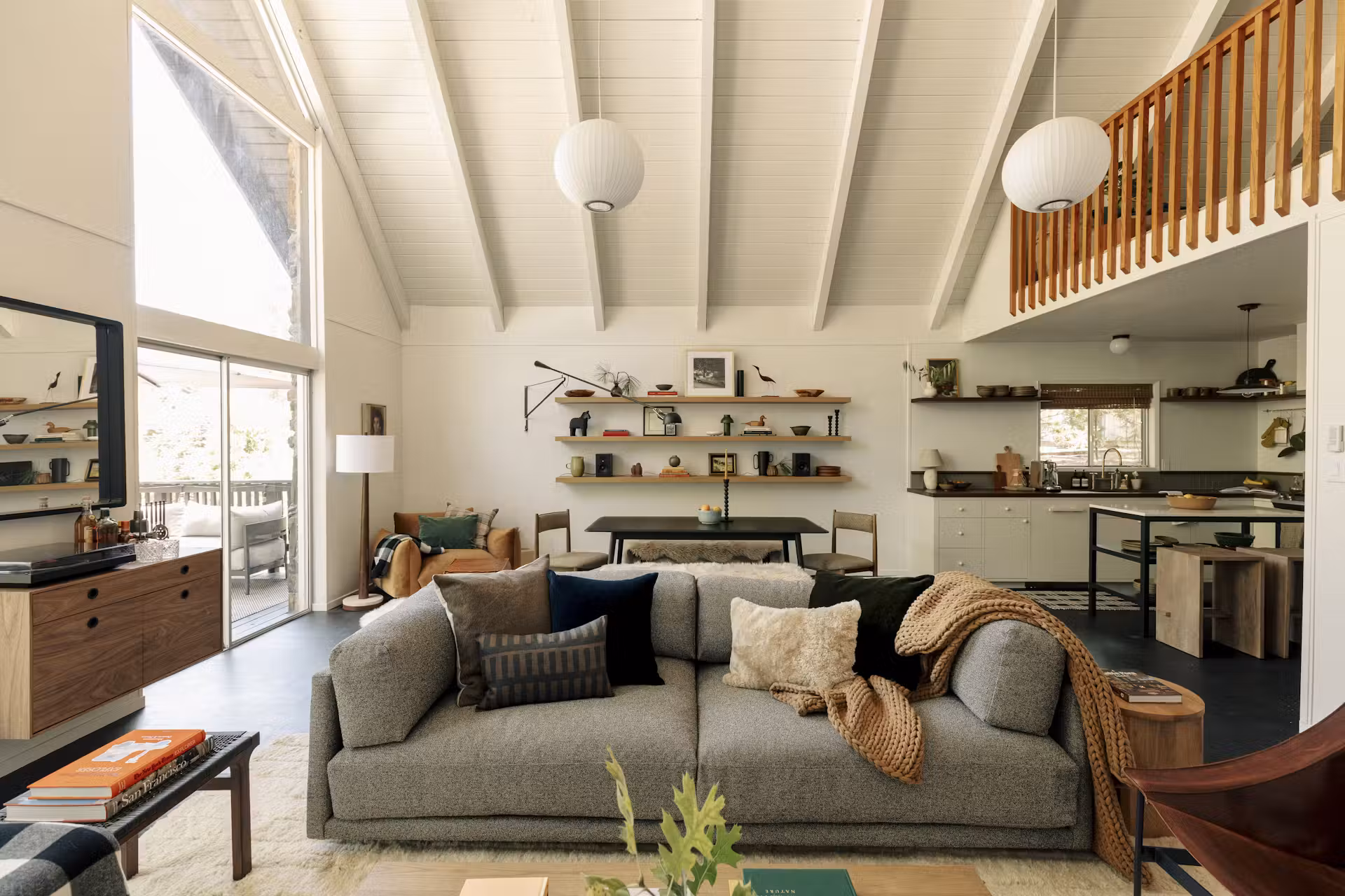 Dzięki starannie dobranym materiałom i dbałości o detale, dom w Pine Mountain Lake stał się nowoczesnym, ale autentycznym miejscem, które łączy przeszłość z teraźniejszością. Przeszklone ściany wpuszczają do wnętrza mnóstwo światła, a naturalne drewno, surowa cegła i delikatne akcenty vintage sprawiają, że przestrzeń jest ciepła i ponadczasowa.