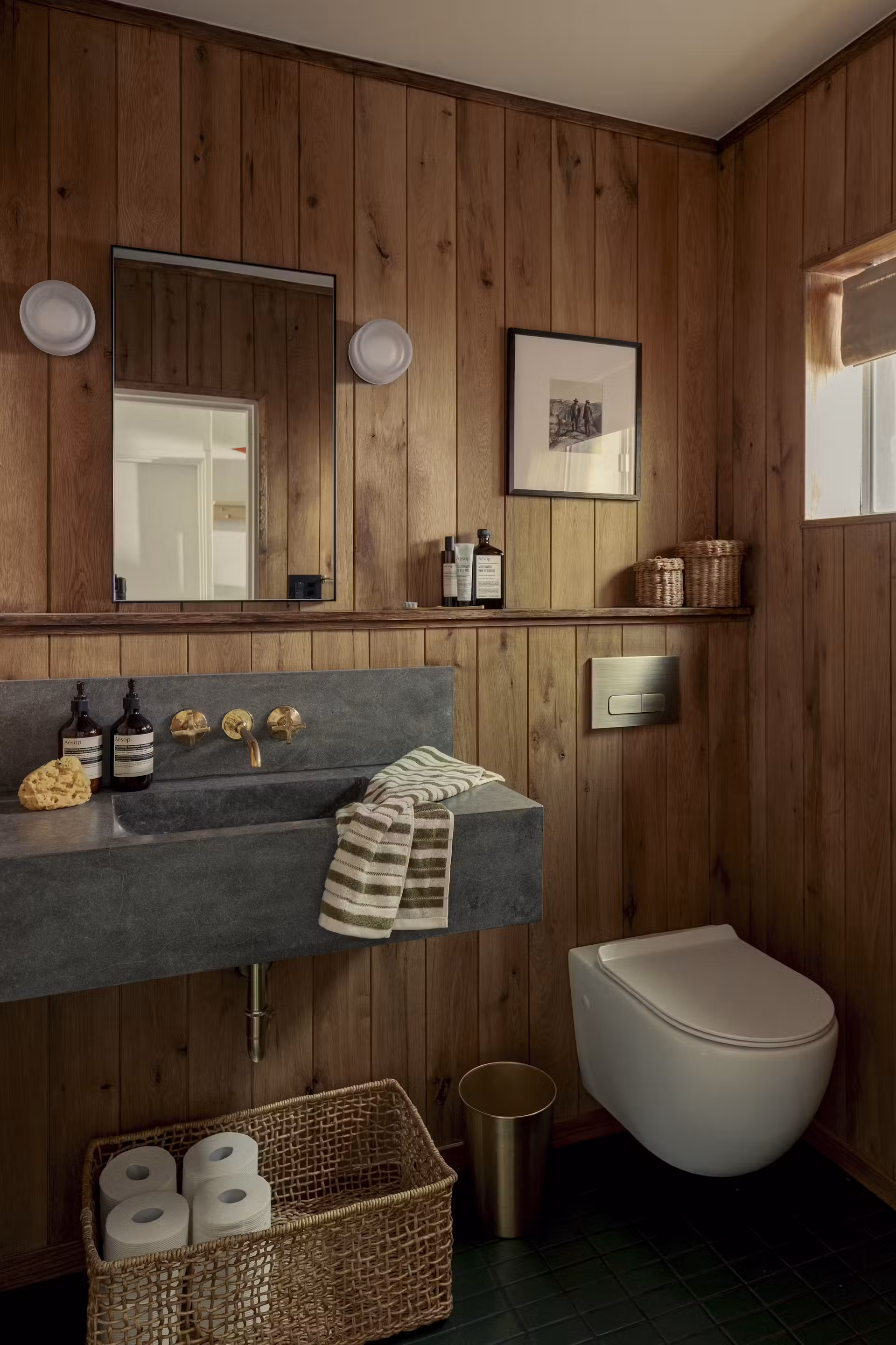Dla właścicieli ważne było, aby dom sprawiał wrażenie rodzinnego schronienia przekazywanego z pokolenia na pokolenie. W tym celu Alta Projects postawiło na autentyczne materiały i starannie wyselekcjonowane detale vintage. Wszystkie elementy wyposażenia, od ceramicznych lamp, przez obrazy olejne, po francuski stołek do dojenia, zostały pozyskane z lokalnych targów staroci, Goodwilla i Etsy, tworząc niepowtarzalny klimat letniego domku pełnego historii.