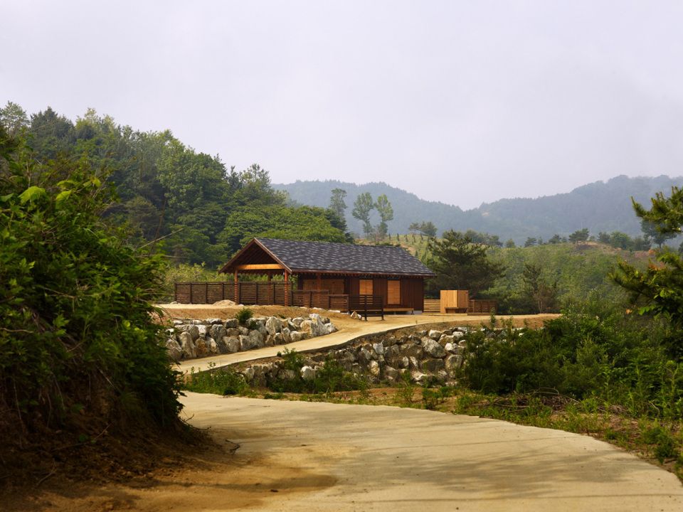 Para, która planowała przejście na emeryturę, poprosiła Studio GAON o zaprojektowanie małego, prostego domu inspirowanego tradycyjną koreańską architekturą. Architekci wzorowali się na XV-wiecznym domu Do-San Seodang, należącym do filozofa Yi Hwanga, który propagował filozofię Gyung – życie w pokorze, prostocie i harmonii z innymi. Budynek ma 43 m² powierzchni na parterze oraz niewielkie poddasze, a jego ogromna weranda podwaja wrażenie przestrzeni. Przez werandę wchodzi się do dwóch głównych pokoi dziennych, które można łączyć lub rozdzielać, a następnie do małej kuchni i łazienki. Poddasze z drabiną pełni funkcję gabinetu, tworząc funkcjonalną, minimalistyczną przestrzeń dla emerytowanego życia.