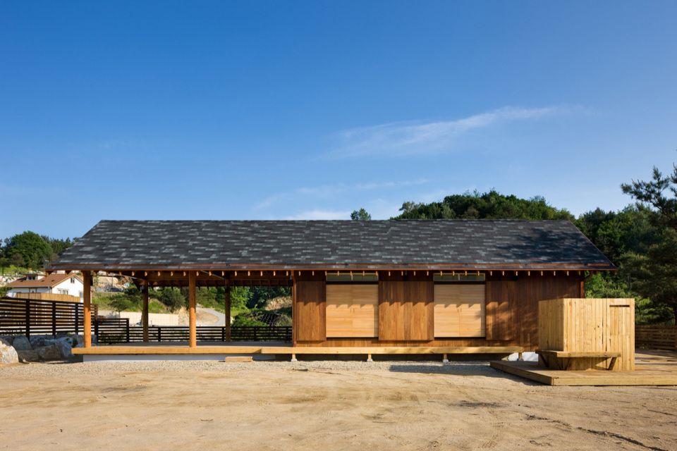 Projekt pozwala na elastyczne wykorzystanie wnętrza – pokój przy werandzie służy do przyjmowania gości, a środkowe pomieszczenie może pełnić funkcję sypialni właścicieli. Dzięki tradycyjnej, koreańskiej koncepcji domu i elastycznemu układowi pomieszczeń, budynek harmonijnie łączy prostotę, funkcjonalność i kontakt z naturą. Jasne drewno, linearne kształty i otwarte przestrzenie nadają mu charakteru jak nowoczesna stodoła, w której każdy element wnętrza ma znaczenie i sprzyja spokojnemu, zrównoważonemu stylowi życia.