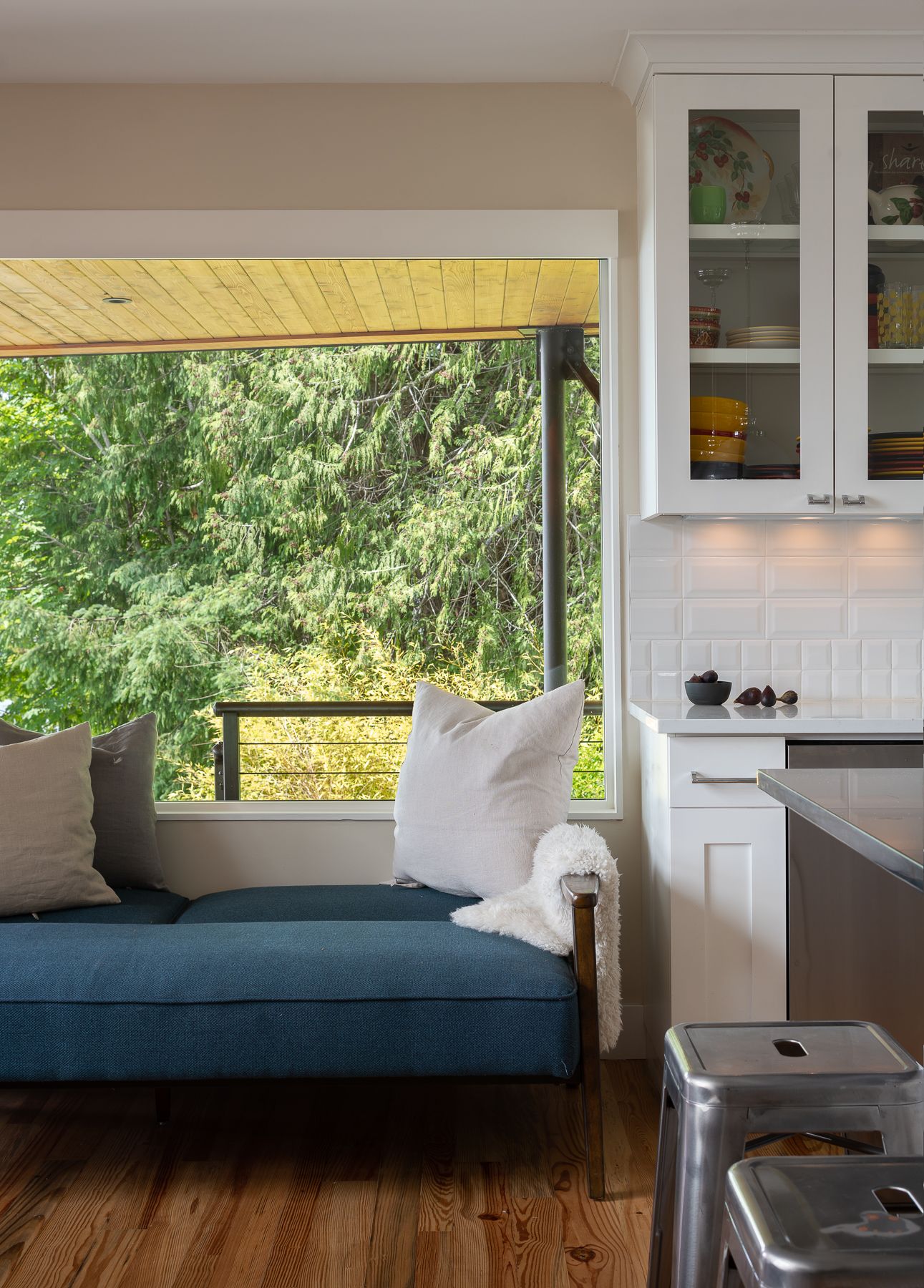 Projekt Aldo Beach House autorstwa pracowni Wittman Estes to przykład udanej adaptacji starego domu przy plaży z lat 40. XX wieku w nowoczesny dom wielopokoleniowy. Budynek zlokalizowany jest na wschodnim brzegu fiordu Hood Canal, w pobliżu bazy okrętów podwodnych, na terenie o wyjątkowo wrażliwym ekosystemie nadmorskim. Architekci podwoili powierzchnię mieszkalną, zachowując pierwotną podstawę domu i unikając ingerencji w naturalne ukształtowanie brzegu. Dzięki temu powstała współczesna architektura szanująca kontekst miejsca, funkcjonalnie zbliżona do idei, jaką często reprezentuje nowoczesna stodoła – prosta forma, racjonalna konstrukcja i bliskość natury.