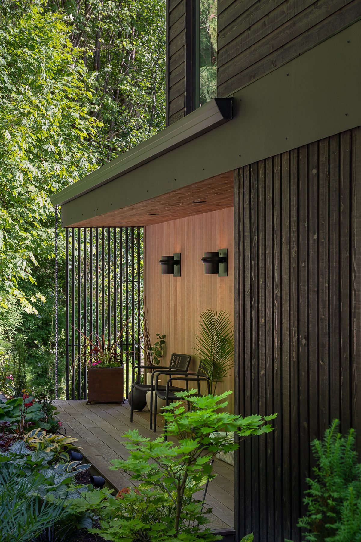 Istotnym elementem projektu była zrównoważona architektura oraz odpowiedzialny dobór materiałów. Elewacje wykonano z lokalnego drewna cedrowego, które z czasem naturalnie się starzeje, wtapiając budynek w krajobraz nadmorski. Stal nierdzewna i beton wprowadzają subtelny, morski charakter i ograniczają przyszłe potrzeby konserwacyjne. Projekt uzupełnia rodzima roślinność odporna na suszę oraz rozległe tarasy, które przedłużają przestrzeń mieszkalną na zewnątrz. Dom został zaprojektowany z myślą o wielopokoleniowej rodzinie, oferując zarówno przestrzenie wspólne, jak i prywatne, idealne do życia blisko natury.