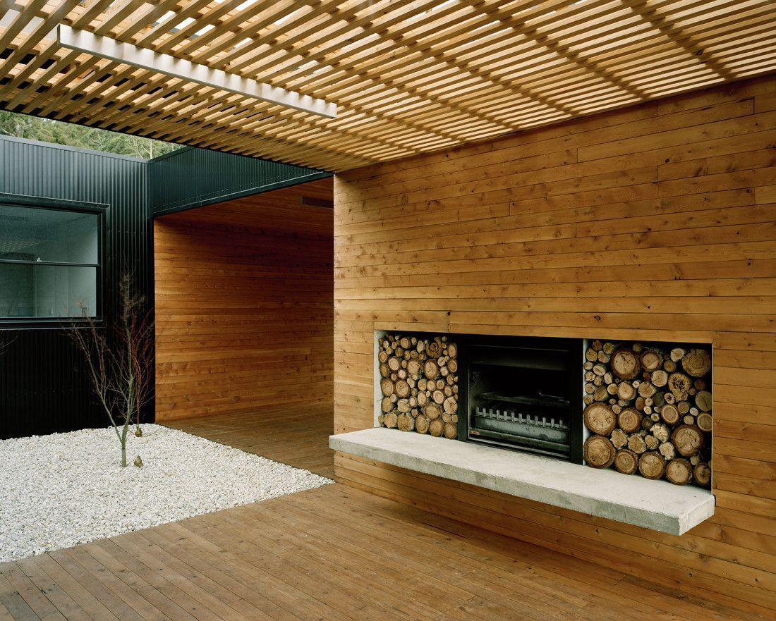 Ten dom w Tasmanii wyróżnia się dwojakim charakterem architektury, który bezpośrednio odpowiada na lokalny klimat i sposób użytkowania. Od strony wejścia przybiera surową, kanciastą formę przypominającą minimalistyczny kontener, natomiast wnętrze zaskakuje ciepłem, przytulnością i atmosferą schronienia. Przestrzeń pomiędzy zewnętrzną „skorupą” a wnętrzem pełni funkcję strefy buforowej, chroniącej mieszkańców przed gwałtownymi zmianami pogody, z których słynie Tasmania. Dzięki przemyślanej organizacji bryły możliwe jest korzystanie z przestrzeni zadaszonych i otwartych, osłoniętych od wiatru lub nadmiernego słońca, co pozwala komfortowo funkcjonować niezależnie od warunków atmosferycznych. Taka forma architektury wpisuje się w ideę, jaką reprezentuje nowoczesna stodoła, łącząca prostotę z funkcjonalnością.