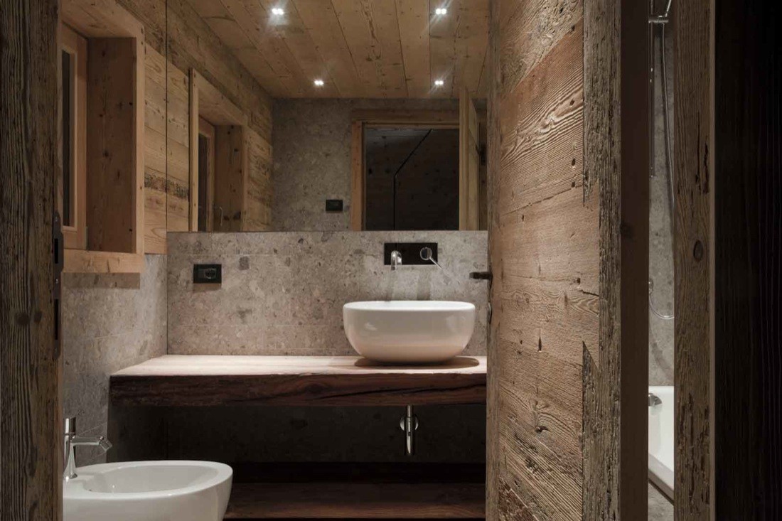 Alpejska stodoła to samowystarczalny energetycznie dom górski, zasilany instalacją fotowoltaiczną zintegrowaną z modrzewiowym dachem. Ogrzewanie zapewnia elektryczny system podłogowy, co pozwala na zerową emisję CO₂. Wnętrza zaprojektowano z dbałością o naturalne światło i czytelną paletę materiałów: modrzew, jodła, kamień Dolomia, czarna stal i biały surowy tynk. Każde pomieszczenie to przemyślana kompozycja tych elementów – tworząca spójną, zrównoważoną przestrzeń, gdzie natura przenika się z nowoczesnością.