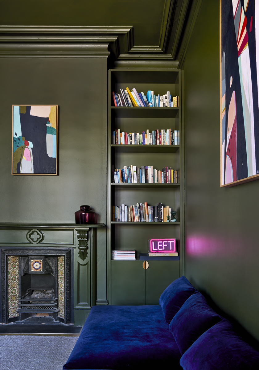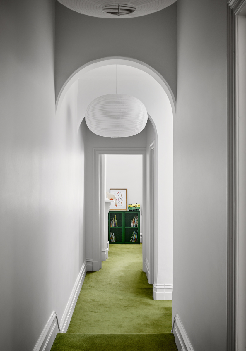 Zmodernizowane wnętrza są jasne, przestronne i pełne powietrza. Dla równowagi architekci pozostawili salon od frontu w nastrojowej, ciemniejszej kolorystyce. To miejsce celowo kontrastuje z resztą domu – jest bardziej kameralne, odwołuje się do historii budynku i zapewnia przestrzeń wytchnienia od jasnych, nowoczesnych części mieszkalnych.
