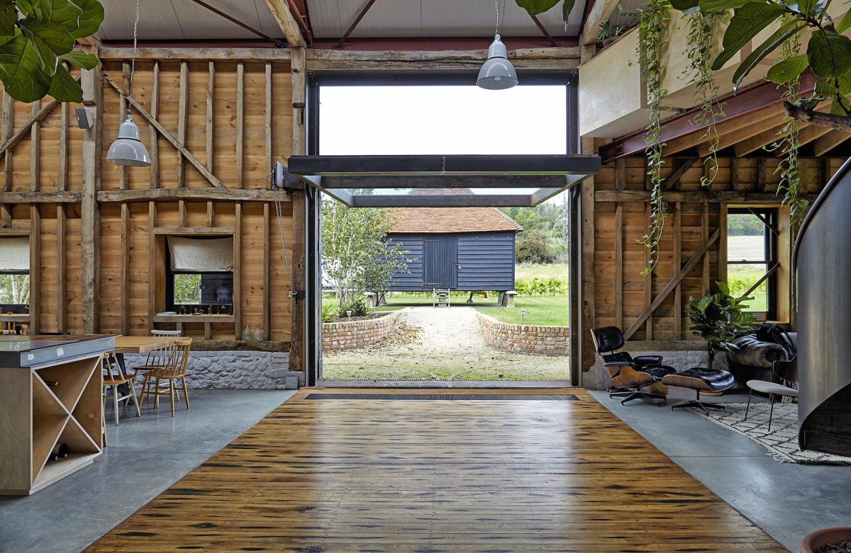 Liddicoat & Goldhill, odpowiedzialni za projekt, podkreślają, że koncentrowali się na materiałach i atmosferze, łącząc starą strukturę stodoły z nowoczesnymi rozwiązaniami. Budynek znajduje się w Area of Outstanding Natural Beauty (AONB), a zachowanie charakteru budynku wymagało zastosowania specjalnych mechanizmów otwierających przestrzenie, umożliwiających podziwianie widoków. Okiennice chroniące duże okna i stare drzwi z amerykańskiego hangaru tworzą wyjątkową estetykę.