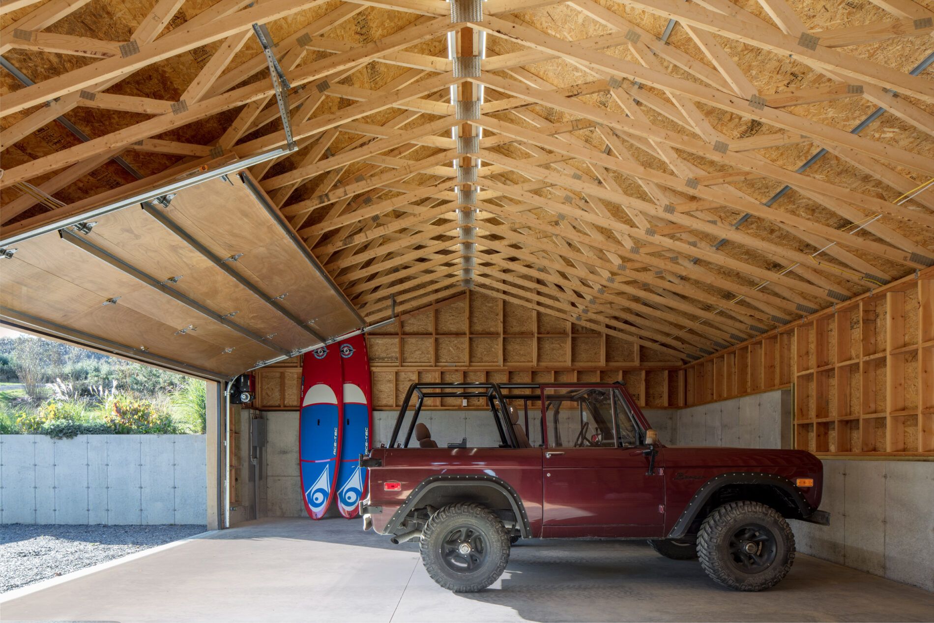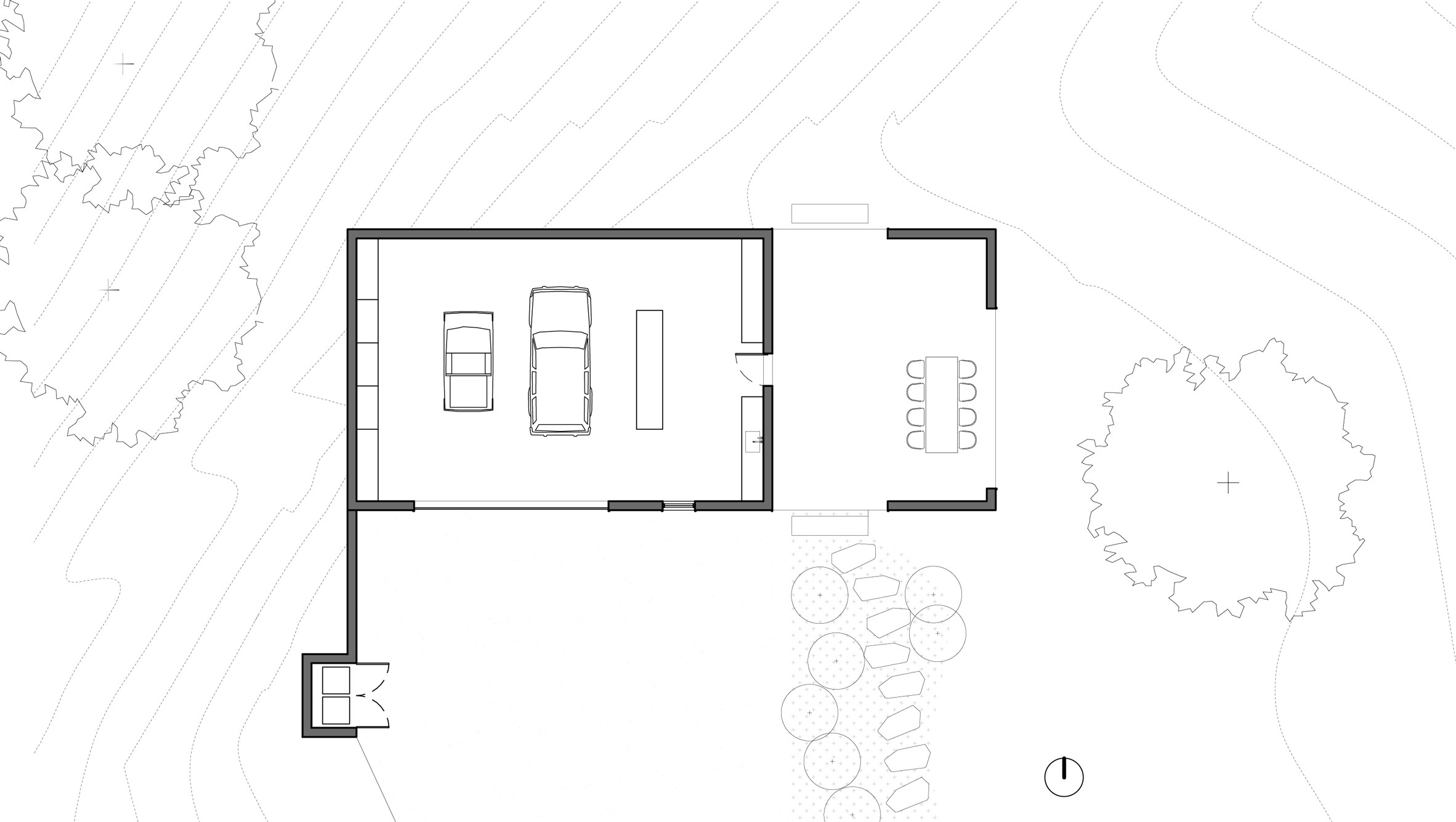Dom zwany „Ancram Barn” zorganizowany jest na osi wschód – zachód i składa się z dwóch osobnych sekcji o powierzchni w sumie 140 m2. Zachodnia część jest w pełni zamknięta i osadzona jest w zboczu. W tej części znajduje się garaż na dwa samochody z dodatkowym miejscem do przechowywania. – „Wewnątrz pozostawiono odsłoniętą konstrukcję drewnianą i belki z prefabrykowanej konstrukcji dachowej” – informują architekci.