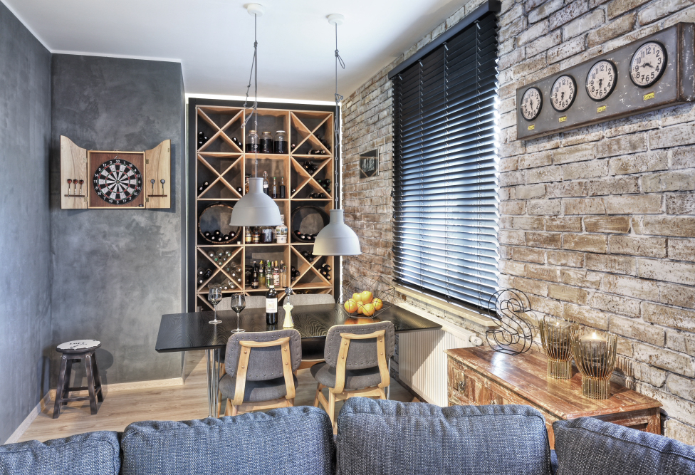 Projekt wnętrza został zaplanowany tak, aby poza funkcją mieszkalną pełnił również rolę przestrzeni do przechowywania i ekspozycji kolekcji win. Starannie dobrane oświetlenie, ciemne tonacje i minimalistyczne wyposażenie tworzą spójną aranżację inspirowaną architekturą loftową, ale z wyczuwalnym wpływem współczesnych trendów, charakterystycznych także dla stylu, jakim jest nowoczesna stodoła. To wnętrze, które łączy surowość, funkcjonalność i indywidualny charakter, oferując wyjątkowy klimat do życia i degustacji wina tuż nad morzem.
