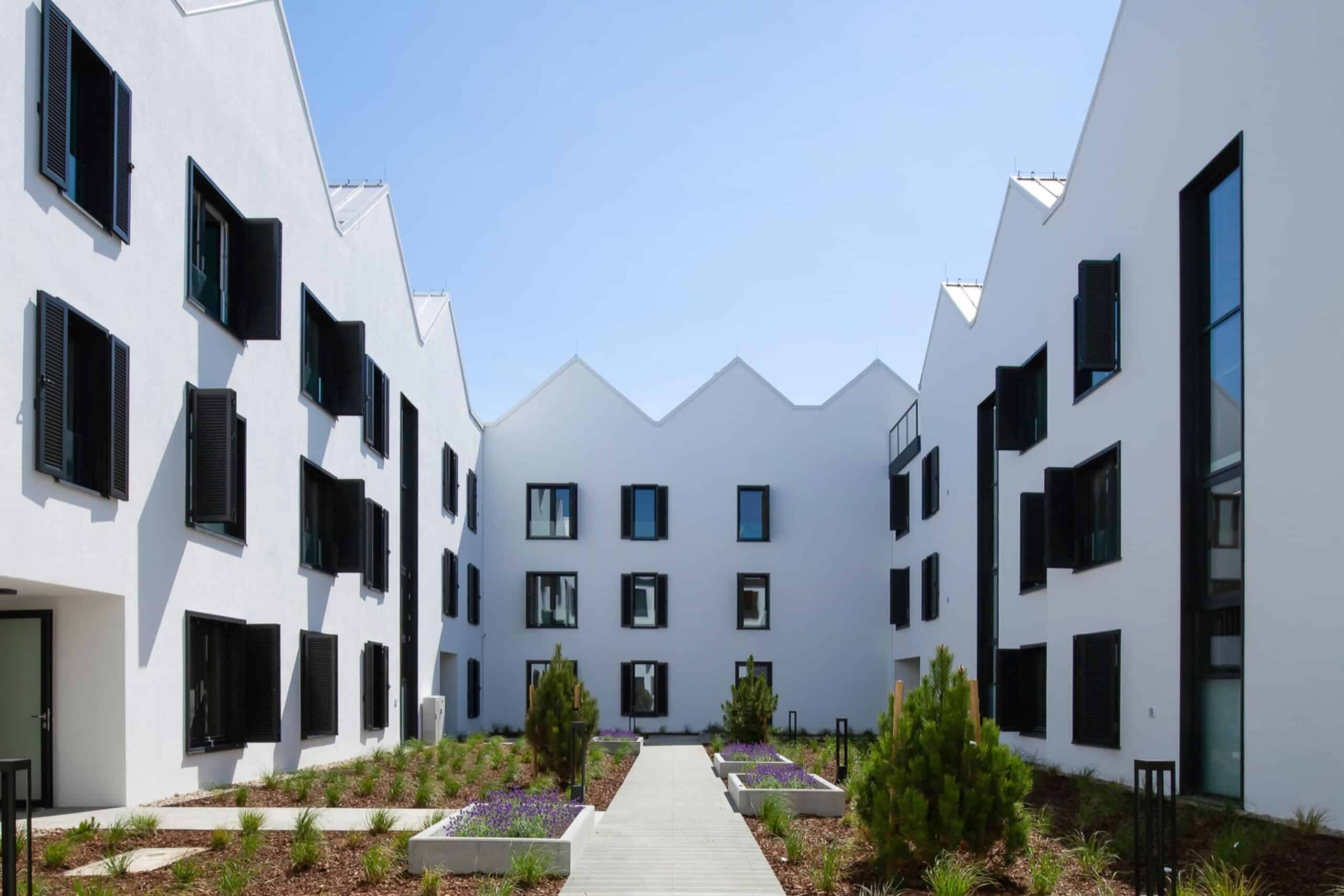 Centralną częścią założenia jest ogólnodostępne patio otoczone zielenią, tworzące bezpieczną, półprywatną przestrzeń sprzyjającą wypoczynkowi. Wkomponowano tu również tereny rekreacyjne, w tym boisko do piłki plażowej, które zachęca do aktywności na świeżym powietrzu. Dzięki temu Porto Łeba staje się miejscem, które pozwala odpoczywać na wiele sposobów — zarówno spokojnie, jak i aktywnie.