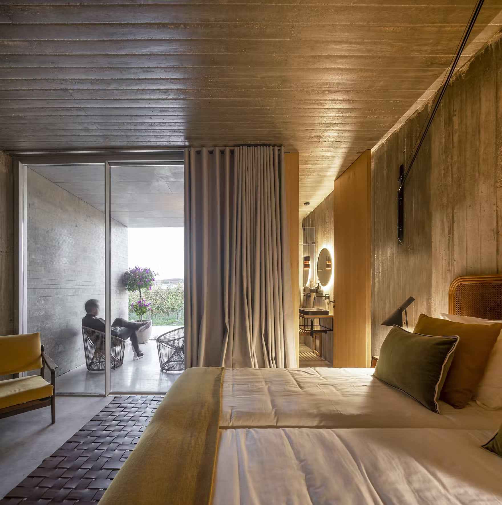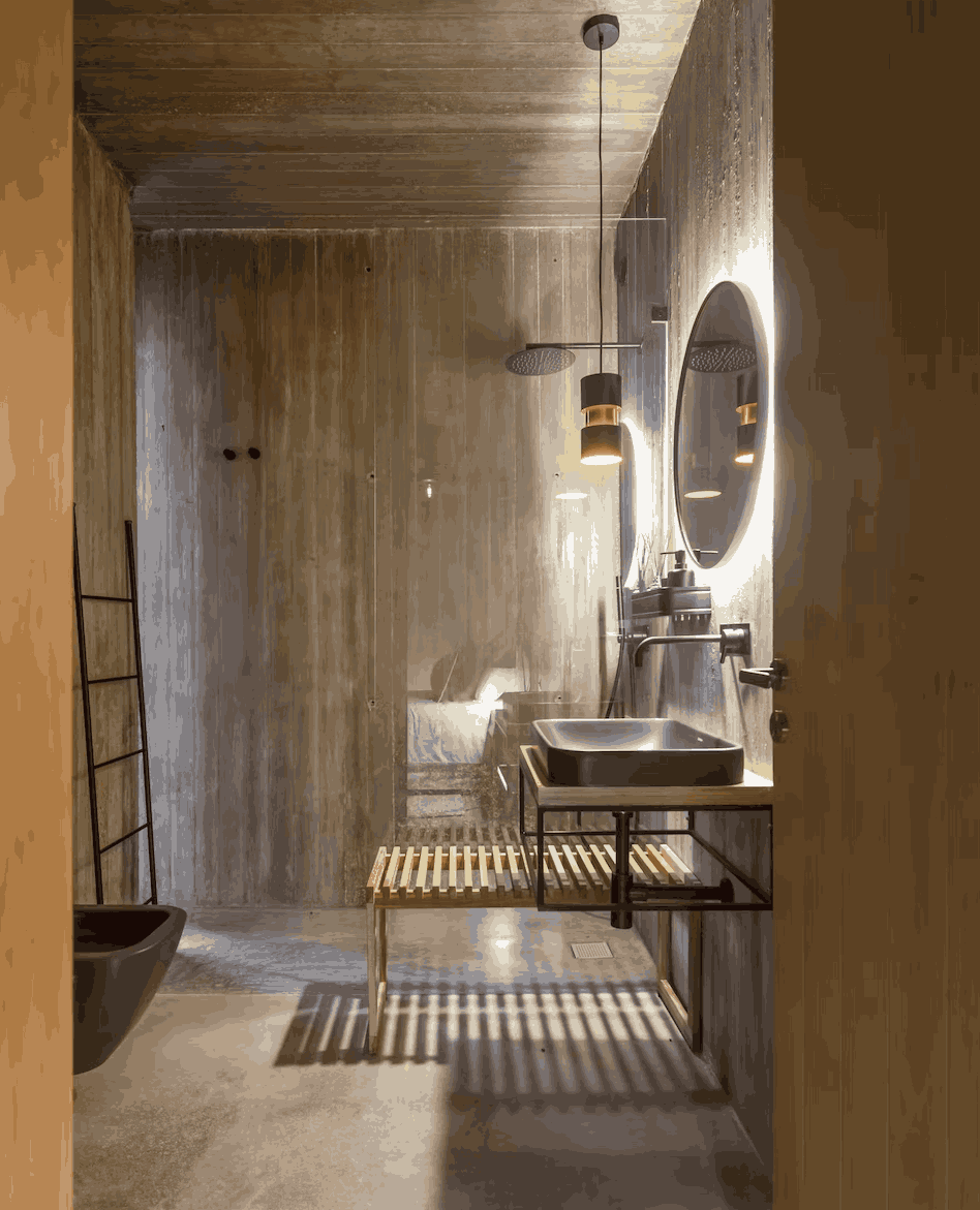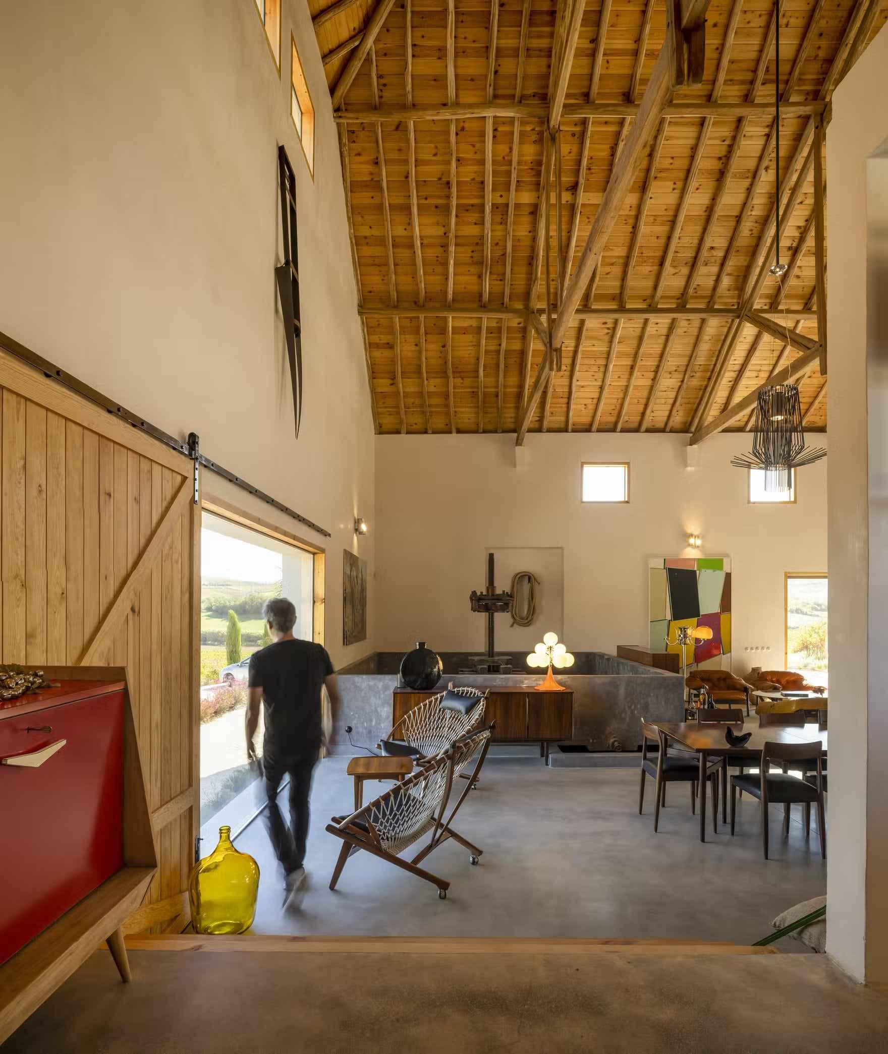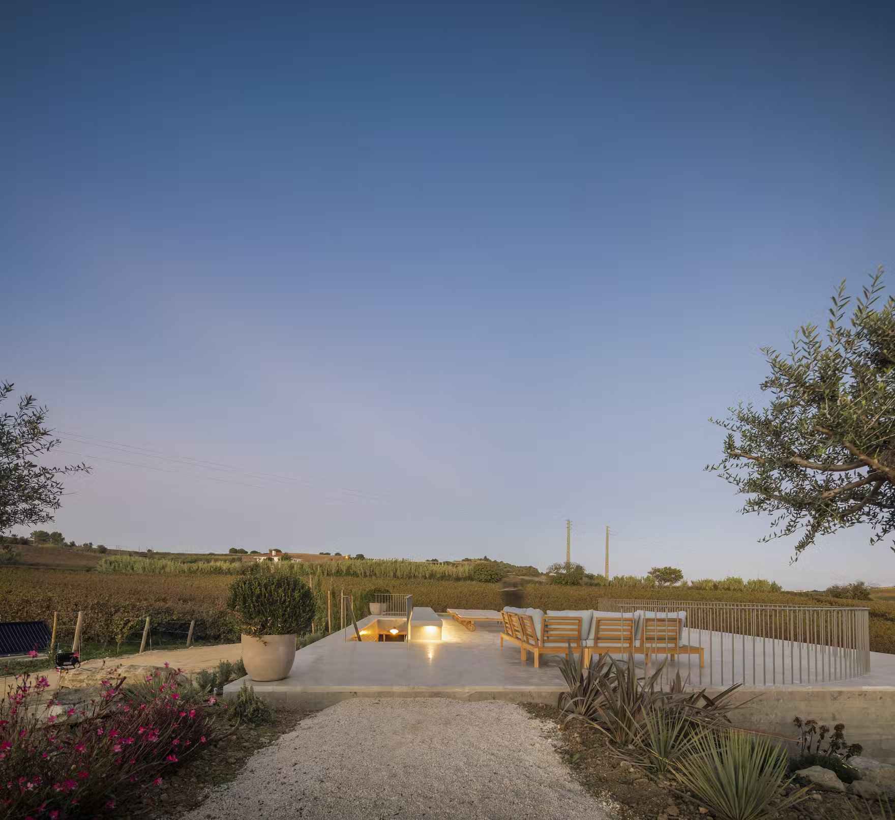 Część mieszkalna na niższym poziomie mieści prywatne sypialnie z wyjściem na południowe tarasy, oferując prywatność oraz ochronę przed słońcem. Na wschodnim krańcu budynku znajduje się niekończący się basen, wyżłobiony w kamiennym bloku, z którego roztacza się widok na wzgórza pokryte winnicami. Całość dopełnia podziemny tunel z surowego betonu, oświetlony świetlikiem, który łączy przestrzenie mieszkalne z zabudową przypominającą historyczne winiarnie. Cas’Amaro, choć nawiązuje do architektury wiejskiej, zachwyca estetyką i rozwiązaniami przypominającymi nowoczesną stodołę – prostą formą, szlachetnymi materiałami i funkcjonalnym minimalizmem. To przykład, jak można współczesną turystykę winiarską połączyć z lokalnym dziedzictwem i designem.