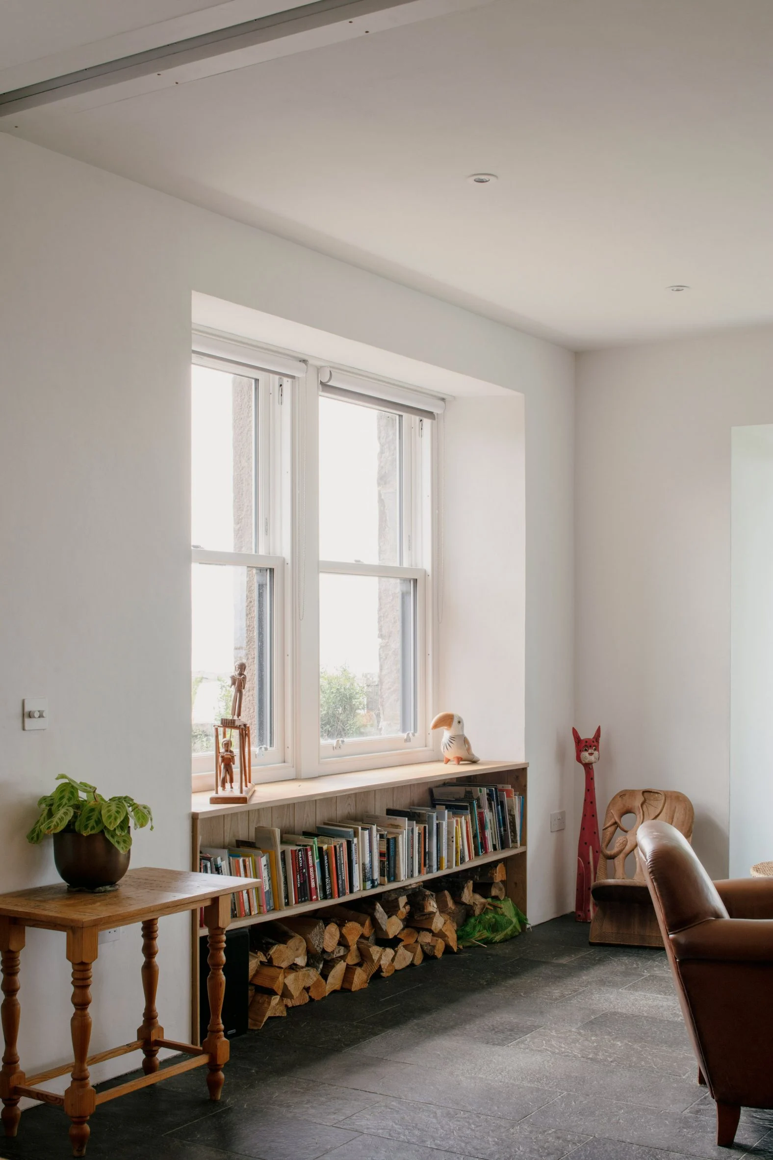 Aby poprawić efektywność energetyczną Applecross Schoolhouse, budynek został rozebrany do pierwotnej kamiennej konstrukcji, a następnie ocieplony włóknem drzewnym i wykończony tynkiem wapiennym.