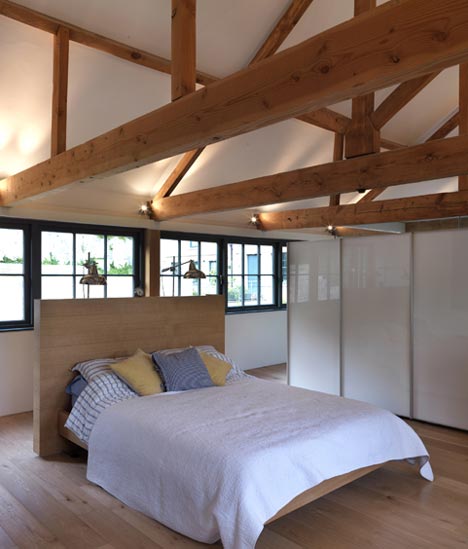 Firma Threefold Architects z Londynu przeprowadziła wyjątkową adaptację zabytkowego magazynu na nowoczesny dom rodzinny, zlokalizowany na obrzeżach angielskiego miasta Bath. Projekt objął połączenie kilku dawnych budynków należących niegdyś do jednej firmy, które dziś tworzą spójną, funkcjonalną całość. Nowe schody i przejścia zostały zorganizowane wokół centralnej ściany komunikacyjnej, stanowiącej kręgosłup domu. Architekci świadomie zachowali i wyeksponowali oryginalne elementy konstrukcyjne, takie jak drewniane belki i wsporniki, zestawiając je z nowoczesnymi detalami wyraźnie odróżniającymi się od historycznej tkanki. Takie podejście doskonale wpisuje się w ideę, jaką reprezentuje nowoczesna stodoła, łącząca tradycję z współczesnym designem.