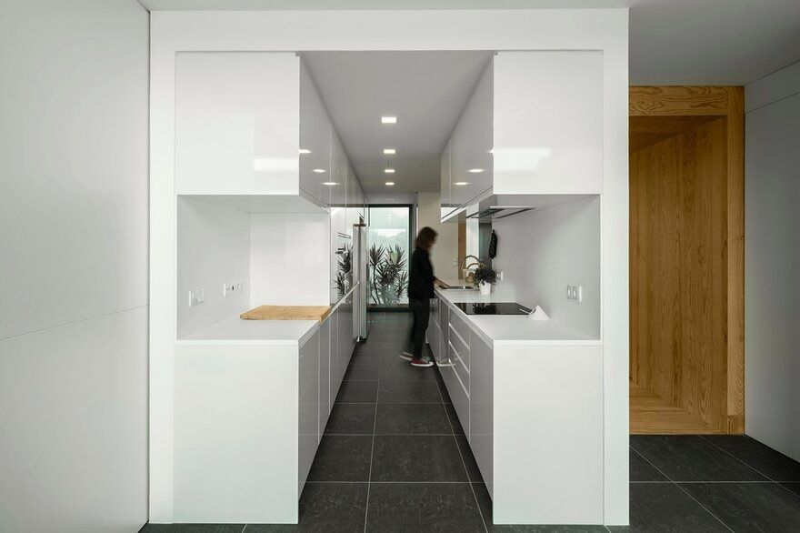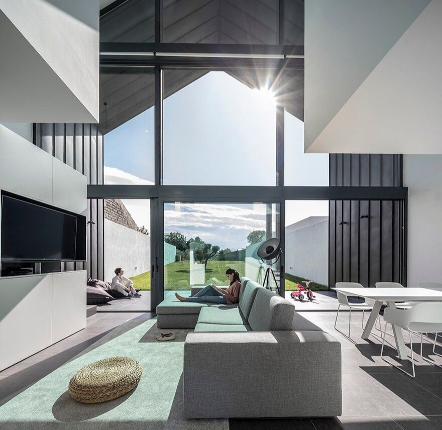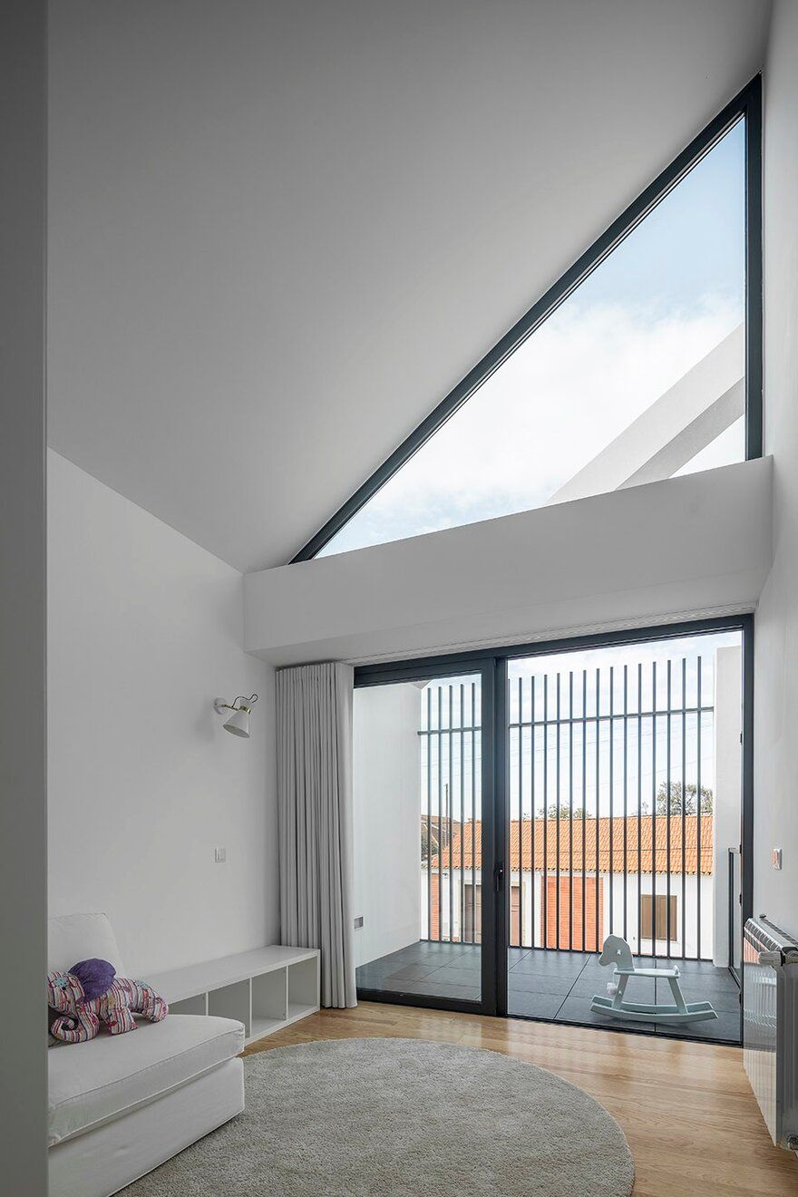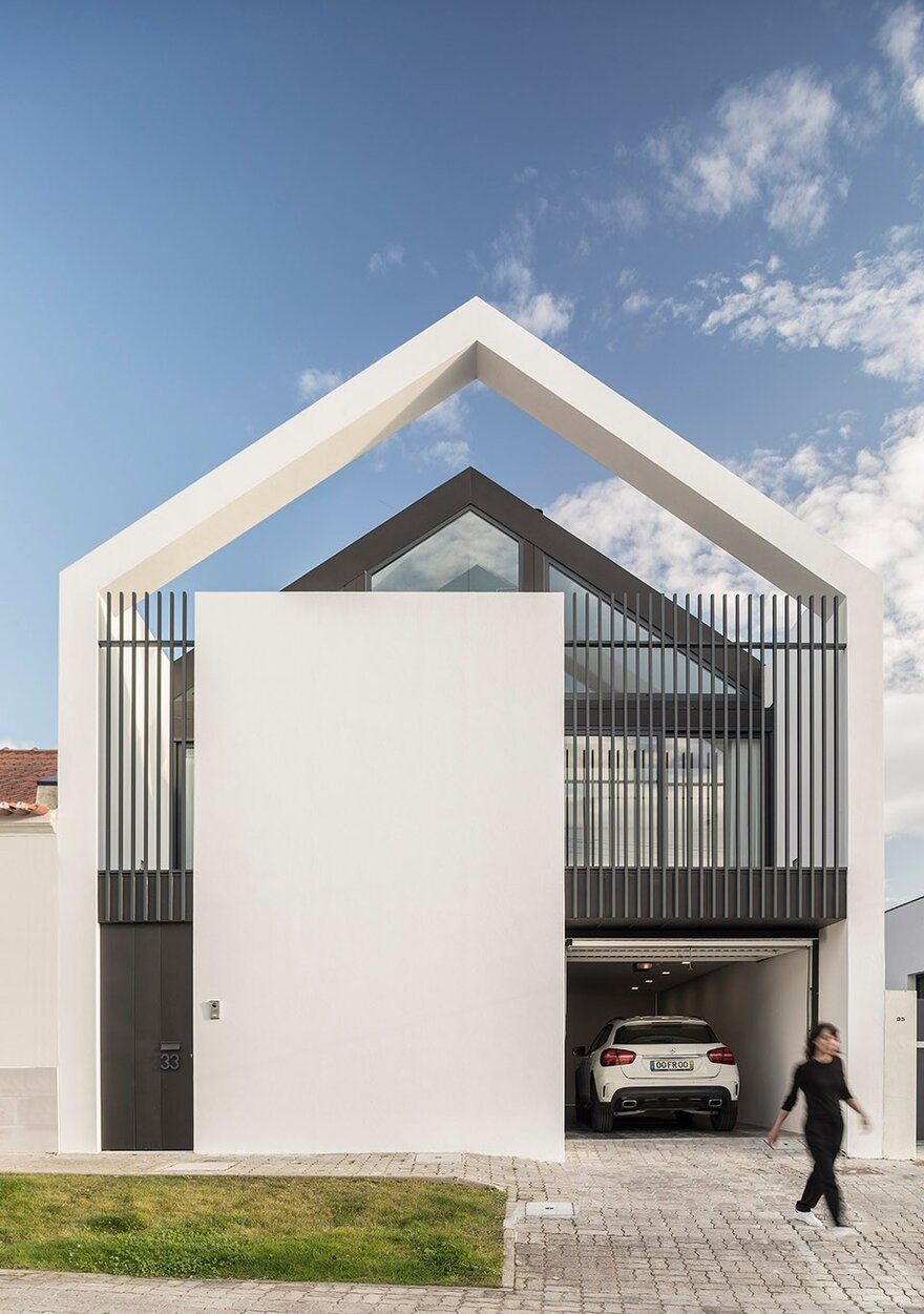 Pod koniec 2018 roku architektka Maria Fradinho zaprojektowała i zrealizowała własny dom z biurem na działce o powierzchni ponad 900 m², zlokalizowanej na przedmieściach Ílhavo w Portugalii. Wybór miejsca nie był przypadkowy – bezpośrednie sąsiedztwo historycznej fabryki porcelany Vista Alegre stało się głównym źródłem inspiracji dla całego projektu. Budynek nawiązuje do architektury przemysłowej i miejskiego kontekstu, tworząc jednolitą, rzeźbiarską bryłę o metalicznej elewacji. Choć forma zewnętrzna jest surowa i wyrazista, wnętrze domu zaprojektowano jako zupełnie niezależną, ciepłą przestrzeń do życia i pracy, będącą współczesną interpretacją idei, jaką niesie nowoczesna stodoła w miejskim krajobrazie.