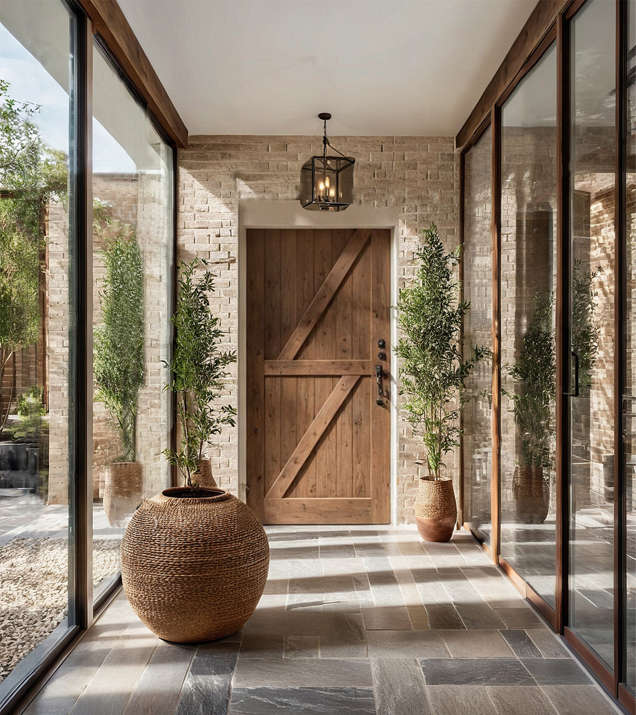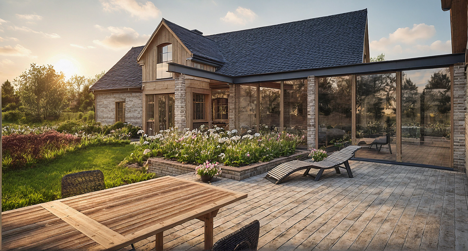 Wnętrze to hołd dla naturalnych materiałów: szczotkowanego drewna, kamienia, tradycyjnych tynków, ceramiki i szkła – zaprojektowanych z myślą o prostocie, trwałości i codziennym komforcie. To dom, który nie dominuje, lecz współgra z krajobrazem. Nie udaje nowego – lecz wygląda, jakby stał tu od zawsze.