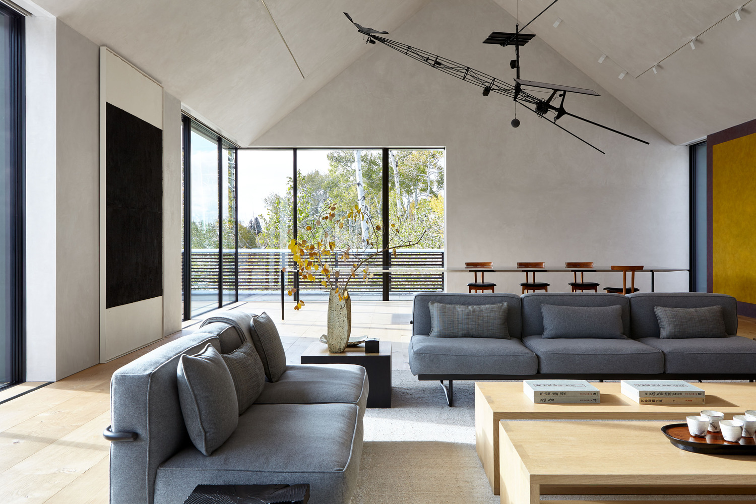 Art Barn stoi na skraju stromej górskiej skarpy nad Aspen. Wejściowa elewacja zwraca się ku łące rancza, a tylna kadruje panoramiczne widoki na miasto i stoki – to miejsce spotkań, filantropii i prezentacji sztuki multimedialnej, w którym architektura staje się tłem dla wydarzeń. Projekt opracowało biuro Rowland+Broughton.