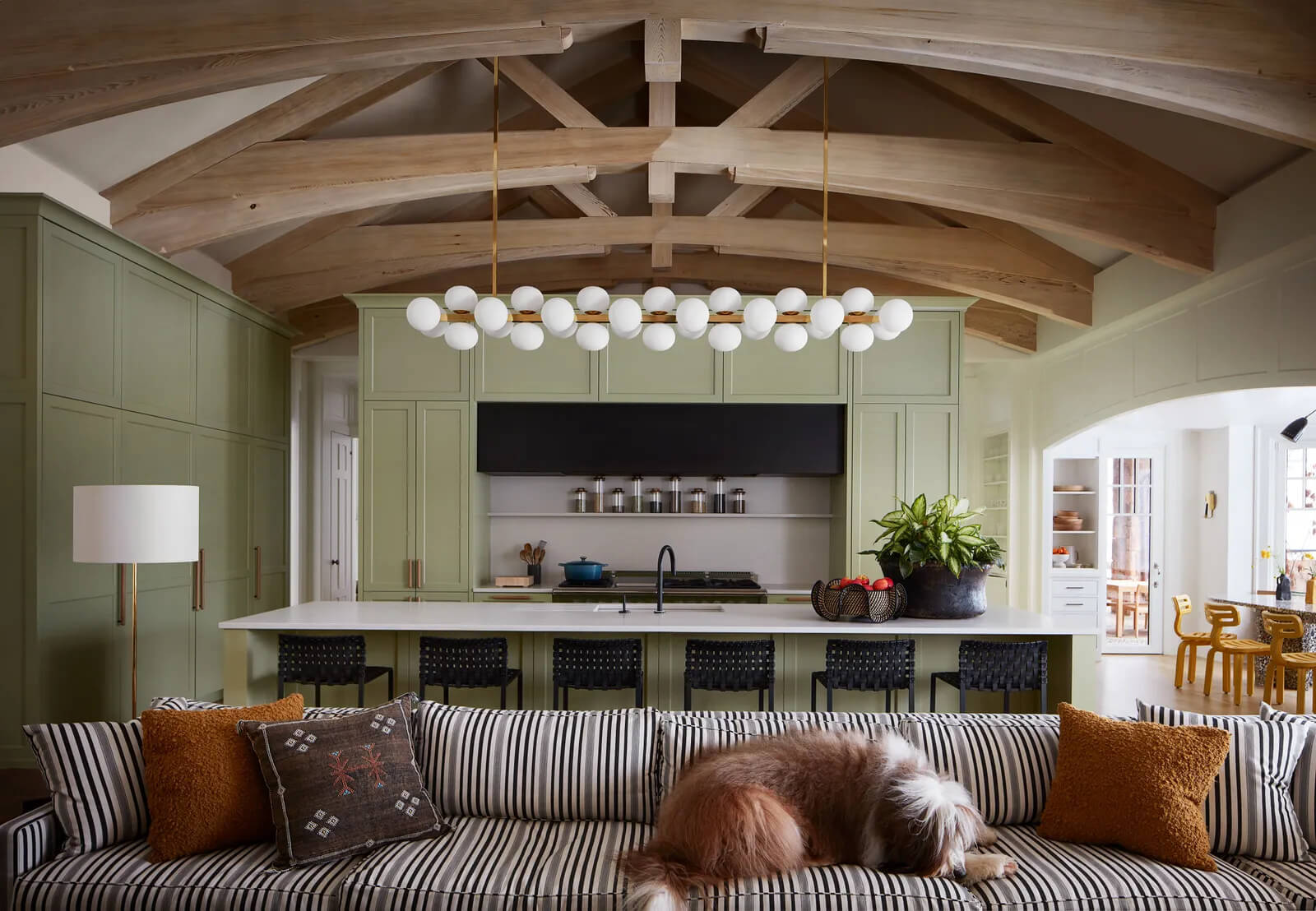 Celem przebudowy było rozjaśnienie przestrzeni. Drewniane elementy konstrukcyjne, takie jak masywne wiązary sufitowe, przeszlifowano i wybielono, by nadać im lekkości. Ściany zyskały neutralne odcienie beżu, które idealnie komponują się z naturalnym światłem. Całość uzupełniła eklektyczna kolekcja mebli, łącząca nowoczesny design z elementami vintage. Dom Zilkhów to połączenie minimalizmu, luksusu i funkcjonalności – idealny przykład na to, jak przestrzeń może harmonijnie współgrać z otaczającą przyrodą. To miejsce, które nie tylko zapewnia komfort, ale także inspiruje do życia w zgodzie z naturą.
