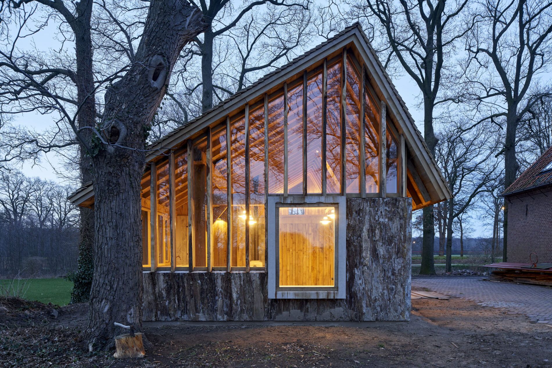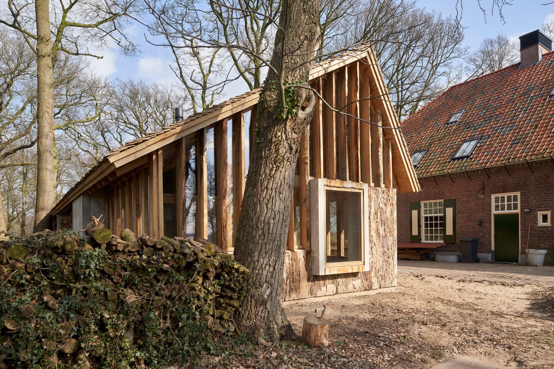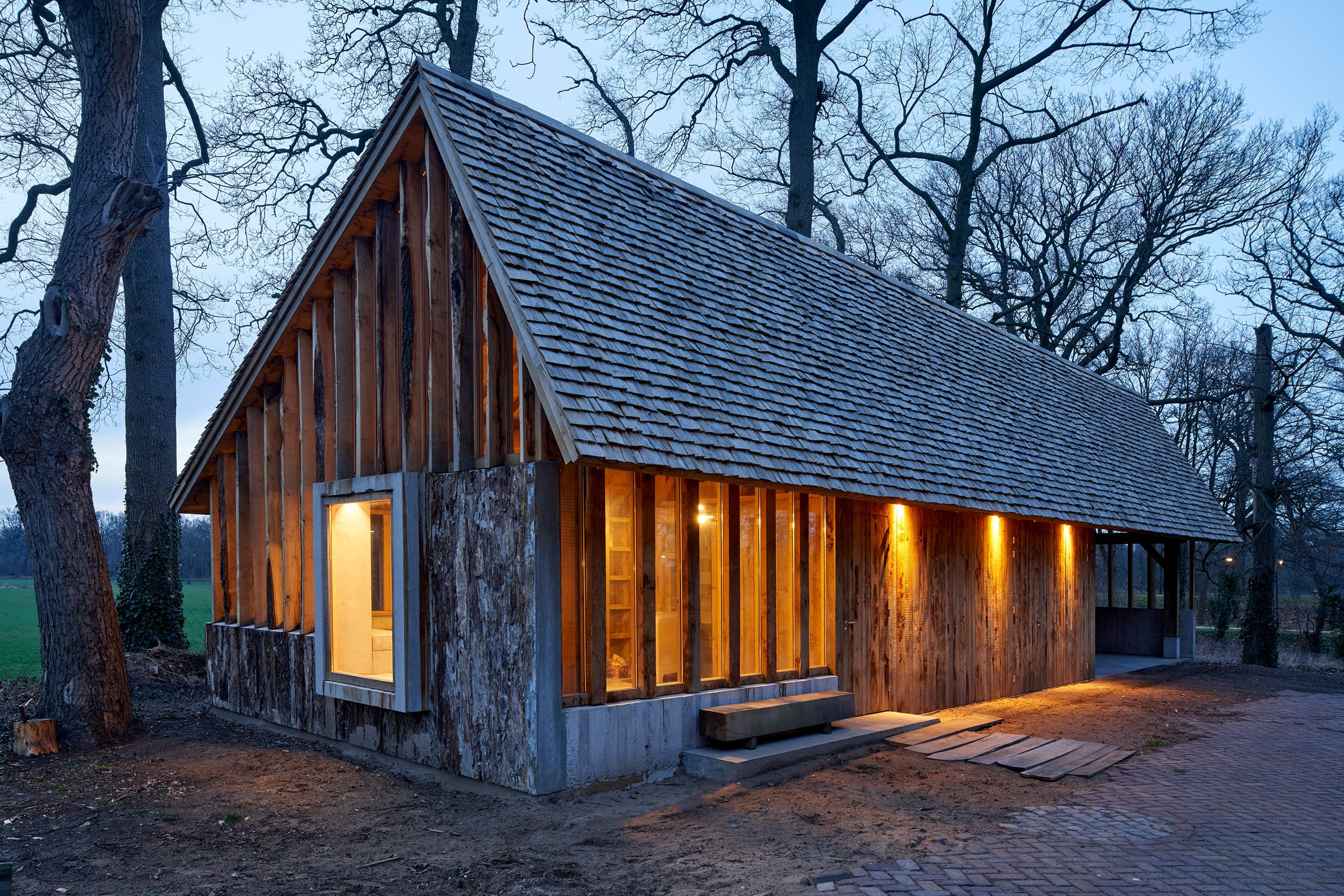 Kilka starych dębów zapewniło drewno na budowę warsztatu, który firma HilberinkBosch Architects zaprojektowała na działkę, gdzie znajduje się ich studio.