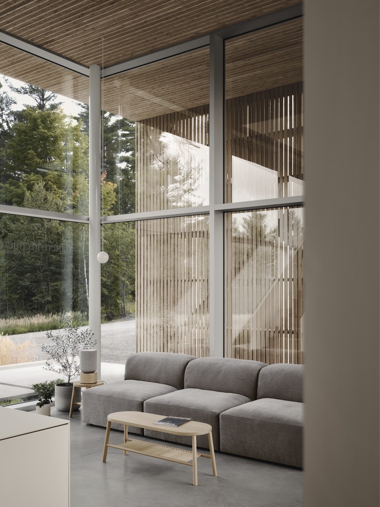 Nowoczesna stodoła w Quebecu – przestrzeń, która żyje z naturą