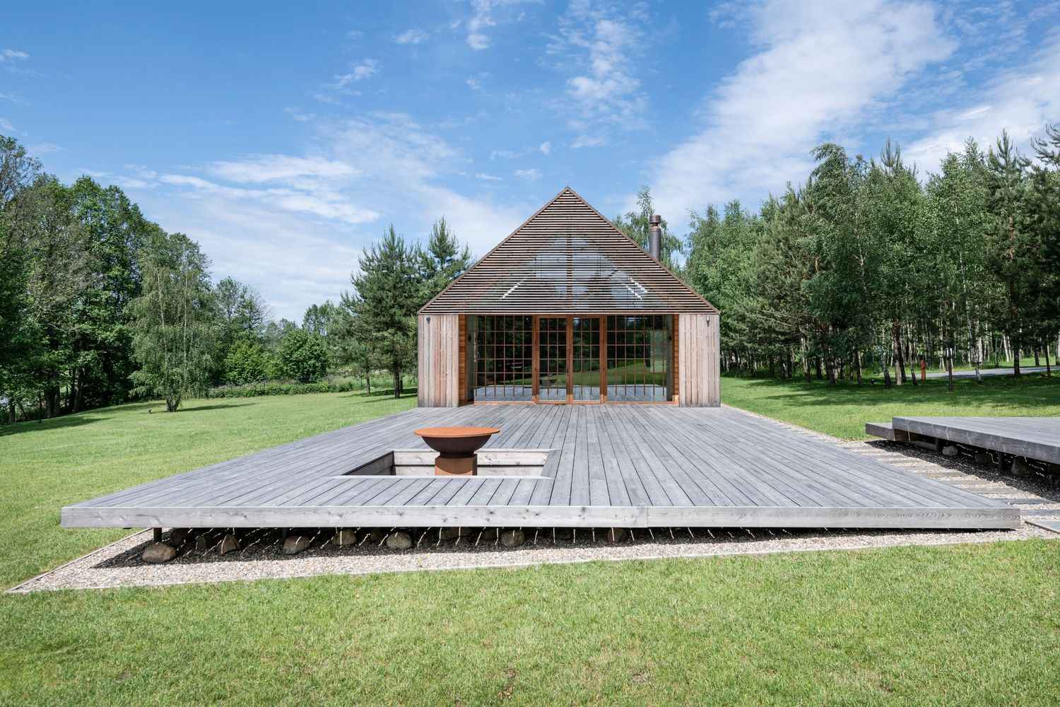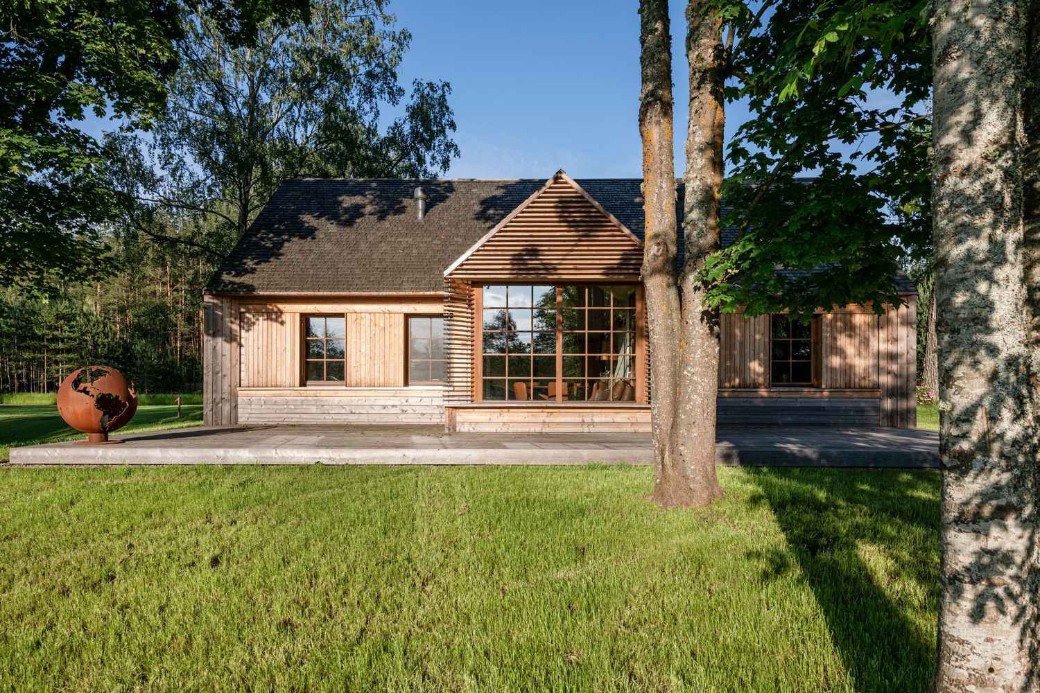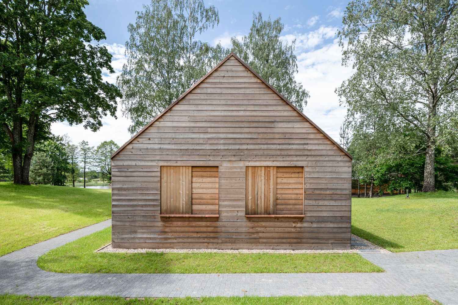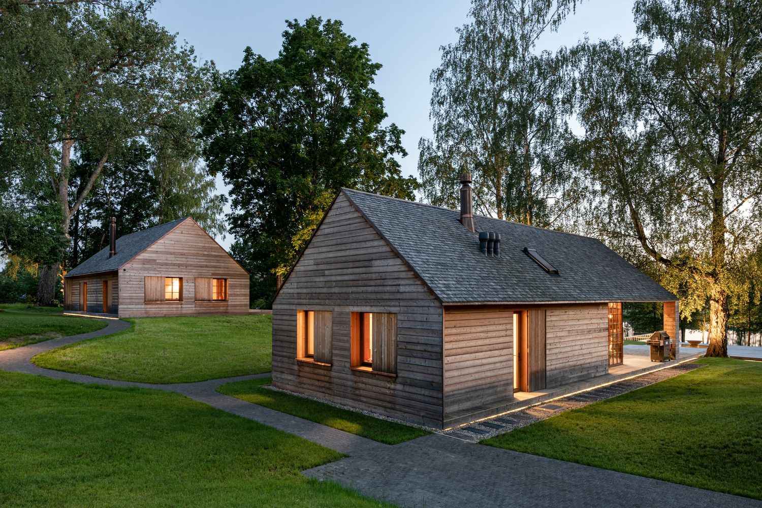 Projekt czerpie inspirację z tradycyjnej wiejskiej zagrody, zachowując pełną funkcjonalność nowoczesnego domu. Na dużej, leśnej działce otoczonej jeziorami rozmieszczono kilka budynków: dom główny, dom dziadków, saunę, kuchnię zewnętrzną i budynek gospodarczy. Łączą je kręte ścieżki, które tworzą swoistą „lokalną sieć życia”, promując codzienne życie zarówno na zewnątrz, jak i wewnątrz. Choć projekt nawiązuje do idei nowoczesnej stodoły, każdy budynek jest harmonijnie wpisany w krajobraz, nie zakłócając naturalnego rytmu otoczenia.