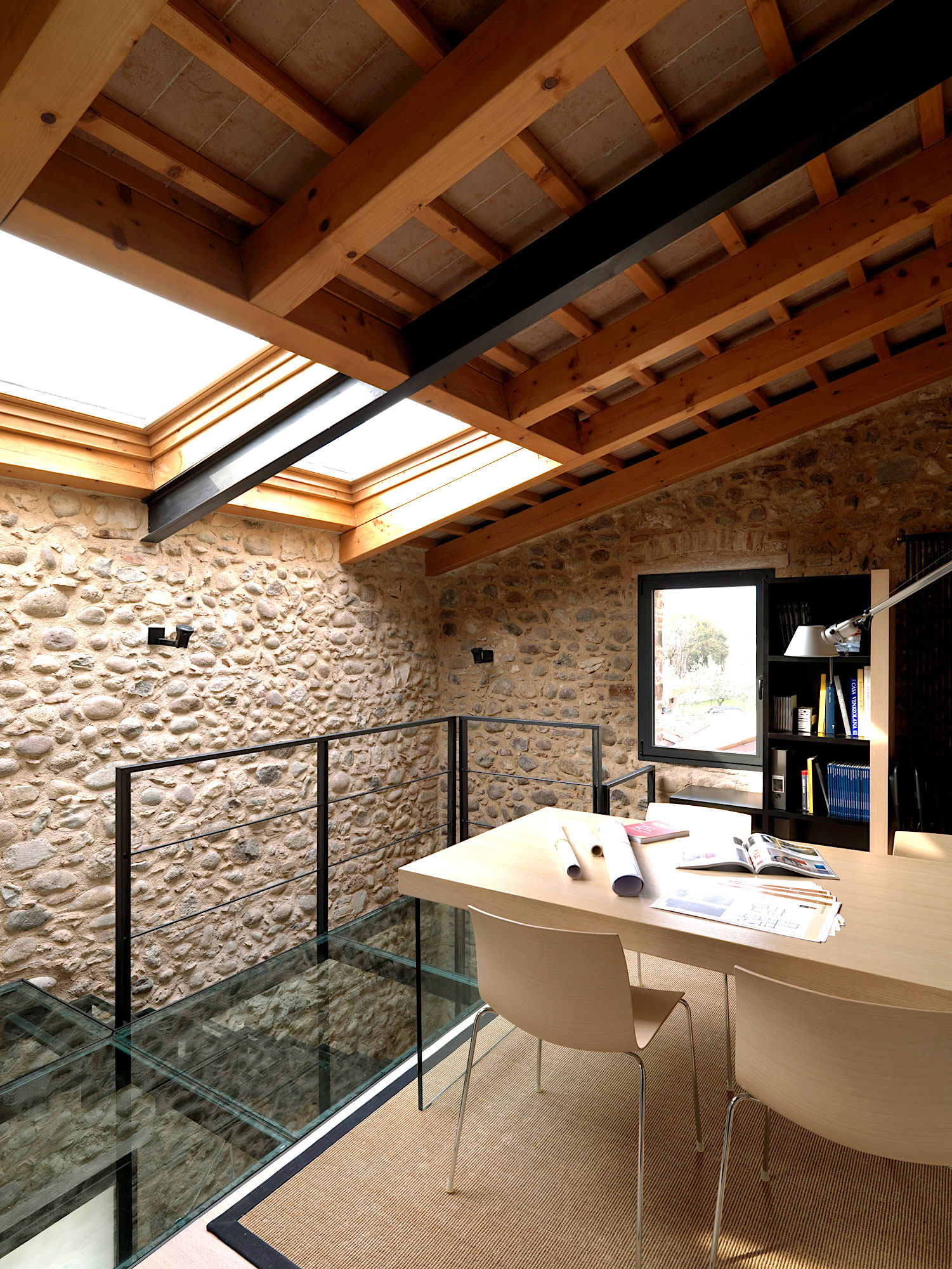 Motywem przewodnim renowacji są kamienie rzeczne, które tworzą ściany budynku. Starannie oczyszczone z dawnych tynków, stały się kluczowym elementem wizualnym. Naturalne światło, wpadające przez okna, podkreśla subtelne odcienie kamieni, dodając wnętrzom wyjątkowej atmosfery.