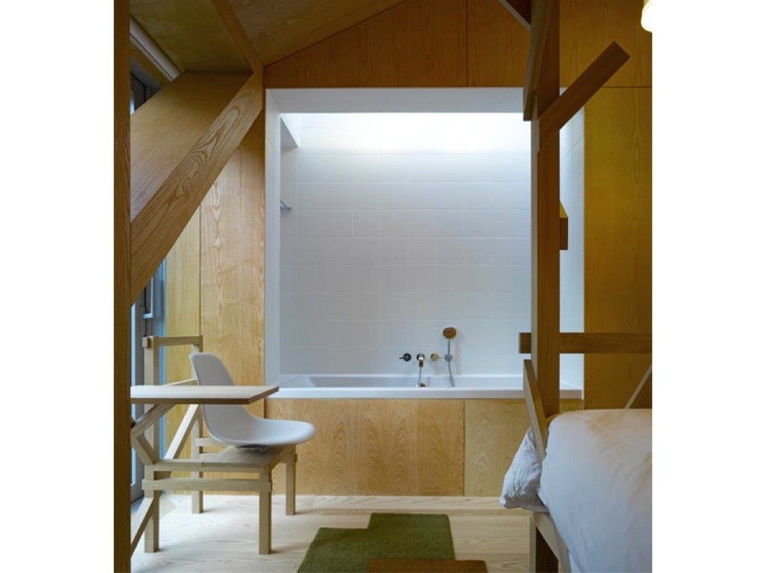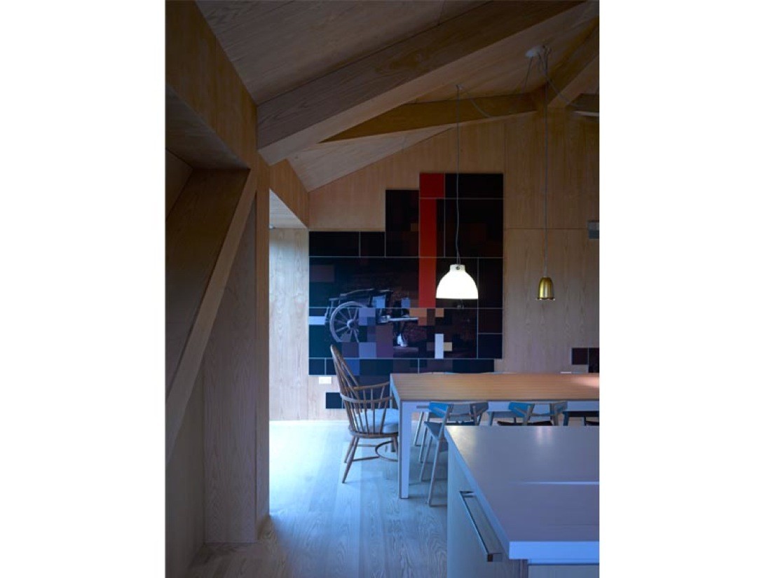 Wysokie przesuwne okna i świetliki w całym budynku zapewniają stały kontakt z naturą, a neutralne, ponadczasowe drewno tworzy tło dla wnętrz zaprojektowanych przez Studio Makkink & Bey. Tematyczne pokoje zdobią wzory inspirowane chmurami Johna Constable’a i scenami wiejskimi Thomasa Gainsborougha, co łączy przeszłość z nowoczesną Brytanią.
