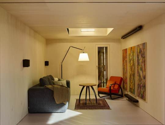 Cały projekt opiera się na idei maksymalnej prostoty, oszczędności środków i szacunku wobec zastanej struktury. Zamiast adaptować całą stodołę, architekci zdecydowali się na wstawienie autonomicznej jednostki, która może funkcjonować niezależnie, nie zmieniając charakteru historycznego budynku. Subtelne zabiegi projektowe i zastosowanie powściągliwych materiałów tworzą rozwiązanie lekkie, praktyczne i idealnie wkomponowane w wiejski kontekst.