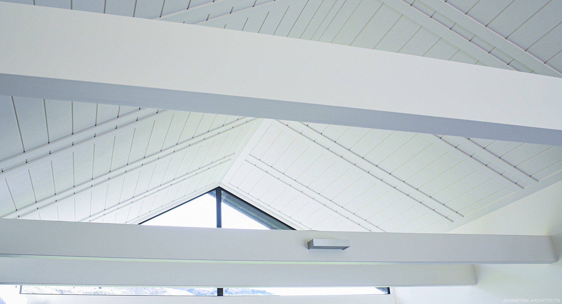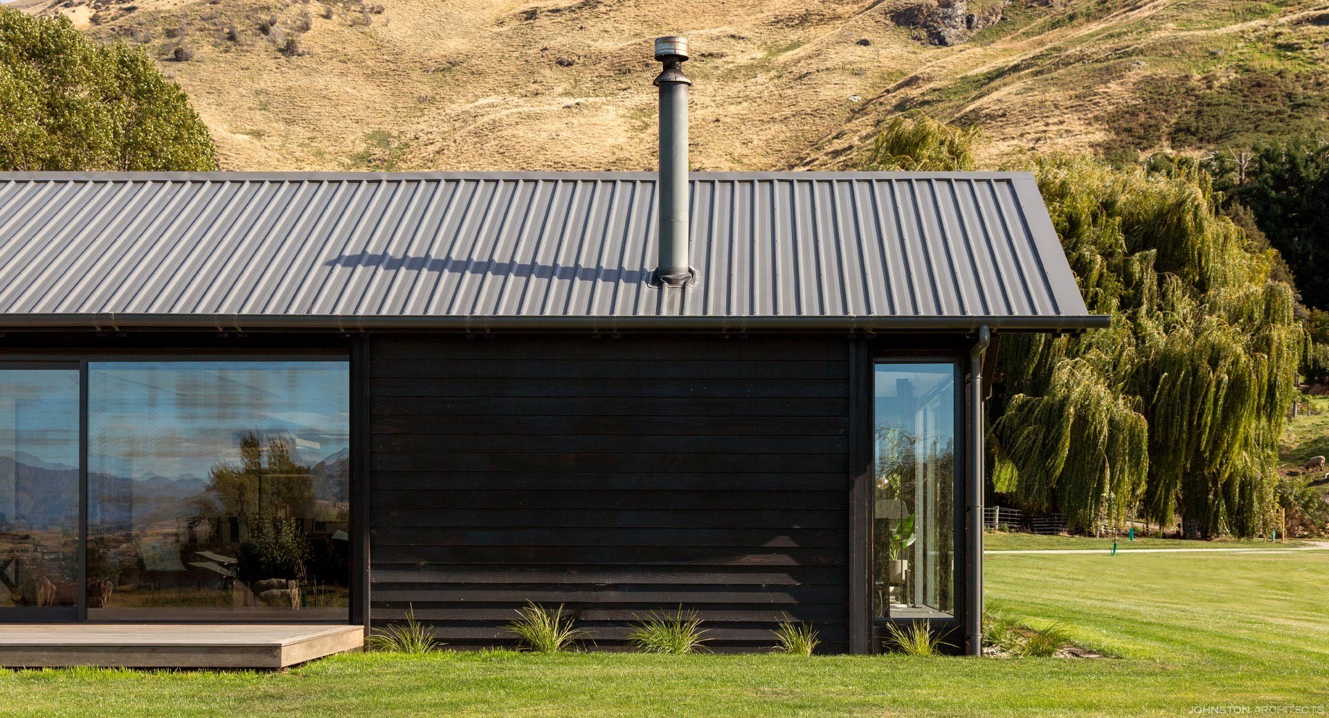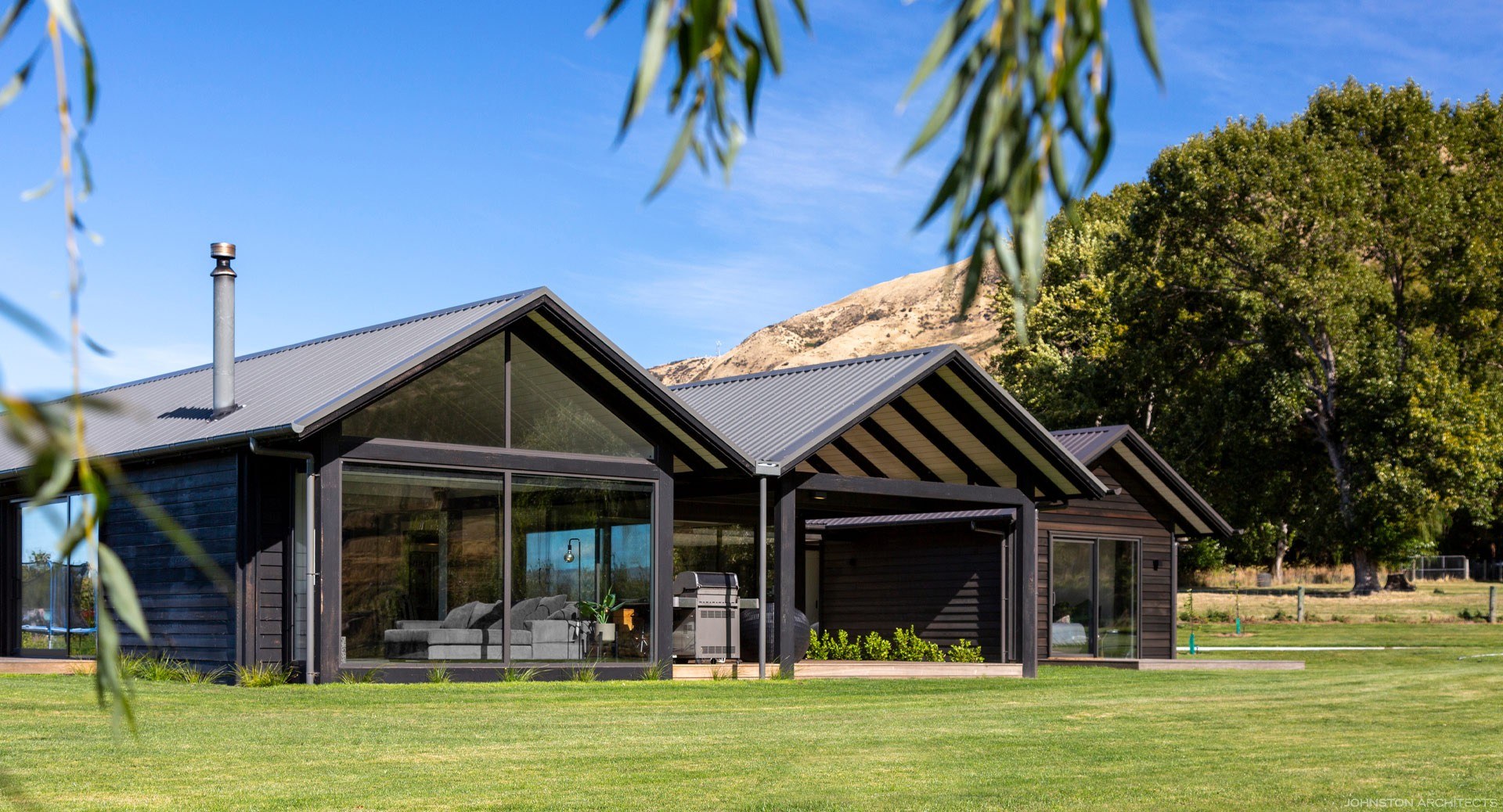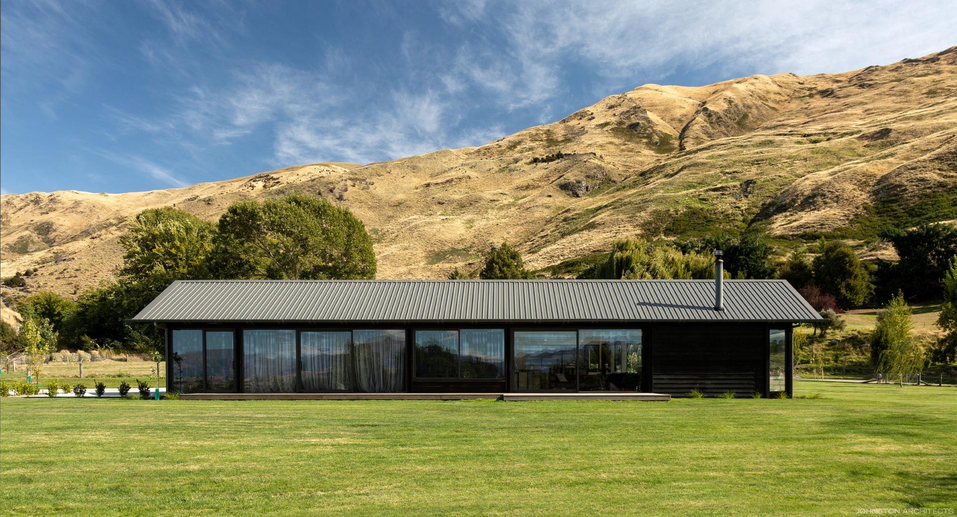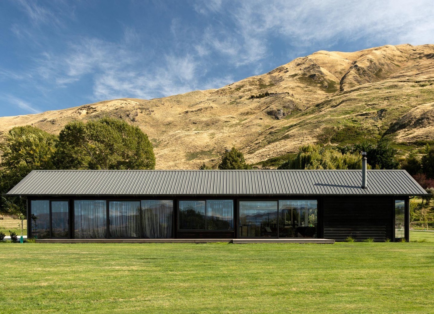 W zachodnim pawilonie zaplanowano część prywatną: sypialnie, kuchnię oraz pomieszczenia gospodarcze. Kuchnia otwiera się na przestronny, zadaszony taras po stronie zachodniej, idealny do całorocznej rekreacji i korzystania z wieczornego słońca. Trzecia, najmniejsza bryła – pokój gościnny – pełni funkcję niezależnej jednostki mieszkalnej. Została zaprojektowana z myślą o komfortowym wypoczynku z nastrojowym tarasem od północy i zachwycającym widokiem na dzikie wzgórza Otago, co podkreśla wiejski, ale nowoczesny charakter całej inwestycji.