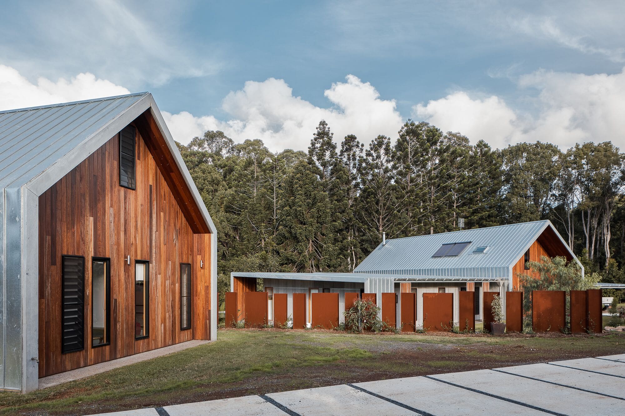 Położony w malowniczym, wiejskim otoczeniu Byron Bay, Projekt Barn House autorstwa Tima Sharpe’a to przykład, jak współczesna architektura może łączyć funkcjonalność z estetyką oraz nowoczesne rozwiązania z tradycyjną formą stodoły. Projekt ten, stanowiący osobistą realizację marzeń architekta i jego żony, odzwierciedla ich potrzeby, korzenie kulturowe i praktyczne podejście do życia codziennego. Inspirowana zarówno amerykańską architekturą użytkową, jak i północnoeuropejskim stylem sakralnym, bryła domu przypomina klasyczną stodołę z dwuspadowym dachem, a jednocześnie zachowuje czystość i prostotę współczesnego, australijskiego designu. Dzięki temu powstała wyjątkowa fuzja stylów: ciepła i surowości, funkcjonalności i klimatu rodzinnego domu – dokładnie tego, czym powinna być nowoczesna stodoła.