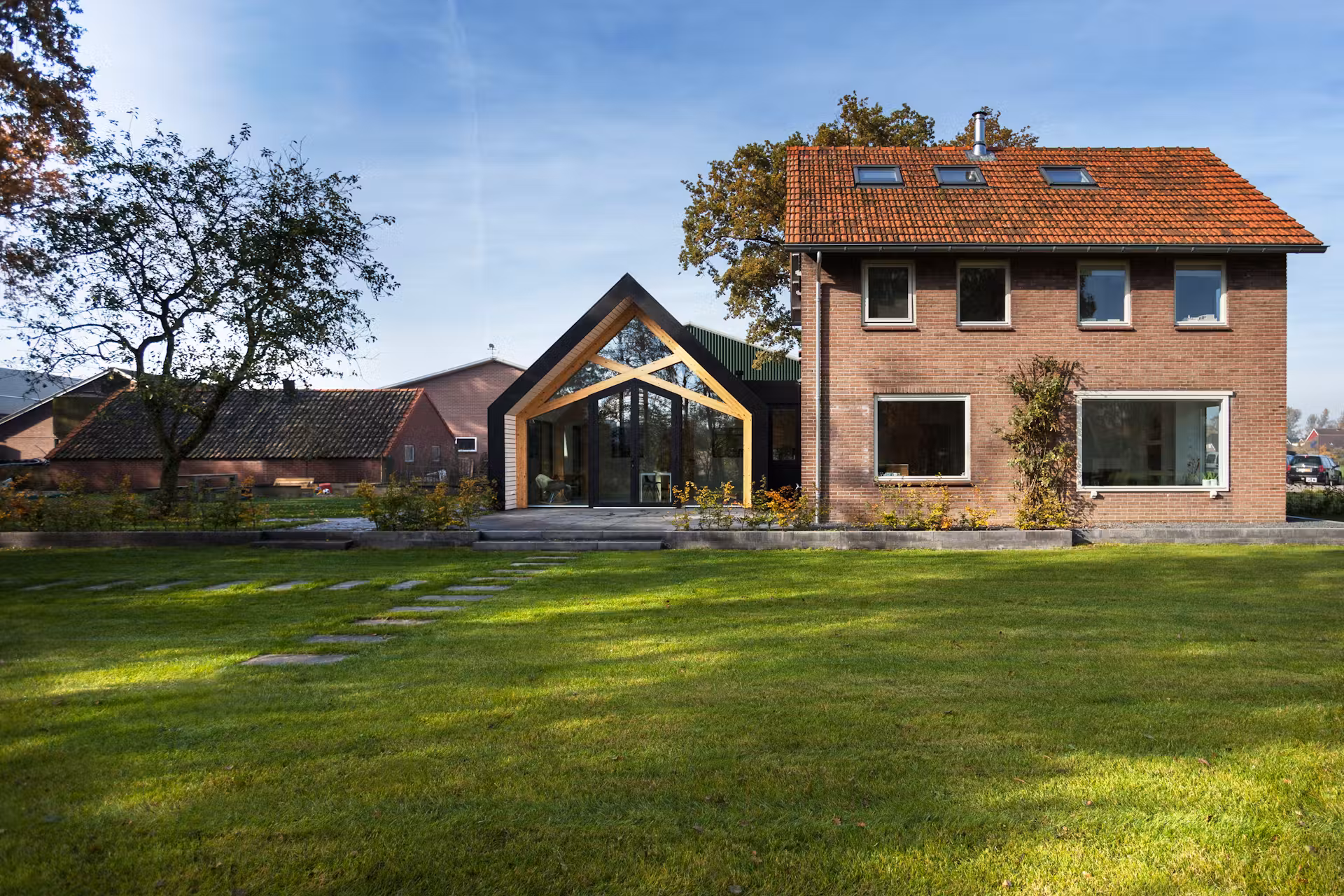 Młoda rodzina mieszkająca w tej farmie na wschodzie Holandii marzyła o odświeżeniu przestarzałego wnętrza i otwarciu domu na piękne otoczenie. Architekci z Bureau Fraai spełnili te oczekiwania, otwierając parter budynku i dodając przestronny aneks, który wizualnie łączy dom z dużym ogrodem.