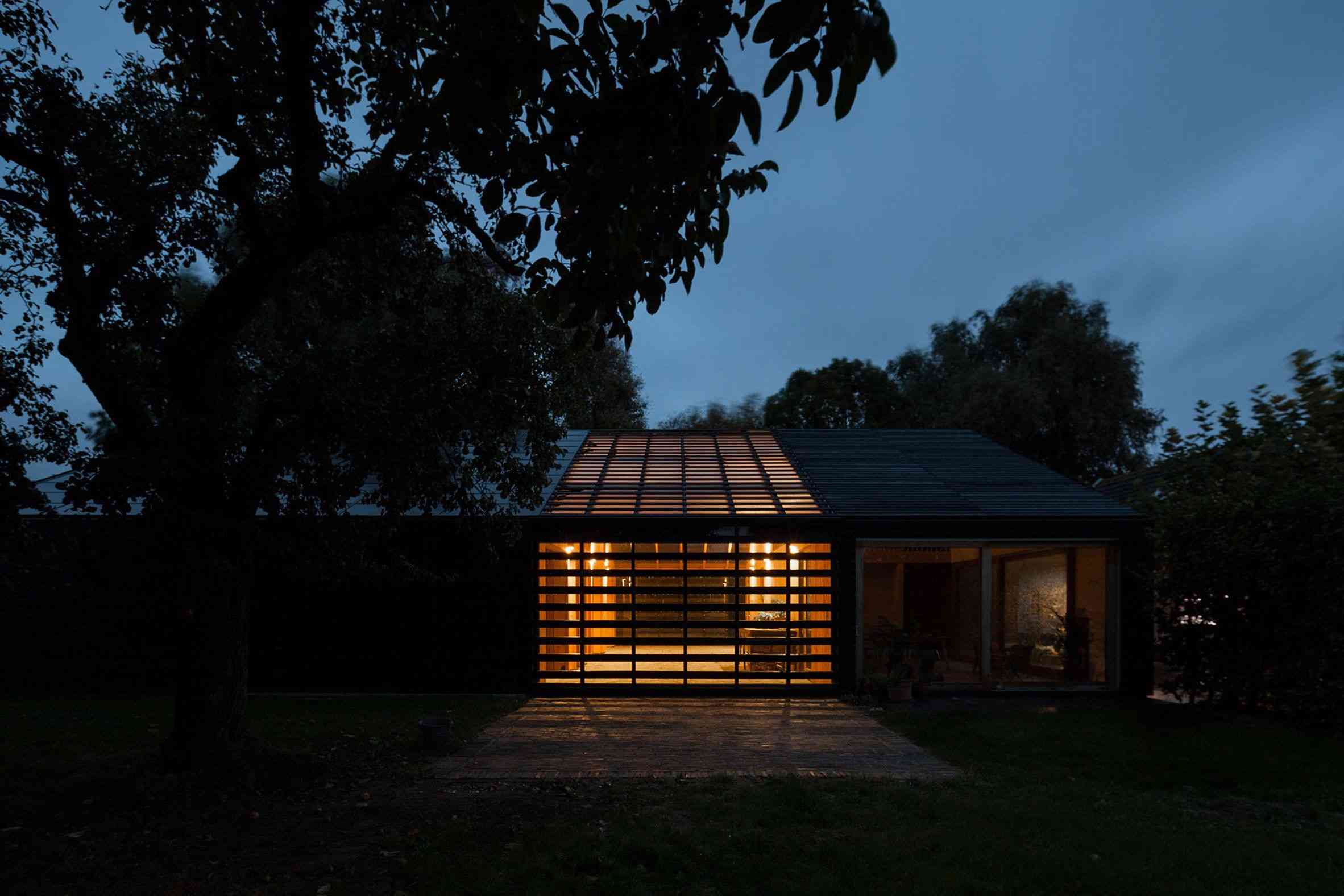 Projekt „Barn Rijswijk” autorstwa amsterdamskiej pracowni Workshop Architecten powstał na farmie Rottenburg w gminie Rijswijk, w zachodniej Holandii. Nowy budynek zastąpił zniszczoną stodołę z lat 60. i został zaprojektowany jako wielofunkcyjna przestrzeń łącząca część mieszkalną, magazynową oraz schronienie dla zwierząt. Otoczenie tworzą ponad stuletnie drzewa owocowe rosnące na 4,5-hektarowej posiadłości, a architektura obiektu świadomie nawiązuje do lokalnego krajobrazu wiejskiego. Całość stanowi wyrazistą interpretację formy, którą dziś określa się jako nowoczesna stodoła.