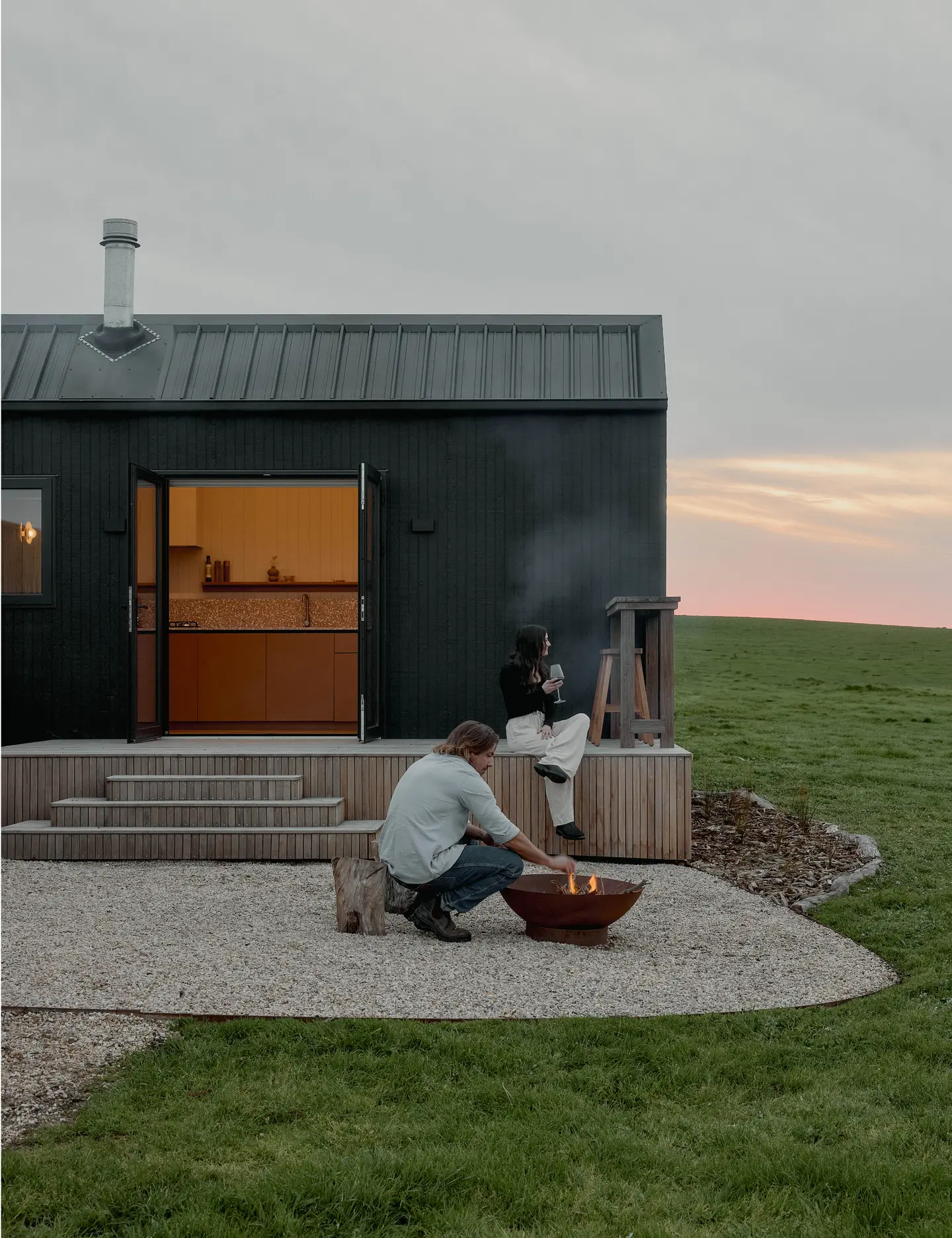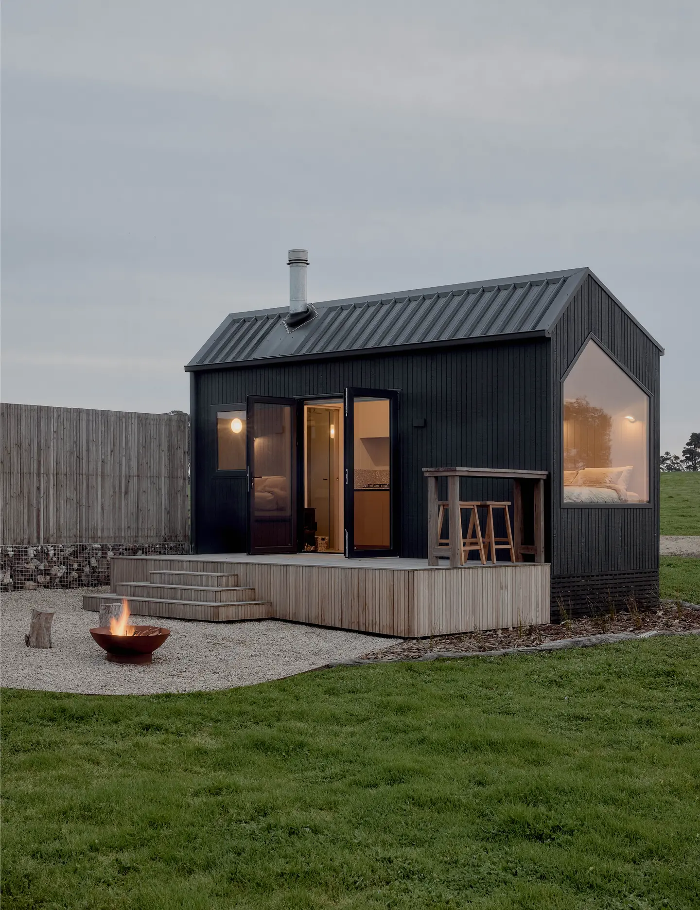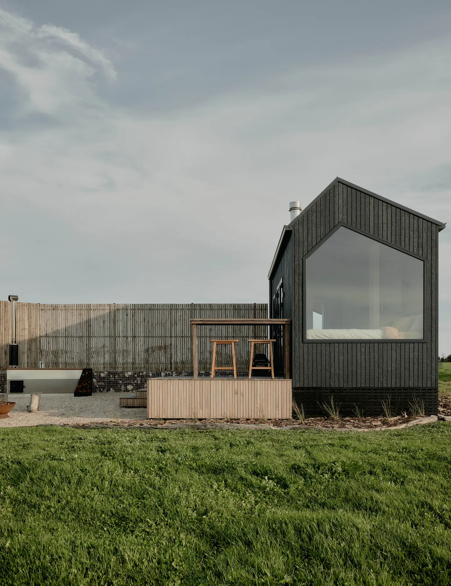 Właściciele, Julia i Tim, umieścili swoją kabinę na rodzinnej farmie i przekształcili ją w wyjątkowe miejsce noclegowe The Passage. Otoczona drewnianym tarasem, kamiennymi ścieżkami, wanną pod gołym niebem i paleniskiem, stanowi idealny przykład tego, jak mikroskopijna architektura może współgrać z krajobrazem.