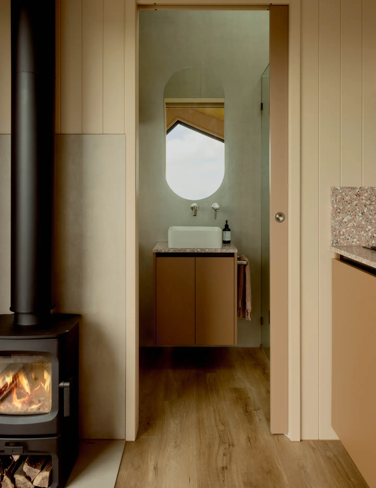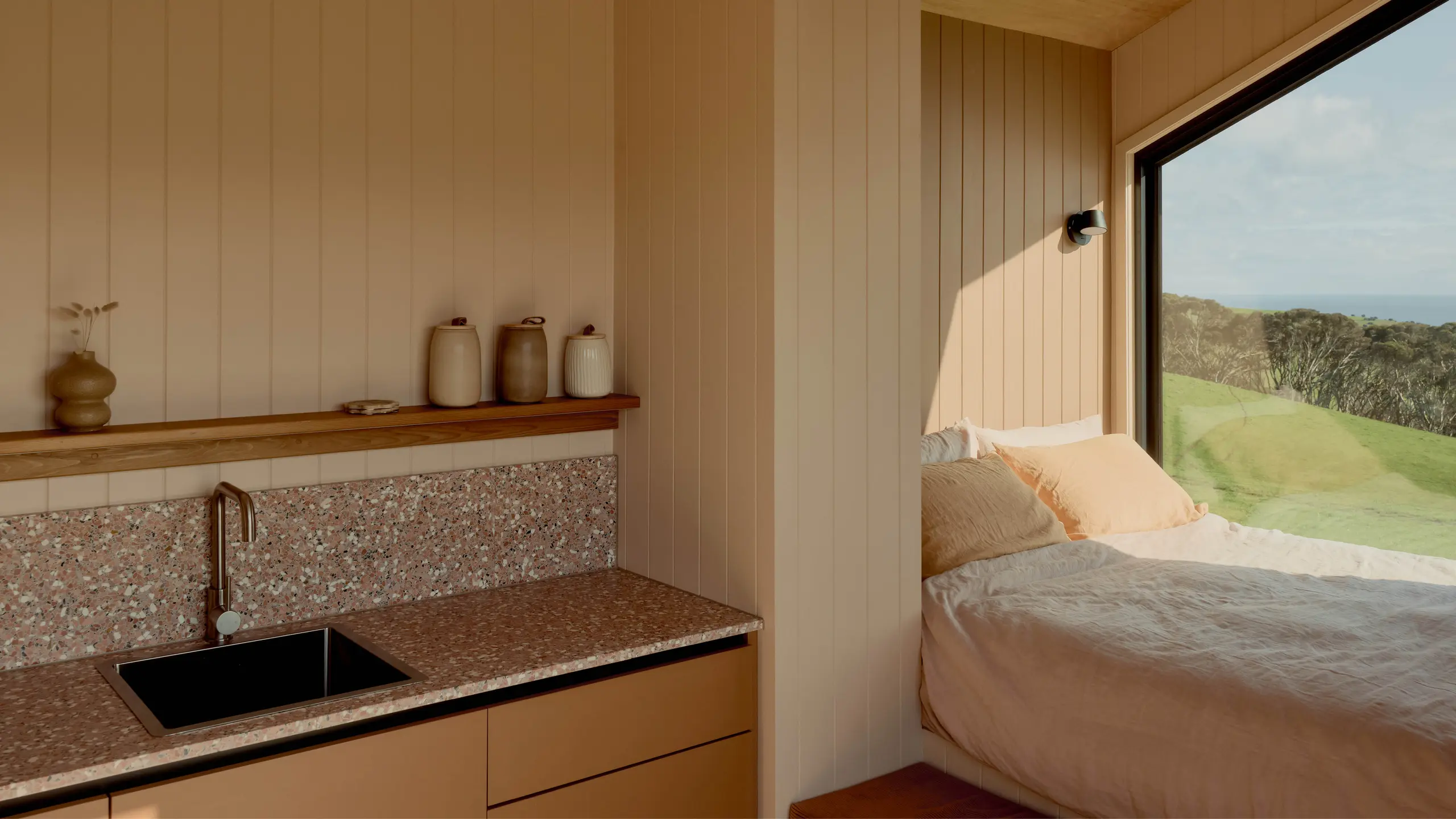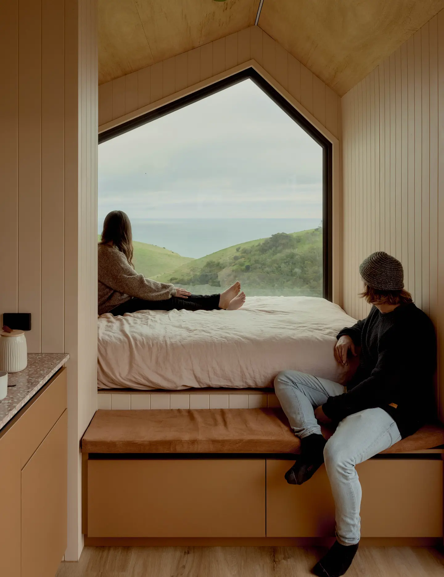 Właściciele, Julia i Tim, umieścili swoją kabinę na rodzinnej farmie i przekształcili ją w wyjątkowe miejsce noclegowe The Passage. Otoczona drewnianym tarasem, kamiennymi ścieżkami, wanną pod gołym niebem i paleniskiem, stanowi idealny przykład tego, jak mikroskopijna architektura może współgrać z krajobrazem.