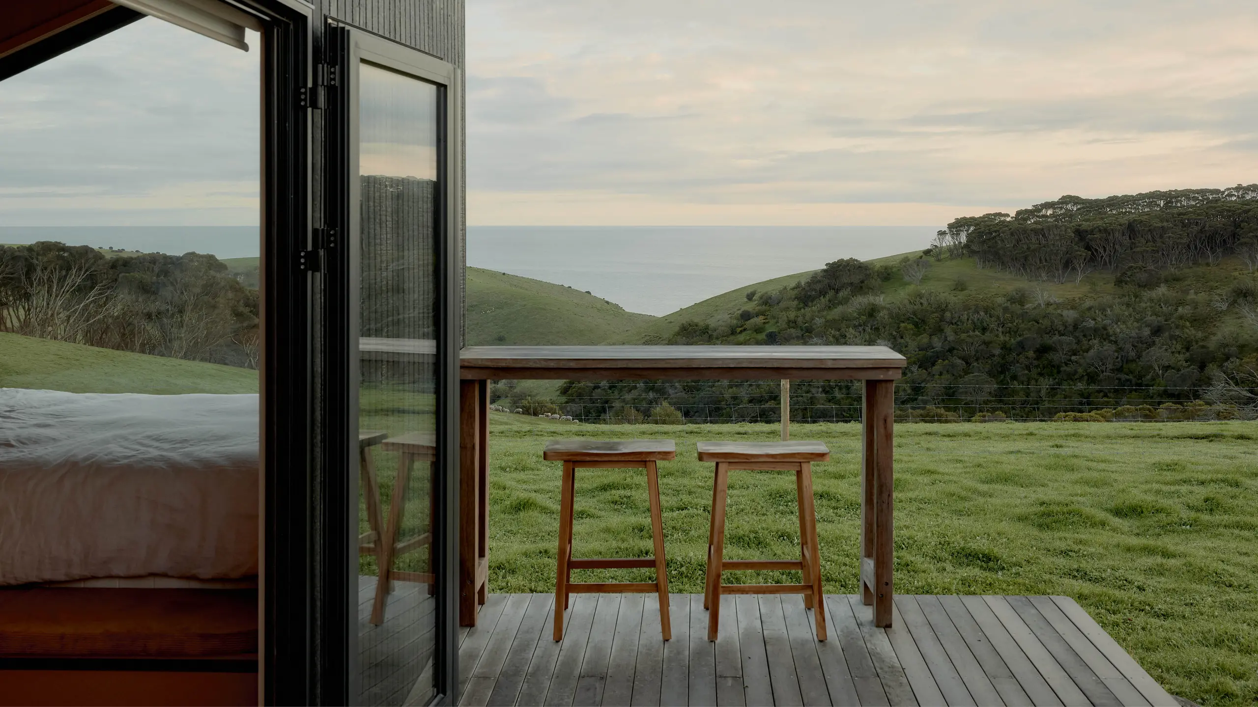 Umieszczony pośród falujących wzgórz Kangaroo Island, ten niewielki budynek działa jak samowystarczalna oaza – nowoczesny azyl dla miłośników ciszy, przyrody i projektowania z duszą.