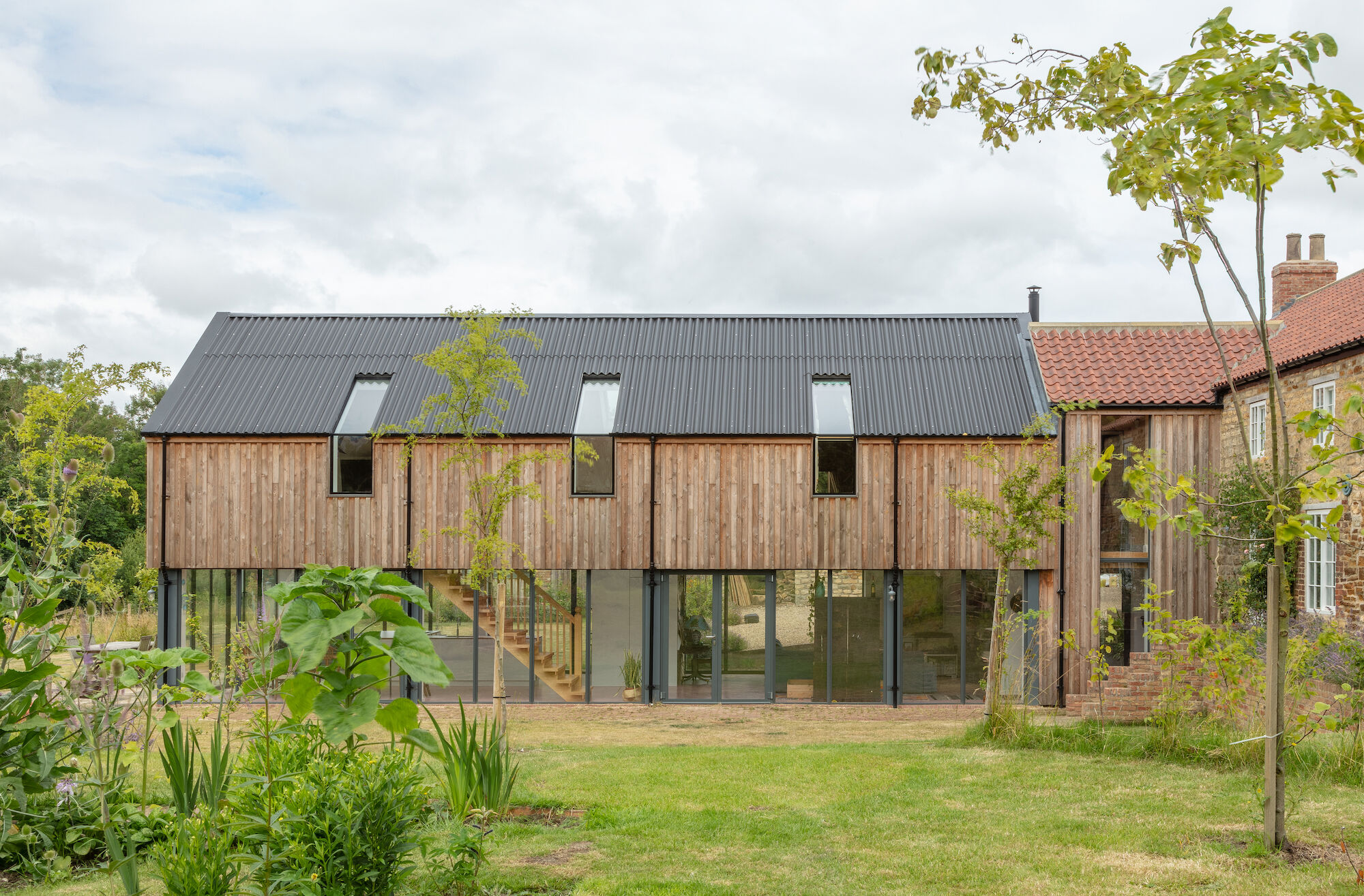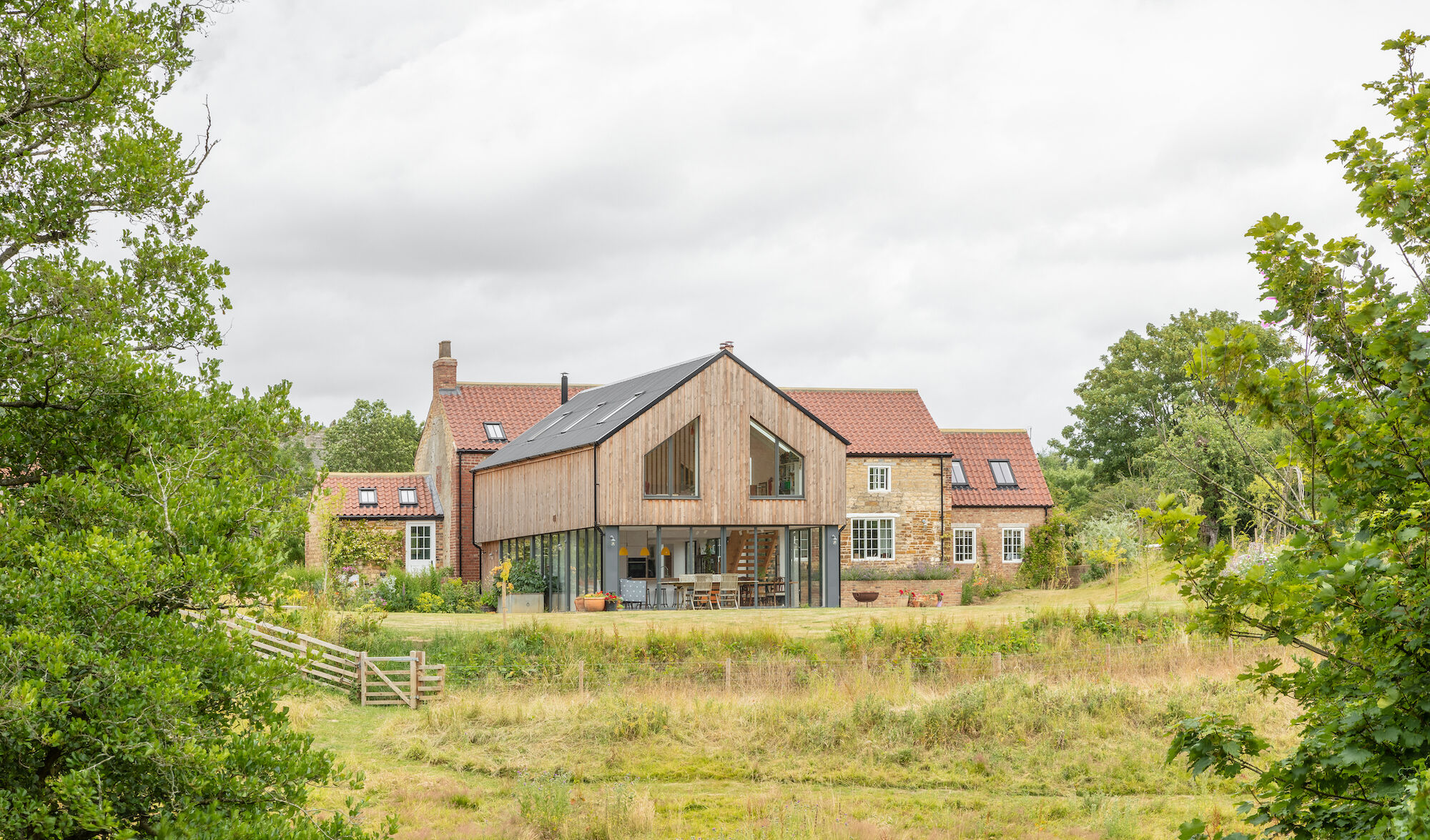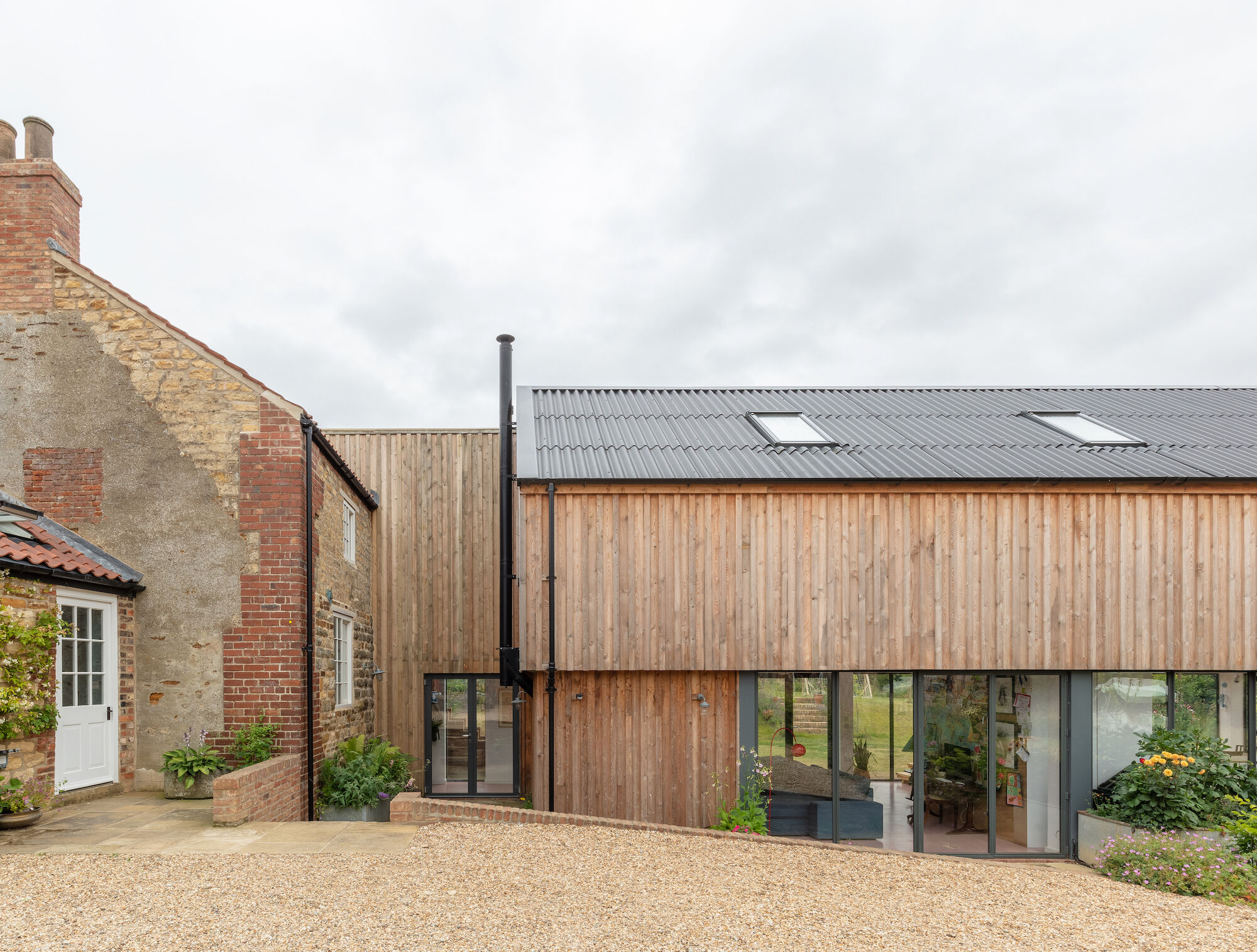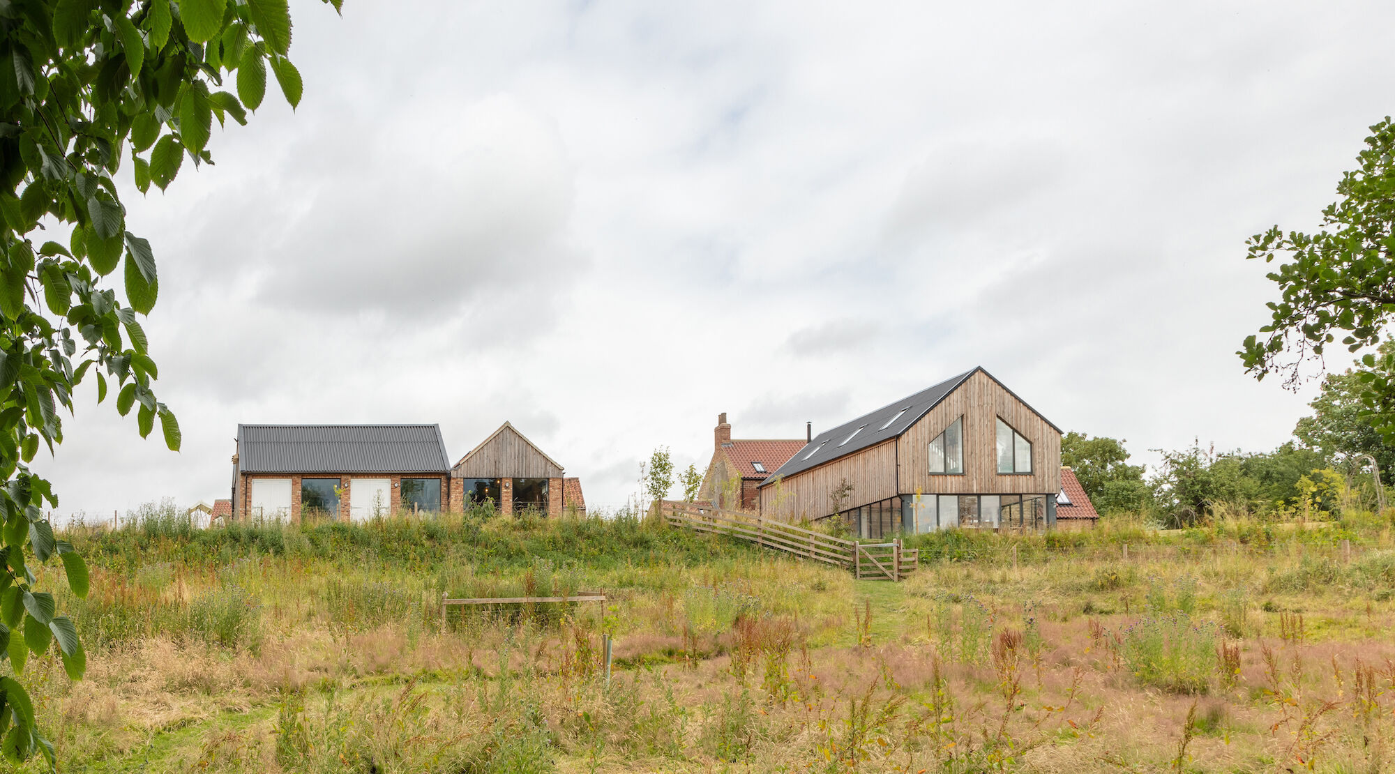 To tradycyjne gospodarstwo w Howardian Hills w North Yorkshire przeszło dramatyczną metamorfozę w ciągu ostatnich lat. Przebudowa, remont i rozbudowa budynku na dwie pracownie artystyczne i biuro to najnowszy etap jego ewolucji. Istniejący dom gospodarczy oraz murowane stodoły były w złym stanie, wymagającym gruntownej renowacji. W ramach prac zgniłe stodoły o konstrukcji szachulcowej zostały wymienione, a reszta budynku poddana odnowieniu. Rozbudowa stanowi nowy rozdział w historii zagrody, wprowadzając współczesny charakter do tradycyjnej architektury wiejskiej. Zdecydowano się na całkowicie przeszklony parter i solidne pierwsze piętro, które stanowi wyraźne rozróżnienie nowoczesnej części budynku. Biorąc pod uwagę oddalenie farmy oraz zapewnioną prywatność, przezroczysta podstawa umożliwia panoramiczny widok na zatokę i krajobraz z głównych pomieszczeń mieszkalnych.