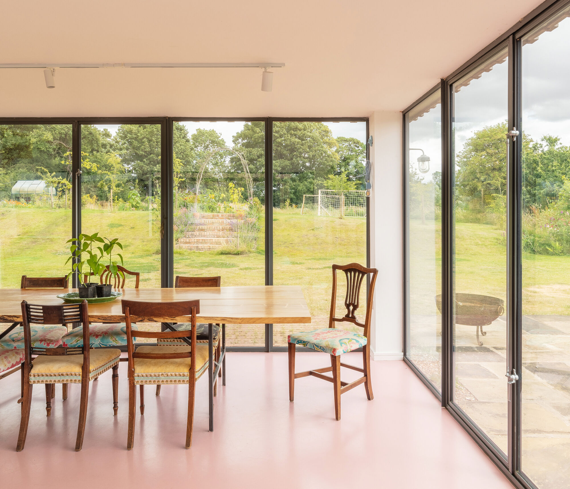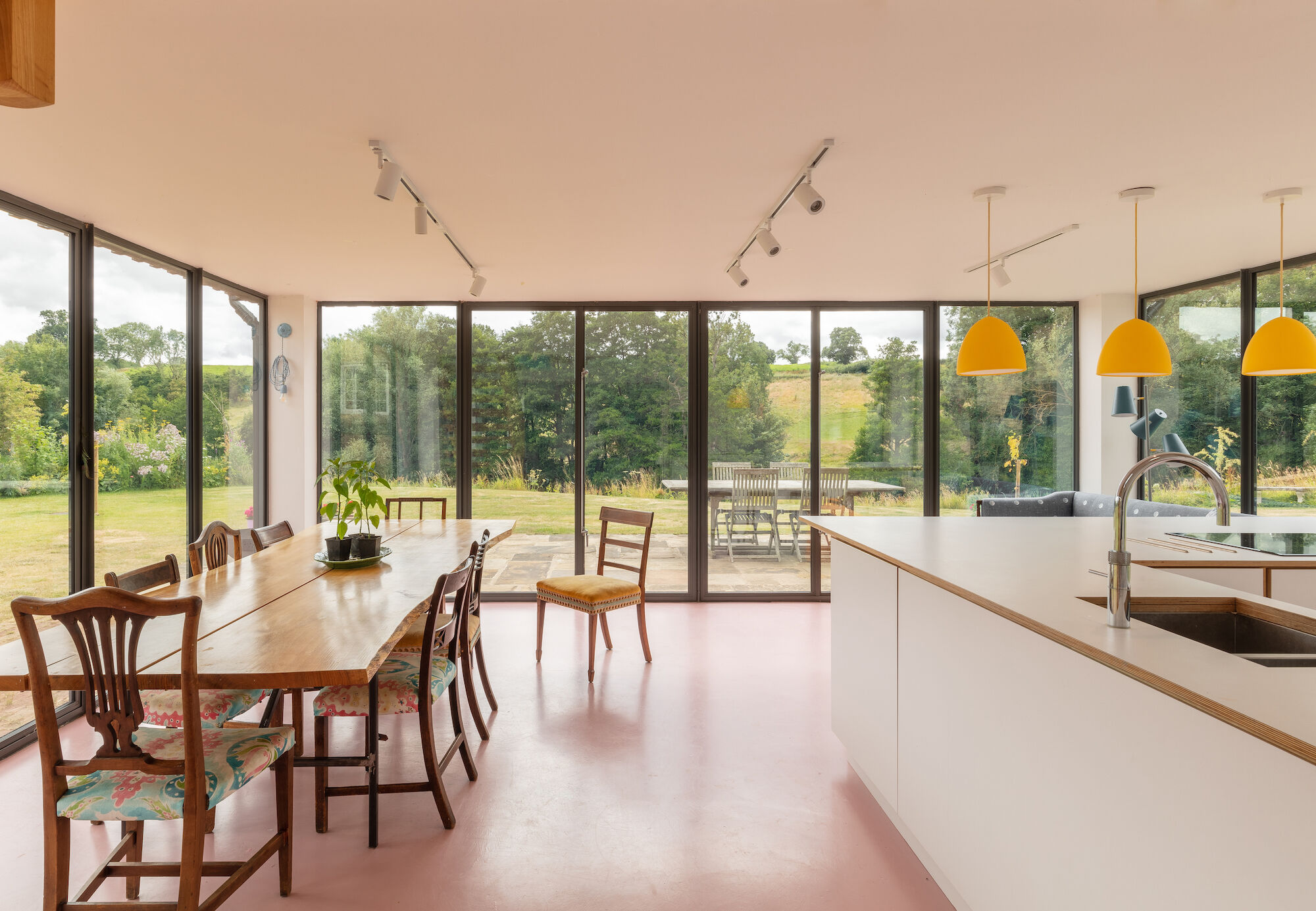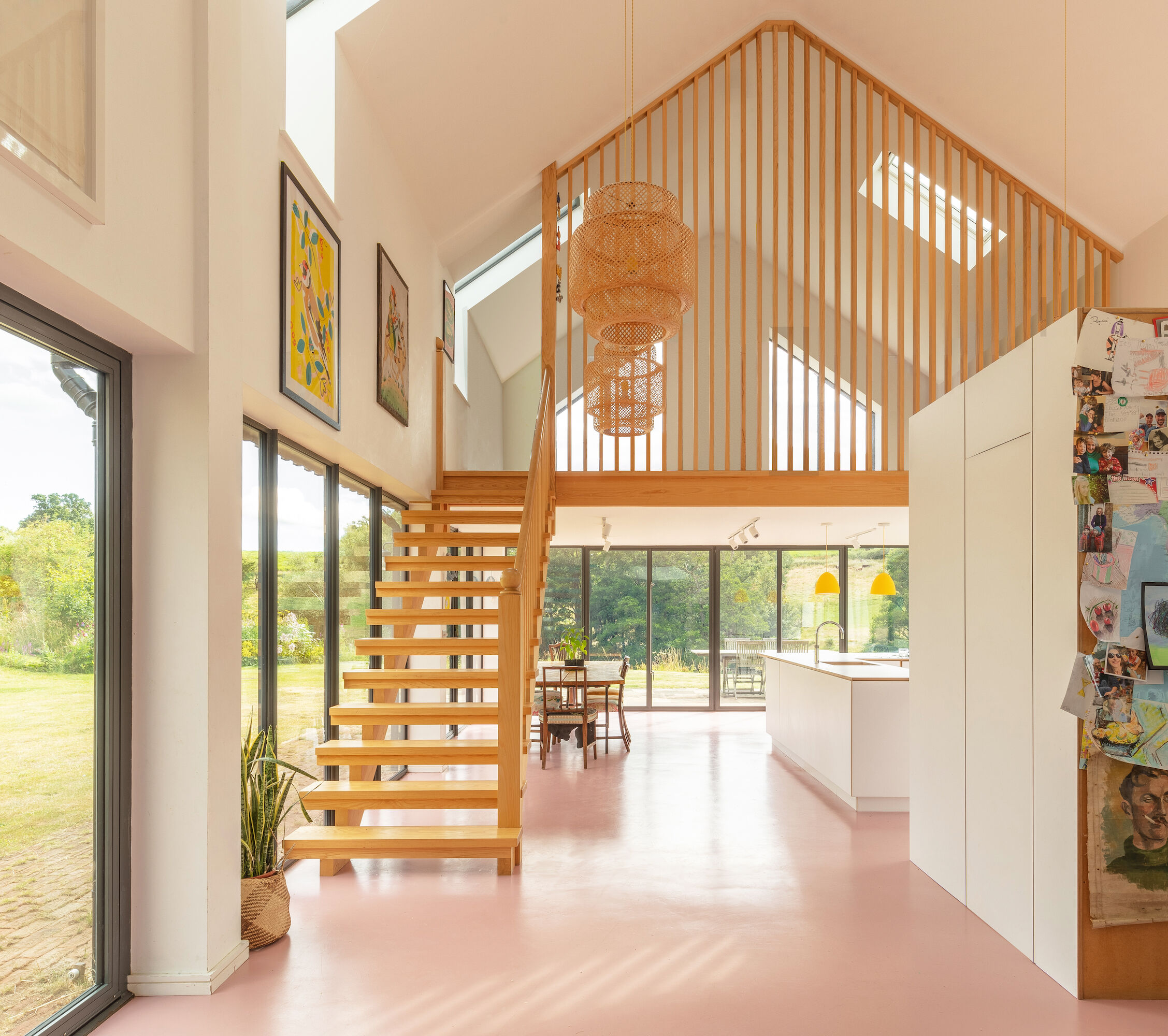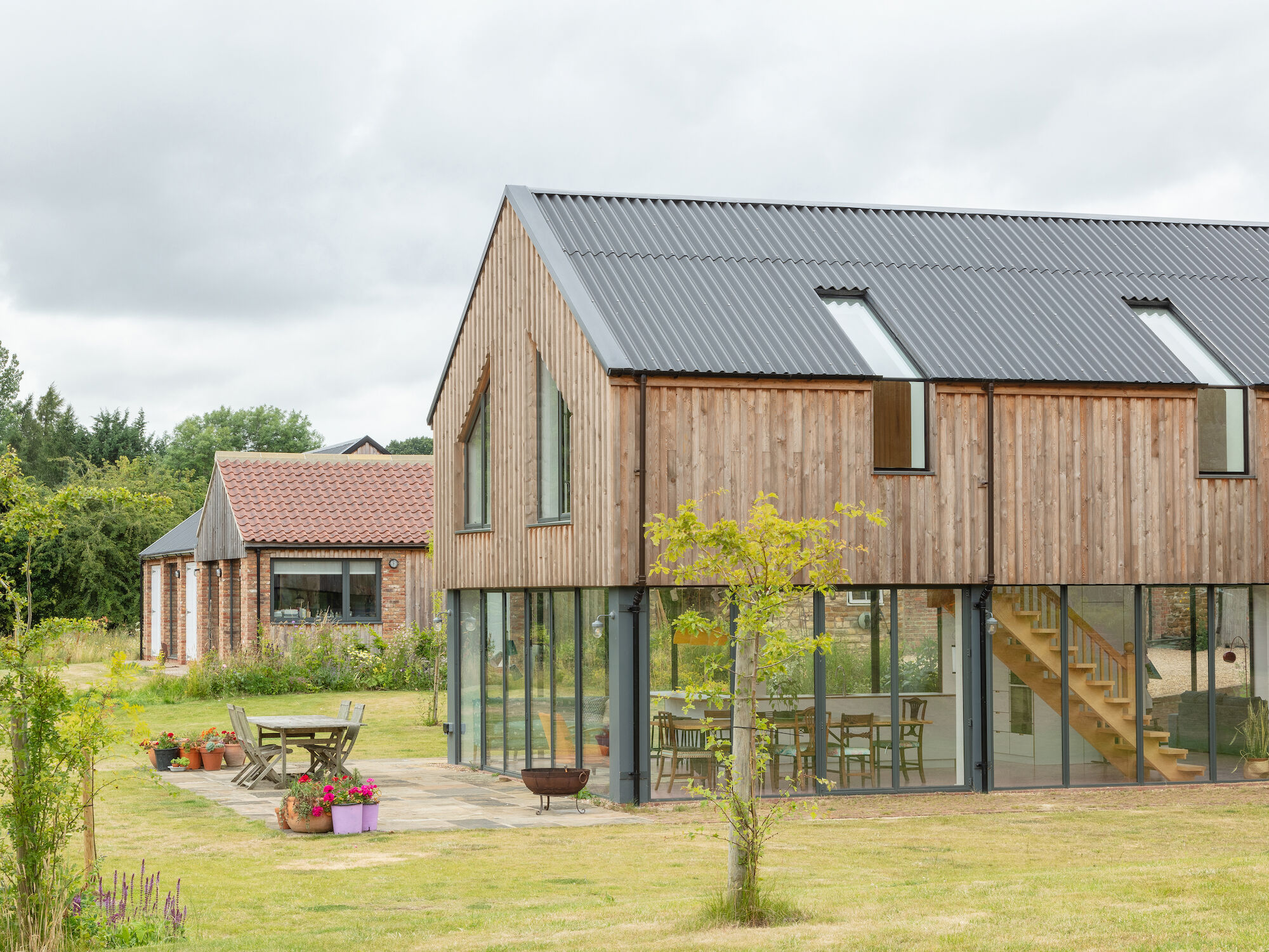 To tradycyjne gospodarstwo w Howardian Hills w North Yorkshire przeszło dramatyczną metamorfozę w ciągu ostatnich lat. Przebudowa, remont i rozbudowa budynku na dwie pracownie artystyczne i biuro to najnowszy etap jego ewolucji. Istniejący dom gospodarczy oraz murowane stodoły były w złym stanie, wymagającym gruntownej renowacji. W ramach prac zgniłe stodoły o konstrukcji szachulcowej zostały wymienione, a reszta budynku poddana odnowieniu. Rozbudowa stanowi nowy rozdział w historii zagrody, wprowadzając współczesny charakter do tradycyjnej architektury wiejskiej. Zdecydowano się na całkowicie przeszklony parter i solidne pierwsze piętro, które stanowi wyraźne rozróżnienie nowoczesnej części budynku. Biorąc pod uwagę oddalenie farmy oraz zapewnioną prywatność, przezroczysta podstawa umożliwia panoramiczny widok na zatokę i krajobraz z głównych pomieszczeń mieszkalnych.