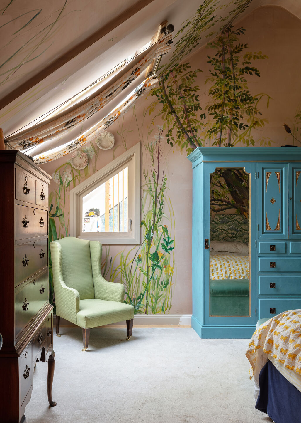 Na zewnątrz zaprojektowano trzy charakterystyczne przestrzenie ogrodowe, które ukształtowały zespół budynków. Każda z przestrzeni ma odmienny charakter i widok. Centralna przestrzeń to bardziej formalny ogród, który wypełnia lukę pomiędzy głównym domem a pracowniami artystycznymi i biurem. Mały ogród od strony zachodniej łączy pracownię artystyczną i pokoje gościnne. Z kolei w głównym budynku znajduje się prywatny ogród od strony wschodniej, tworzący intymną przestrzeń.