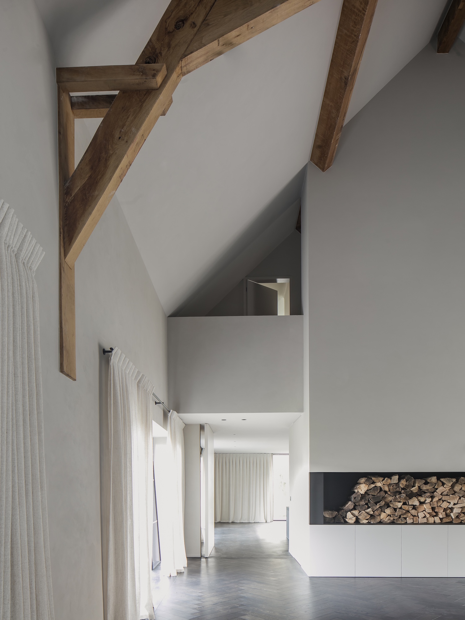 Vanrenterghem postanowił zaakcentować flamandzką historię gospodarstwa, przekształcając główny dom oraz cztery otaczające go budynki. Główny dom obejmuje przestronny salon na otwartym planie, trzy sypialnie oraz trzy łazienki, a dodatkowo dwie sypialnie z prywatnymi łazienkami znajdują się w przyległych budynkach. Dzięki odpowiedniemu rozplanowaniu przestrzeni, projekt przypomina klasyczną wiejska posiadłość, ale z nowoczesnymi akcentami, co przyciąga uwagę miłośników zarówno tradycji, jak i współczesnego designu.