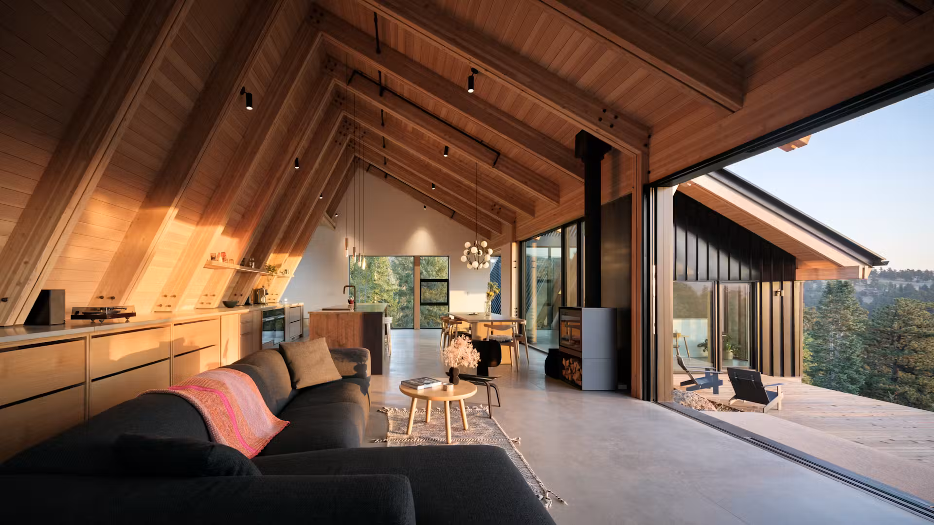 Betasso Overlook to wyjątkowa reinterpretacja tradycyjnej alpejskiej chaty, której architektura nawiązuje do kultury, klimatu i krajobrazu Gór Skalistych. Projekt łamie schematy klasycznych górskich domów, tworząc nowoczesną formę dostosowaną do ekstremalnych warunków. Bryła zamyka się od strony zimowych wiatrów, osłaniając wnętrze solidnym, stromym dachem i ścianami, natomiast od wschodu otwiera się na poranne słońce dzięki przeszkleniom sięgającym od podłogi do sufitu.