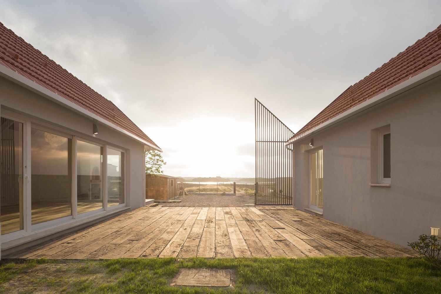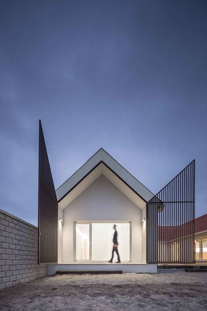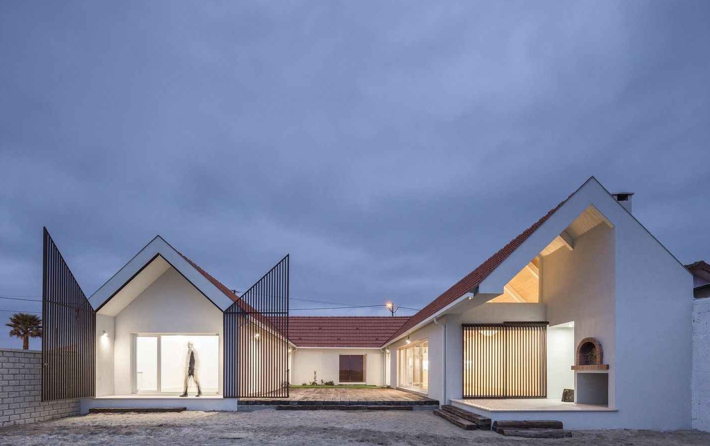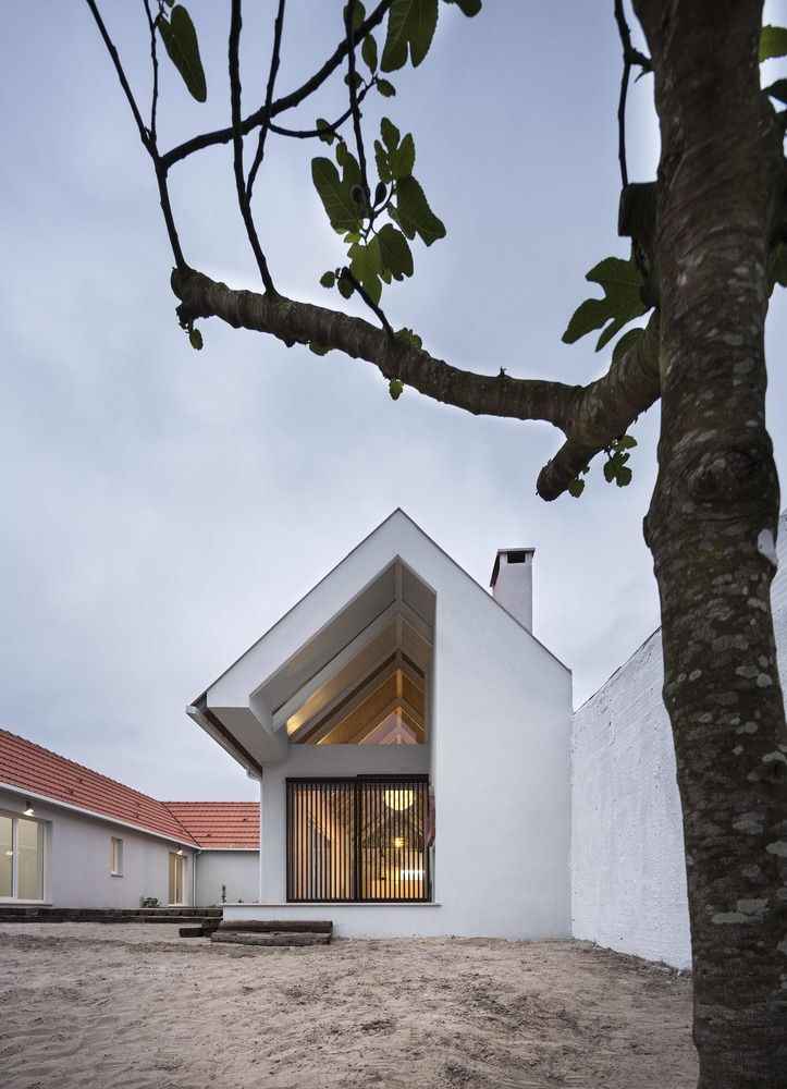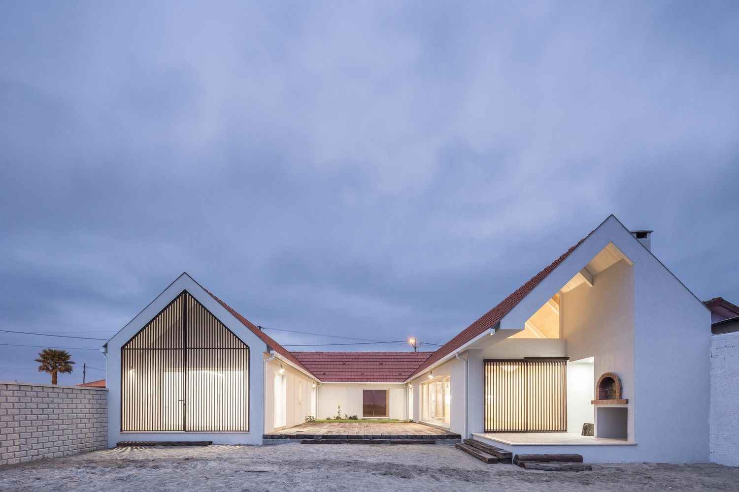 Ten dom w Portugalii, w miejscowości Praia da Vagueira w granicach miasta Vagos, powstał w wyniku renowacji istniejących, zniszczonych zabudowań. Architekci zostali poproszeni o stworzenie projektu jednego poziomu z centralnym dziedzińcem, który łączy różne części domu. Już na wejściu uwagę przyciąga fantastyczne otoczenie, które integruje przestrzenie prywatne i bardziej publiczne. Wejście, kuchnia i salon tworzą otwartą przestrzeń, a tuż obok znajduje się mała antresola, pełniąca funkcję bardziej kontemplacyjną i spokojną.